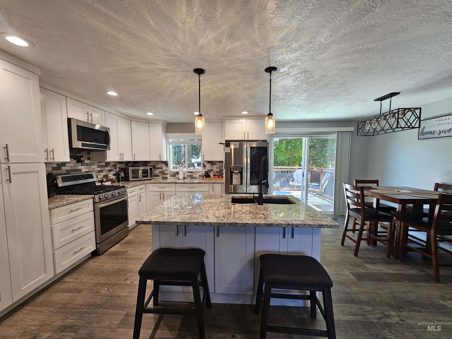 Spacious home in SE Boise. This 5 bedroom, 3 bath home sits on .117 acres in an established neighborhood. This gem also comes with an additional space that could be used for an office or whatever you want along with a spacious family room. There is RV parking, irrigation, a garden spot, 11x17 deck and a 10x14 shed. New roof and gutters in February 2018, furnace and a/c were replaced in October 2022, kitchen remodeled in June 2022, updates throughout. Close to Liberty Elementary, Timberline, downtown, shopping, airport and so much more.