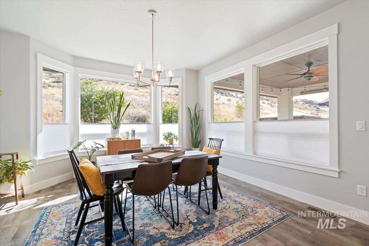 Set among the foothills with no rear neighbors, this Avimor retreat offers lovely views and privacy. Enjoy the beautiful sunrises with morning coffee and sunsets as the sun touches the lovely open space behind. This single-level 4-bed, 3.5-bath home with additional dedicated office, showcases modern sophistication and a versatile casita/second living space. Bright, open floor plan featuring contemporary finishes throughout, including a dream kitchen with high-end appliances, sleek countertops, and ample storage—perfect for entertaining. The casita is a standout feature, offering a private, self-contained suite ideal for guests, extended family, or a luxurious retreat. It includes a spacious bedroom & full bathroom with its own entrance for added privacy. The expansive 3-car garage provides plenty of room for vehicles, storage, or hobbies. Enjoy the tranquility of your backyard oasis, seamlessly blending with the adjacent open space for a true escape from the ordinary. Fully fenced with a covered patio, storage shed and garden boxes. The vibrant community enhances the lifestyle with a modern community center, two refreshing pools, tennis and basketball courts, well-maintained parks, scenic walking paths, direct trail access, and the new Idaho Novus Classical Academy Charter School. This property seamlessly blends luxury, functionality, and an active community atmosphere!