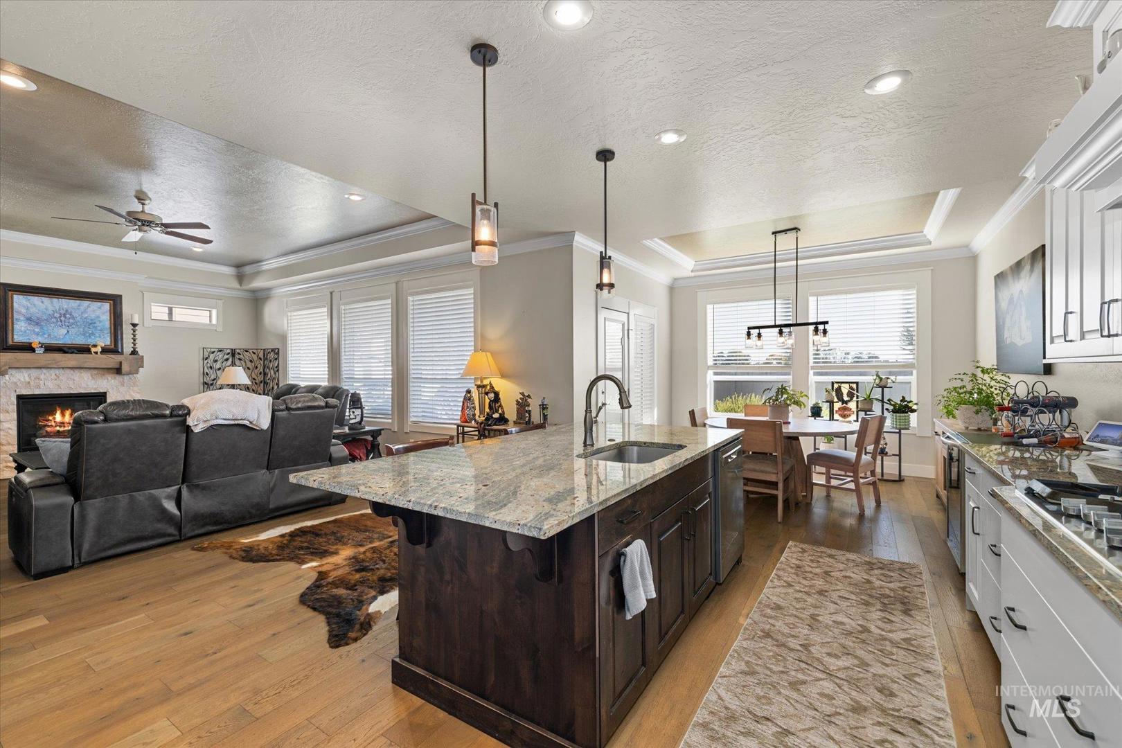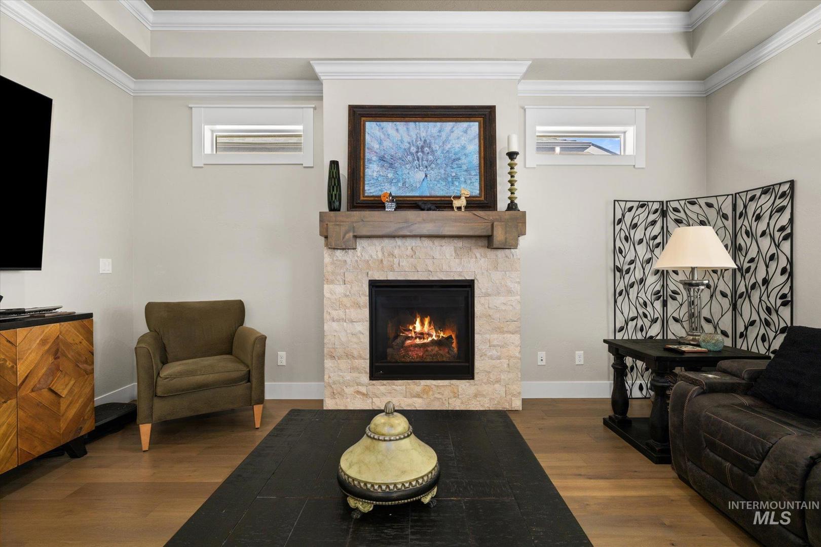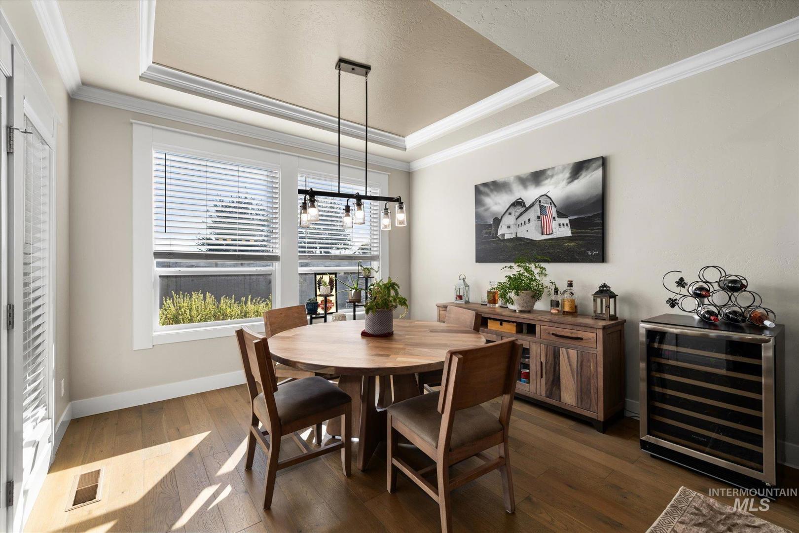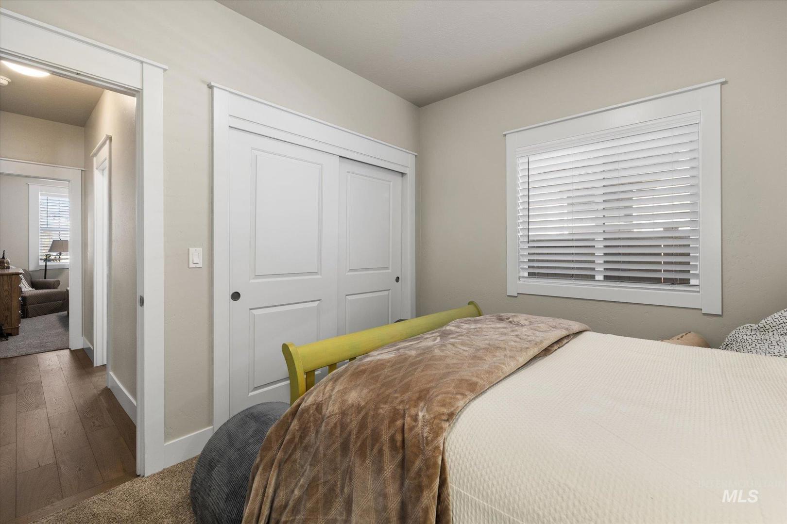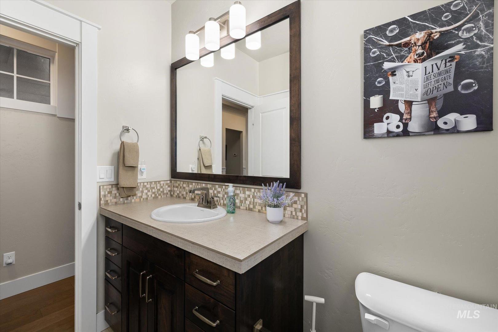 Nearly new and built by custom home builder Todd Campbell, this single-level home with a bonus room combines quality craftsmanship with thoughtful design. The open, split floorplan feels spacious and connected, featuring wide-plank engineered hardwoods and refined tilework throughout. The kitchen stands out with quartz counters, a large island, gas range, double ovens, new dishwasher, and included refrigerator, ideal for both everyday living and entertaining. The primary suite offers a walk-in shower, soaking tub, and dual vanities. Upstairs, the versatile bonus room with an attached full bathroom makes a perfect guest suite, office, or flex space. A versatile mudroom off the utility room adds everyday functionality with built-in bench seating and hooks. Step outside to a covered patio and quiet, private backyard with no rear neighbors. Mature landscaping & full fencing borders a walking path around the corner to the community school. Highly desirable Reflection Ridge neighborhood offers numerous amenities including a pool and walking trails. This elegant home creates an inviting blend of comfort, craftsmanship, and convenience.
