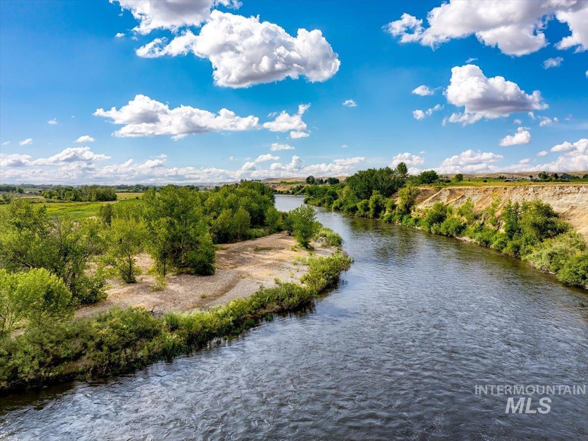 This rare 46-acre gem offers approx. 2,800 feet of pristine Payette River frontage & is a true outdoorsman`s paradise. With rich, laser-leveled loam soil, this property is ideal for row crops or pasture, & benefits from irrigation water provided by shares in two irrigation companies. A concrete ditch ensures efficient, even watering across the land. Bordered on one side by the Payette River & on the other by a natural slough, this land offers exceptional fishing for bass & catfish. Whether you`re a hunter, wildlife photographer, or simply a nature lover, you`ll be captivated by the abundant wildlife. A concrete block blind provides a discreet spot to hunt or photograph thousands of ducks & geese. The property also hosts Sandhill Cranes, shorebirds, turkey, quail, dove, deer and pheasant. Nesting osprey & Red-Tailed Hawks reside on the property with frequent sightings of Bald Eagles. 40 ft. access easement & survey to be prepared prior to closing. See MLS# 98965520 & 98965519 for other options.