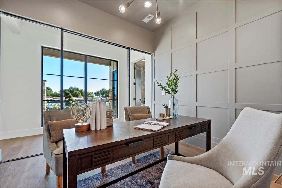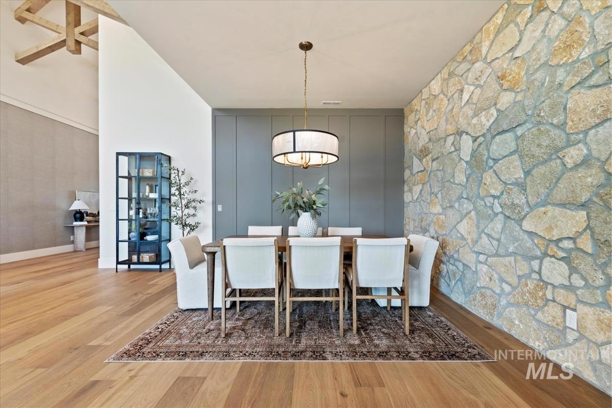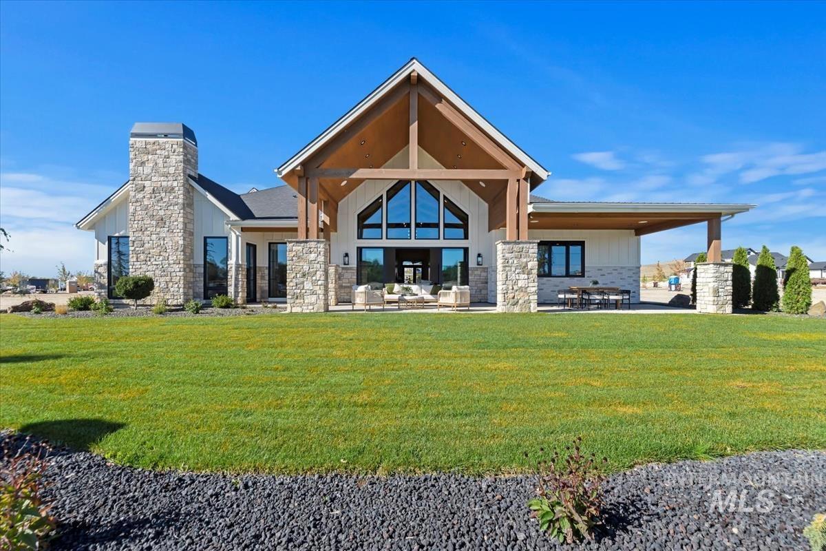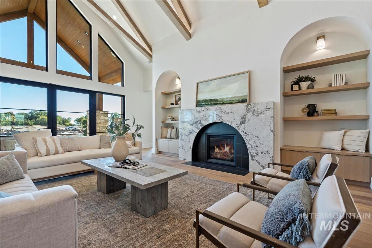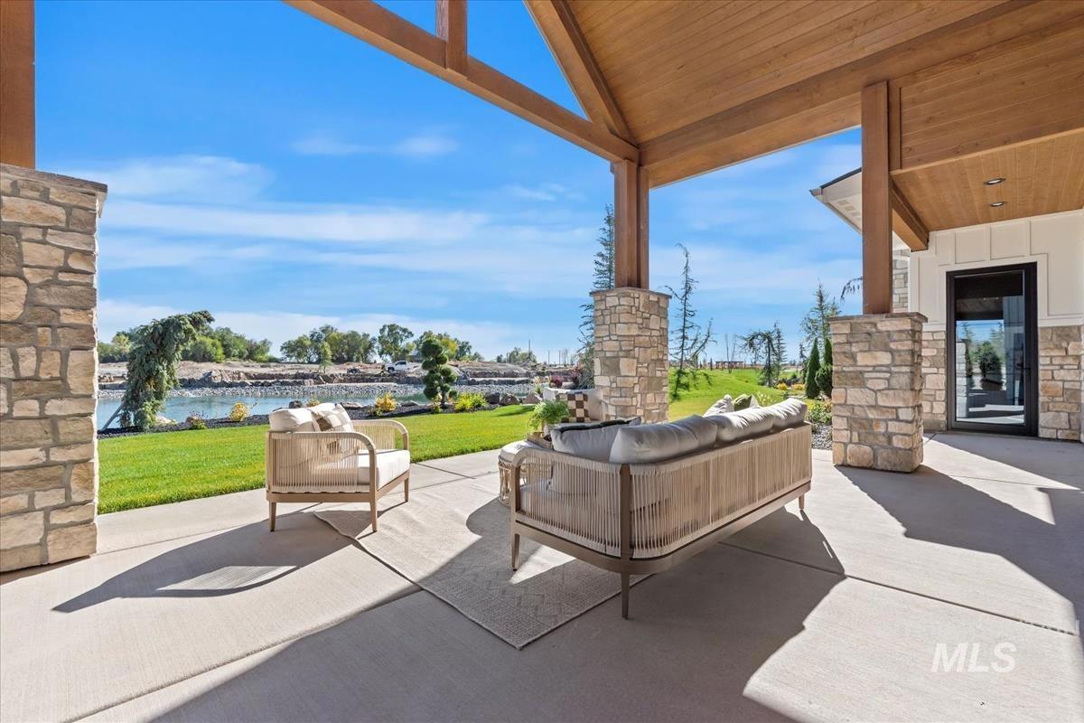 Discover refined living in this stunning SINGLE LEVEL 4,059 sq. ft. home nestled in the prestigious new master-planned community of Terra View! Featuring 4 bedrooms (plus an office), 3.5 baths, this home seamlessly combines modern design with warm, natural elements. Incredibly high ceilings with unique, intricate backlit beams welcoming you home & giving you a cozy feel - a must see! Perched along tranquil waters & your own private beach, this home boasts breathtaking views from multiple vantage points—most notably from the chef-inspired kitchen complete with Wolf & Sub Zero appliances & the sleek glass-walled office, where work-from-home transforms into a daily retreat. The expansive open floor plan is perfect for entertaining! This home makes everyone happy too - a luxurious, beautiful master suite closet making organization & getting ready a breeze & an RV garage that provides ample space for your adventurous lifestyle. High-end finishes, thoughtfully designed living spaces, and seamless indoor-outdoor flow make this home a true gem in a community designed for elevated living. A southeast facing backyard to enjoy your patio year round & watch the mountain views change with the Idaho seasons! Come put your toes in the sand & be ready to call this one "HOME!"