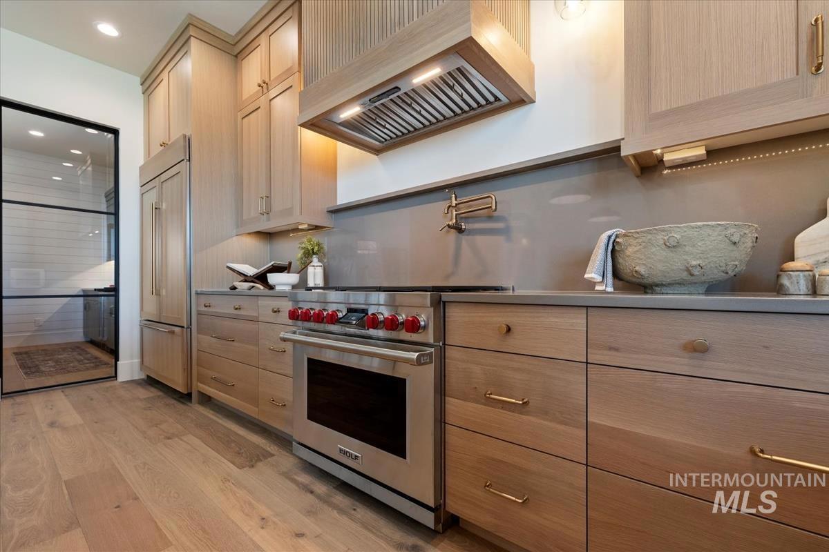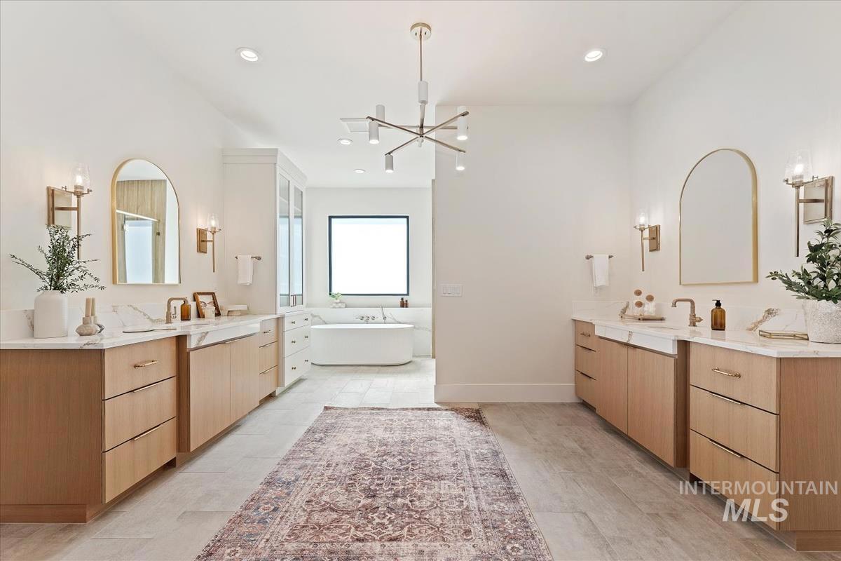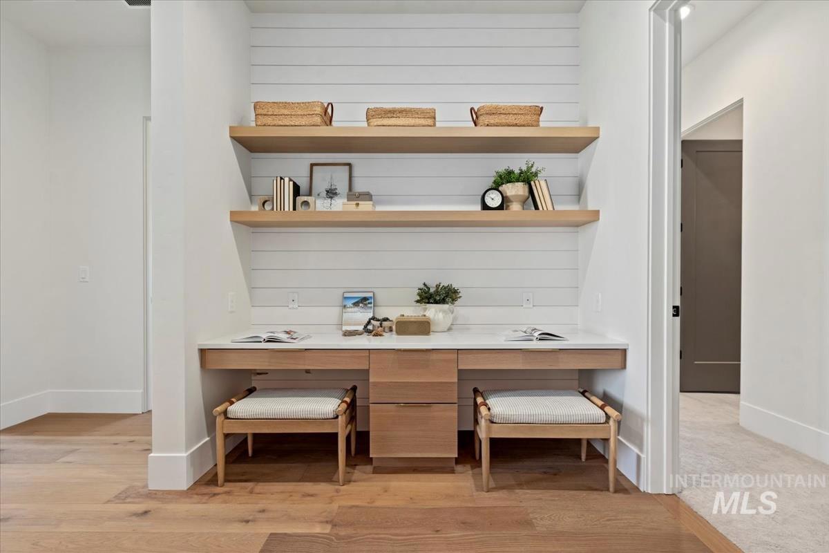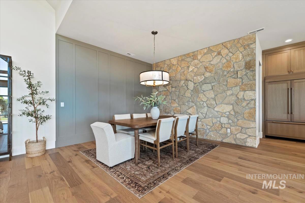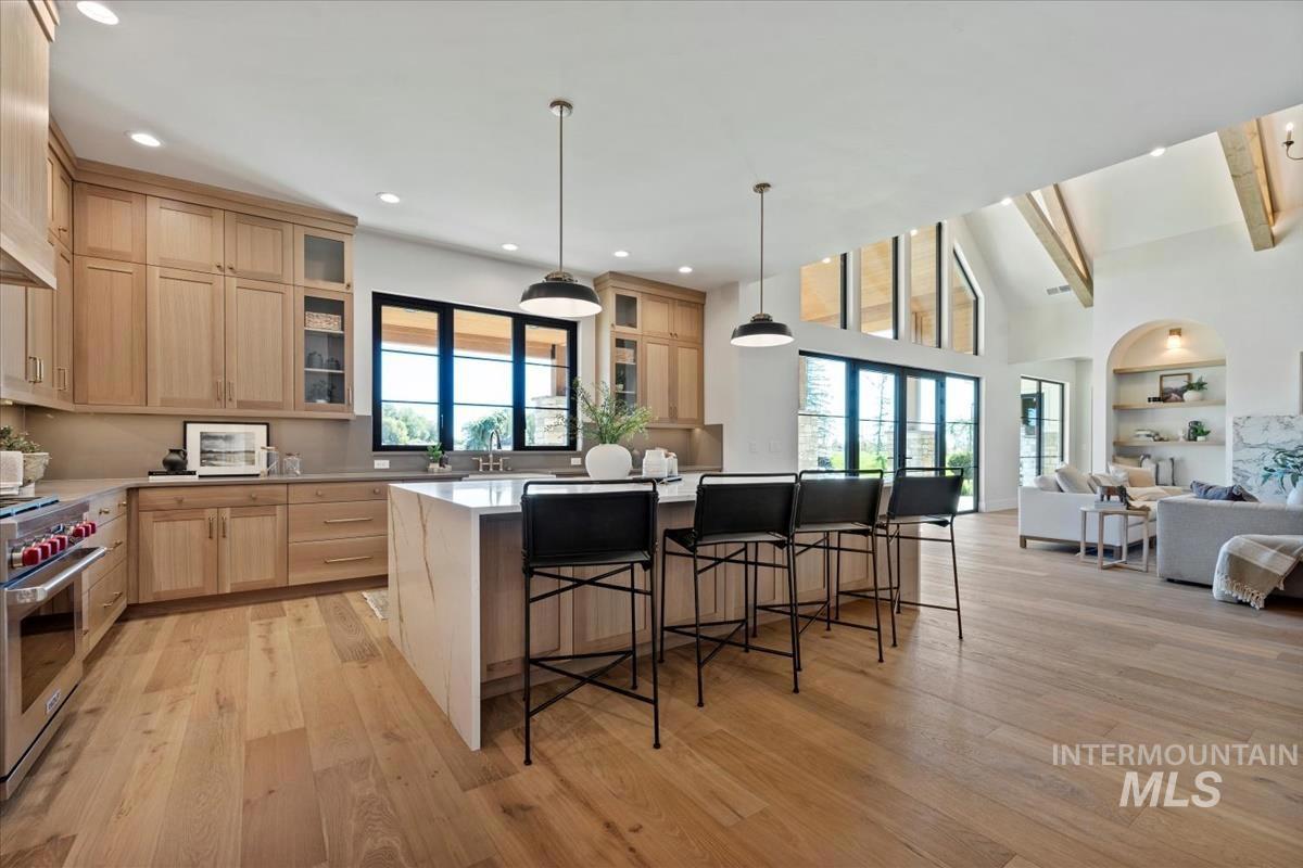 Discover refined living in this stunning SINGLE LEVEL 4,059 sq. ft. home nestled in the prestigious new master-planned community of Terra View! Featuring 4 bedrooms (plus an office), 3.5 baths, this home seamlessly combines modern design with warm, natural elements. Incredibly high ceilings with unique, intricate backlit beams welcoming you home & giving you a cozy feel - a must see! Perched along tranquil waters & your own private beach, this home boasts breathtaking views from multiple vantage points—most notably from the chef-inspired kitchen complete with Wolf & Sub Zero appliances & the sleek glass-walled office, where work-from-home transforms into a daily retreat. The expansive open floor plan is perfect for entertaining! This home makes everyone happy too - a luxurious, beautiful master suite closet making organization & getting ready a breeze & an RV garage that provides ample space for your adventurous lifestyle. High-end finishes, thoughtfully designed living spaces, and seamless indoor-outdoor flow make this home a true gem in a community designed for elevated living. A southeast facing backyard to enjoy your patio year round & watch the mountain views change with the Idaho seasons! Come put your toes in the sand & be ready to call this one "HOME!"