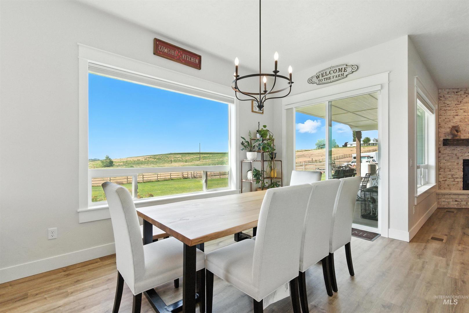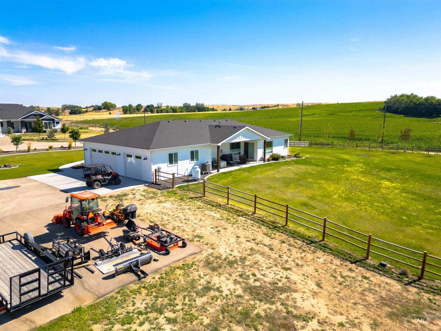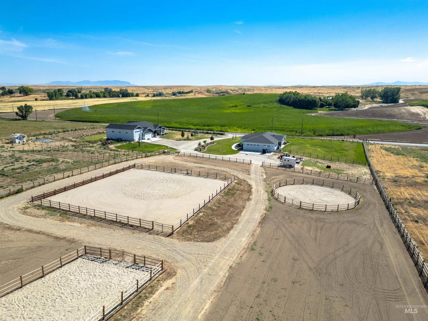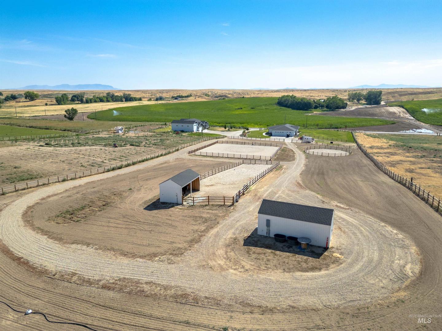 Sellers offering $25,000 toward a rate buydown! Enjoy Idaho country living in this upgraded single-level home on 5.02 agricultural-zoned acres in the scenic North Middleton/Caldwell hills of Gem County. This modern farmhouse features an open floorplan and showcases quartz and granite counters, LVP flooring, tile bathrooms, and a cozy fireplace. The primary suite includes a custom walk-in closet, tiled shower, and soaker tub. Relax on the covered patio with panoramic mountain and valley views and soak up peaceful Idaho sunsets. Located in a newer community with private trails to BLM land, this horse-ready property offers space, privacy, and modern comfort—perfect for a hobby farm or multi-home estate. Build your dream barn or shop, plus there`s room for a second residence or guest house—stick-built or manufactured— water and power are already installed! This ready-to-ride acreage features a pasture shelter, feed room, round pen, and arena, plus a full RV hookup with water, electric, and septic. Additional highlights: pressurized irrigation with negotiable pods, sprinkler system, large laundry with sink, storage shed, security system, and over $150,000 in upgrades. Minutes from amenities and I-84, this modern farmhouse-style home delivers the Idaho lifestyle you’ve been waiting for! Don’t miss this rare opportunity—schedule your private showing today!