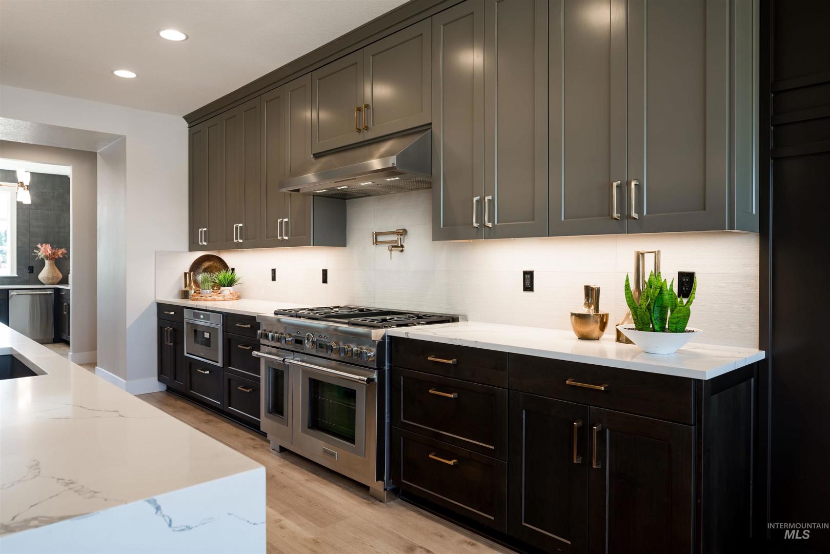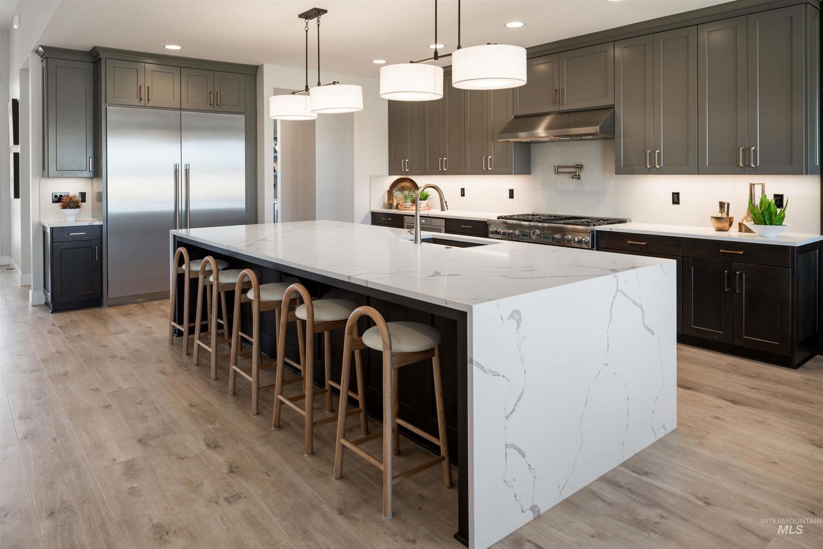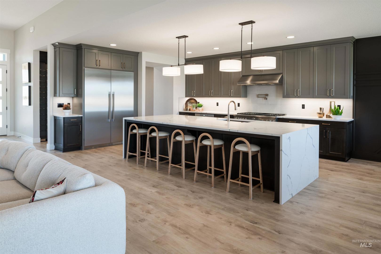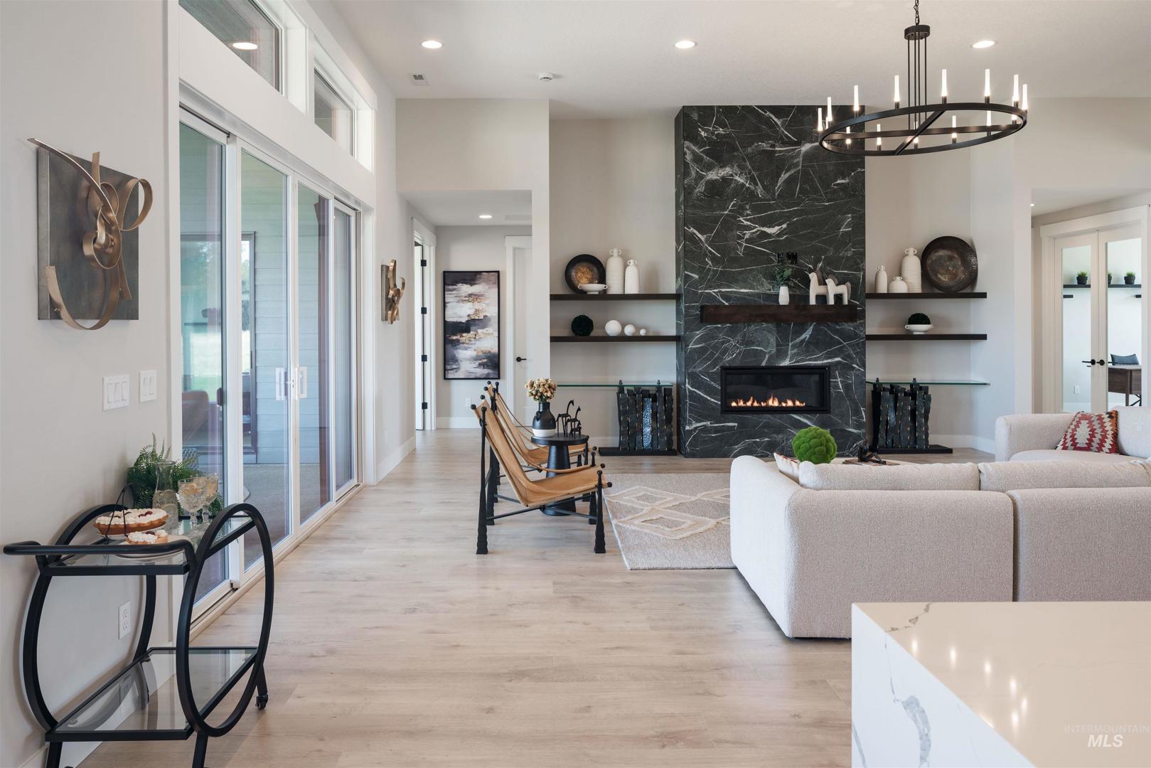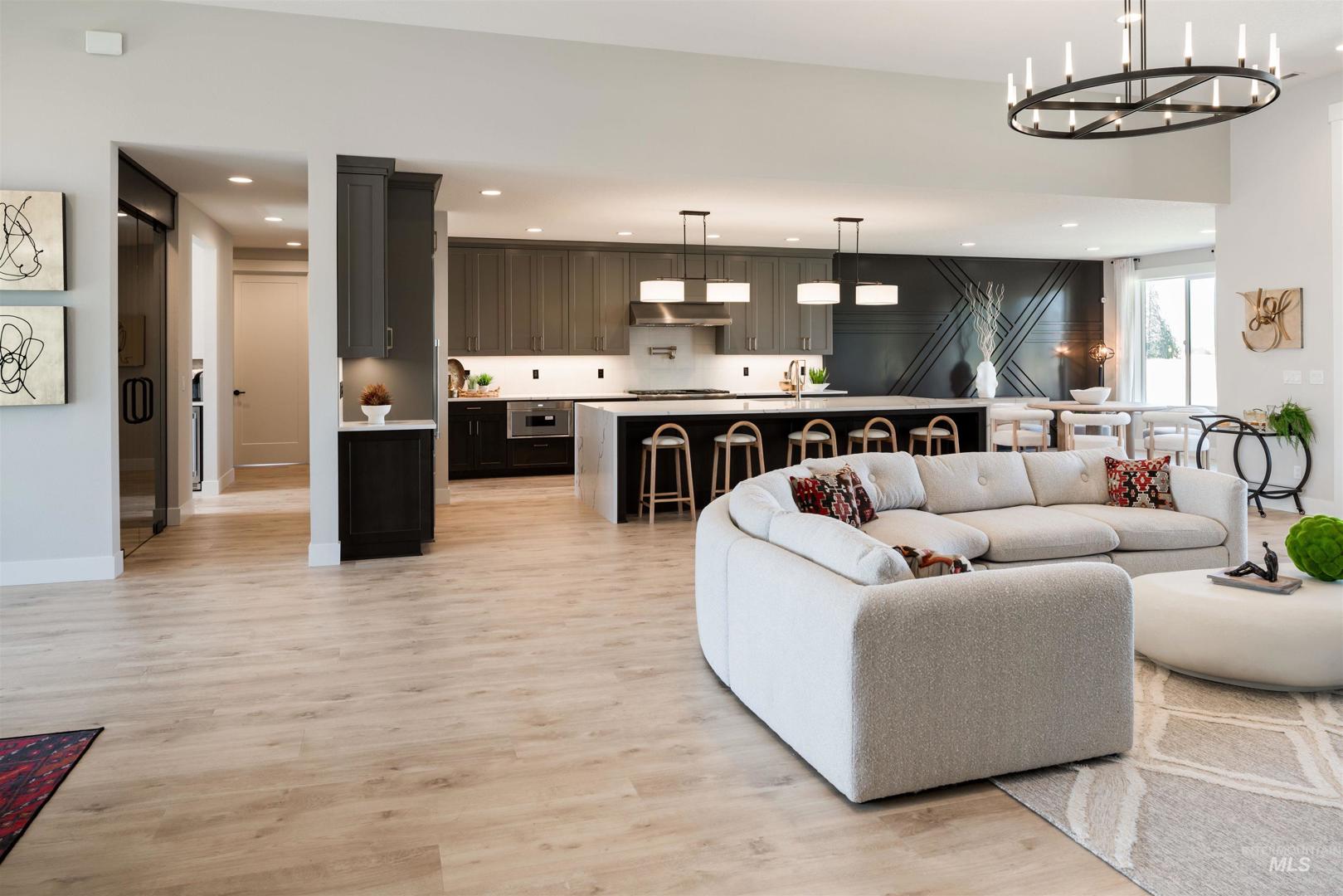 4.875% FIXED 30-year CONVENTIONAL financing incentive on select Eagle Ridge homes—truly a permanent loan (not a buydown, not FHA). Approximately half acre homesite! To Be Built 6 to 7 months from contract to keys. Discover the Palisade- an exceptional home offering 3-5 bedrooms, 3.5 baths, and a 3-car garage. Thoughtfully designed across 4190 sqft, primarily on single level, with the upstairs featuring a private suite with full bathroom, perfect for multi-generational living or guests. This versatile floor plan features a dedicated den, game/bonus room, formal dining room, and a luxurious primary suite. The gourmet kitchen offers full-height cabinetry, quartz slab countertops, a large island, Bosch appliances, eating nook, a walk-in pantry and scullery. The great room impresses with 12` ceilings, a gas fireplace and dual sliding glass doors to a covered outdoor living space. The main level primary suite has a spa-inspired bath, large walk-in closet with direct access to the oversized laundry and mudroom for everyday convenience. Includes full fencing and front yard landscaping and home security system. Model Home now open! Located at 7875 W Flathead Lake St, Eagle, ID 83616. Open Wednesday - Sunday 11am - 6pm.
