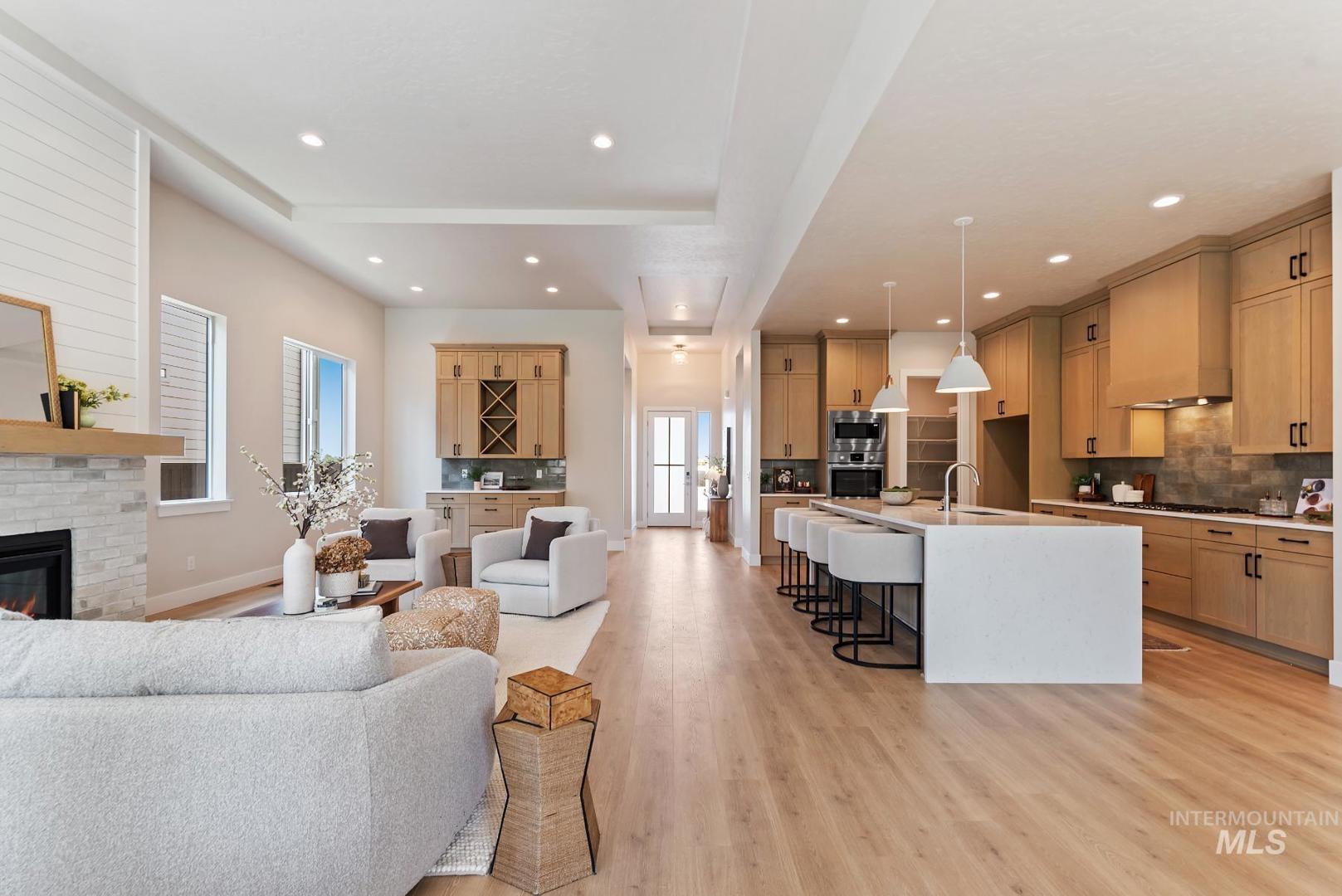 Under construction: Tamarack is a thoughtfully designed open-concept layout perfect for modern living. The spacious great room flows seamlessly into the kitchen and dining area, complete with a large center island, walk-in pantry, and an included dining nook bump-out for added space. The private primary suite offers a spa-inspired bath with optional all-tile shower and a generous walk-in closet. Two secondary bedrooms and a full bath are situated on the opposite wing for added privacy. A lounge area off the Great Room includes upper and lower built in cabinets, ideal for entertaining. Enjoy a dedicated laundry room, abundant storage, and thoughtful finishes throughout. Located in Sagarra, conveniently nestled within the Orchard Park Shopping District near WinCo, the Meridian Library, restaurants, and more! *Photo Similar*
