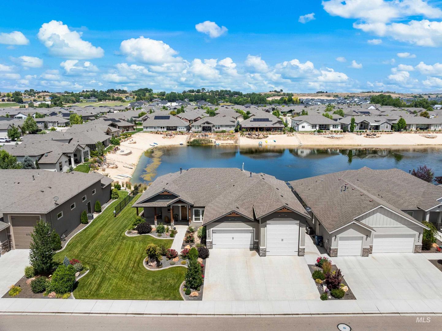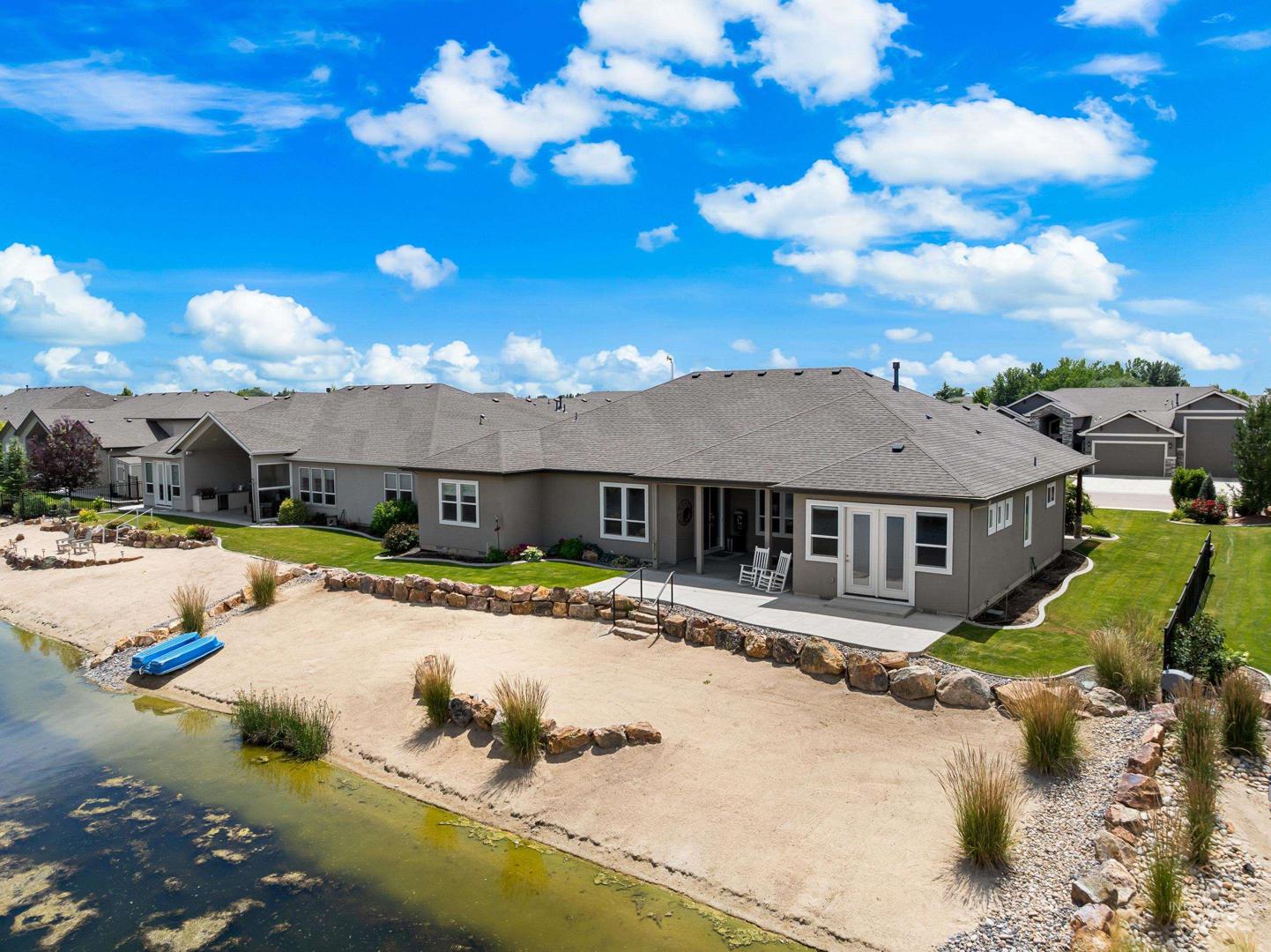 Live lakeside with style and space in this pristine waterfront home, complete with a private beach and RV garage! Start your mornings with coffee by the water, then choose your adventure: paddleboarding, swimming, canoeing, or catch-and-release fishing from your own backyard. When the sun sets, gather around the fire pit on your private beach for unforgettable evenings under the stars. Inside, the home is just as inviting. Gourmet kitchen is a chef’s dream, white kitchen cabinetry, double ovens, a gas cooktop, quartz countertops, a large walk-in pantry all designed for effortless entertaining. Open layout flows seamlessly into spacious living & dining area w/water views. 3 beds plus office & the primary suite is a treat of its own, featuring a spa-inspired bathroom, deep soaker tub, a large walk-in shower, & an expansive closet. 16x49 RV garage w/14’ door, loft storage & a mini split. Tucked into a quiet, close-knit neighborhood, this home offers the rare blend of adventure, relaxation, & small-town charm.