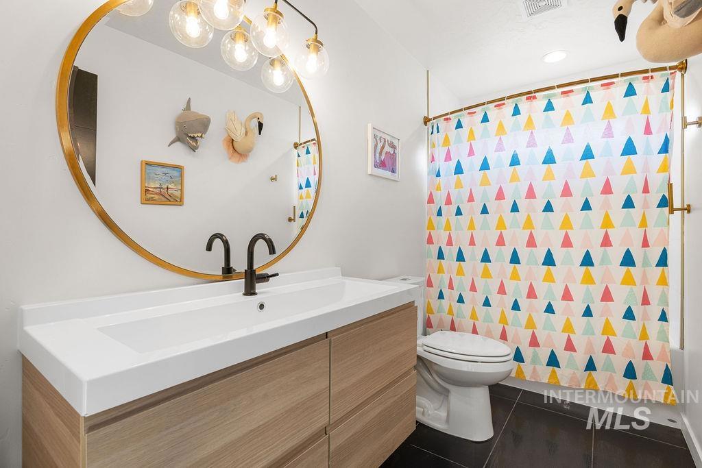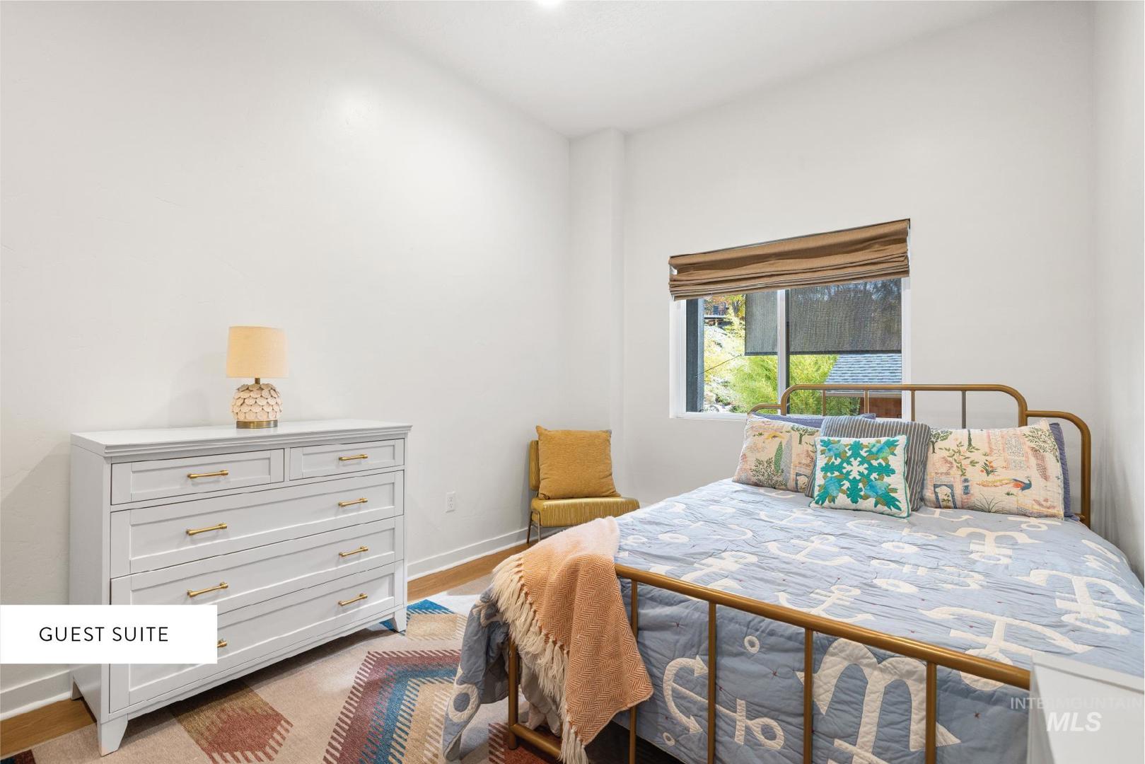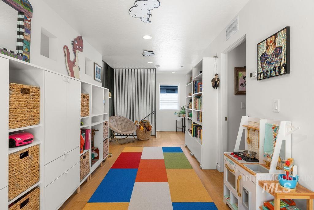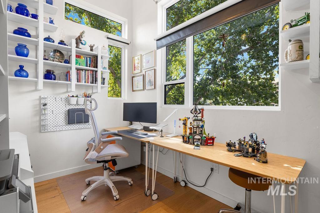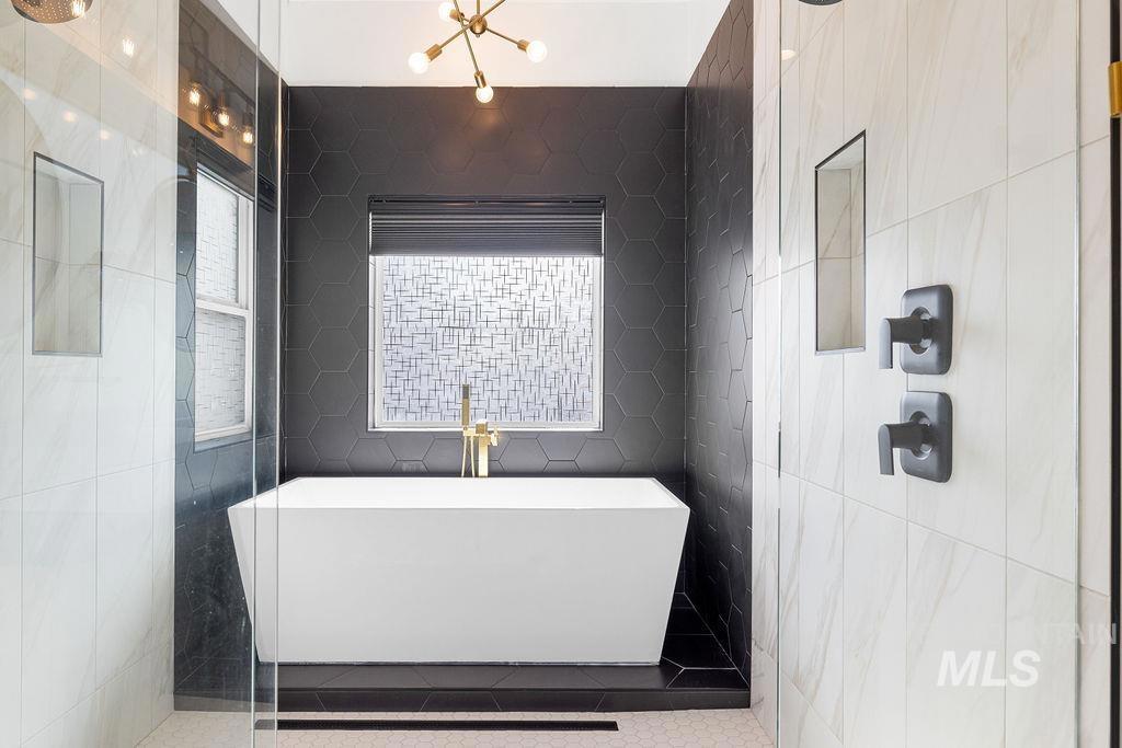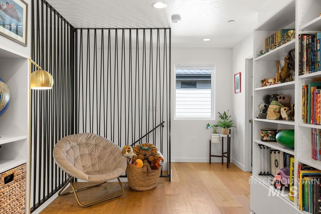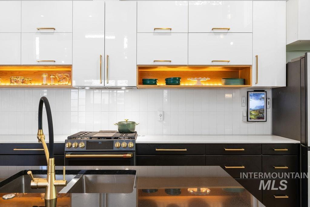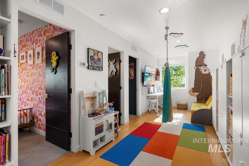 Gorgeous contemporary home nestled in Boise’s coveted North End Foothills! Prime location near Hyde Park’s charming shops and restaurants, downtown, parks and endless trails. Step inside to soaring 20-ft beamed ceilings, wide-plank white oak floors, curated lighting fixtures and abundant natural light throughout. The open layout features a sleek chef’s kitchen with quartz waterfall island and new gas range. The great room’s roll-up garage door and double-sided fireplace open to a private deck for seamless indoor-outdoor living and entertaining. Main-level primary is a true retreat with a sitting/reading nook, direct deck access, luxurious spa bath with heated tile floors and glass-enclosed shower/soaking tub, and a custom California Closet system with laundry hookups. Upstairs offers a bonus/loft area, 2 bedrooms with custom closets, a full bath and laundry. The versatile lower-level, with 9-ft ceilings and separate entry, functions as a guest suite, in-law apt., or family/media room with kitchenette, dining space, bedroom, bath, closets, laundry and deck. Neighborhood hilltop trail across the street for spectacular sunset and downtown skyline views! Main-level office, fenced backyard, insulated garage. Zoned for great schools!