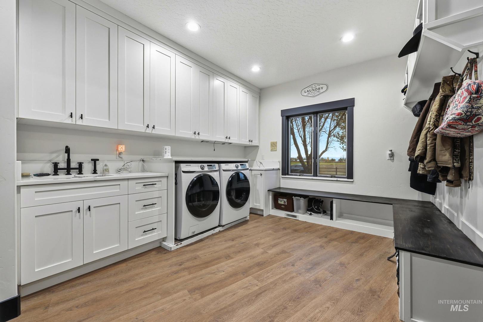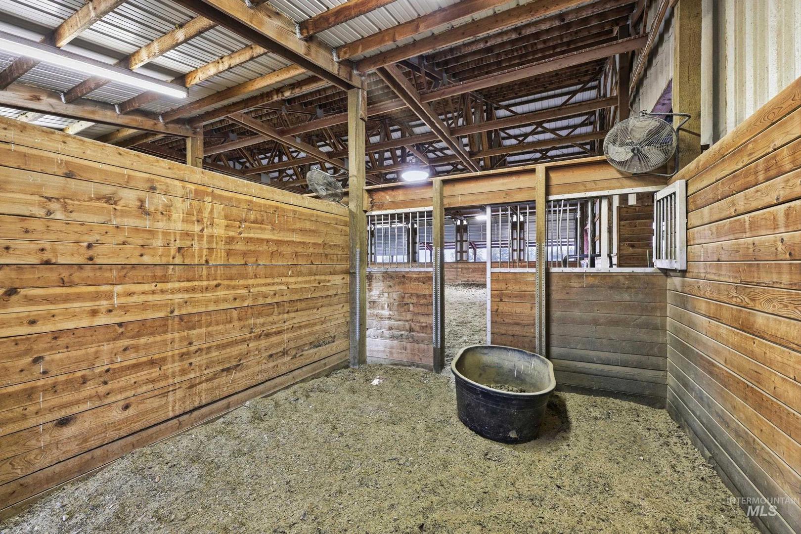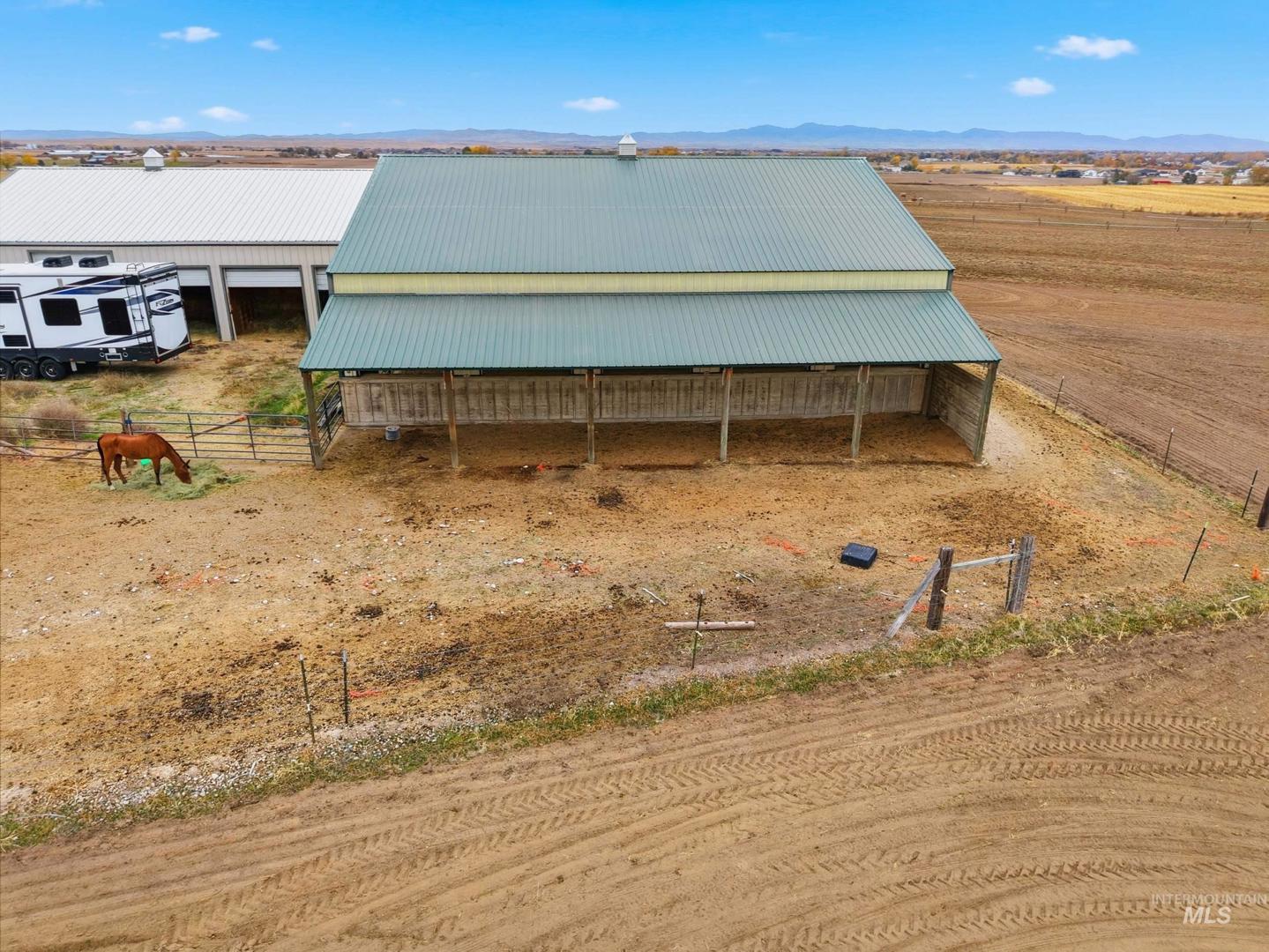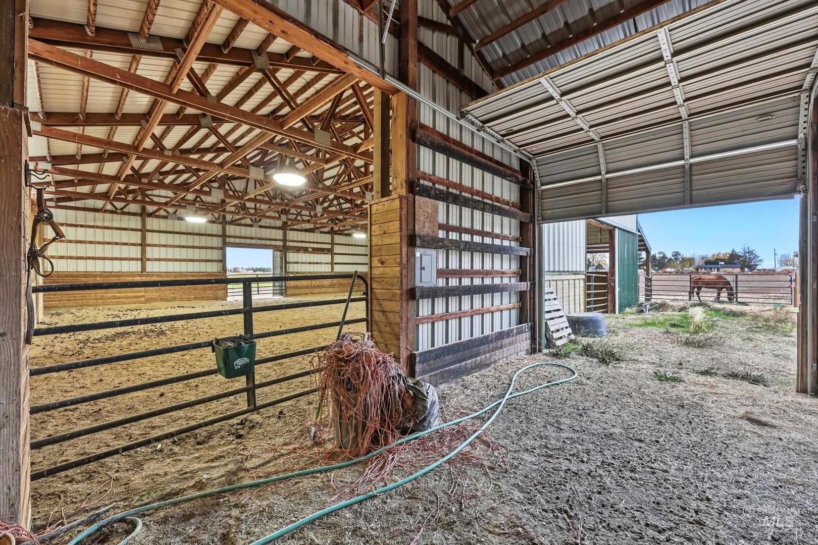 Enjoy vast skies & amazing views on this equestrian ranchette w/60x60 indoor riding arena, all the supporting tack rooms, 6 stables, 2 Barns & Chicken Coop! This beautiful & enormous remodeled home includes newer hardwood-style floors, plush pattern carpet, vaulted ceiling with pine with Cherry Fireplace, Updated Kitchen, Master Suite/Bathroom and all bathrooms. One of a kind horse property with 5721 square foot all brick home with view of the Boise front hills. Second Home-ADU Compliance and high end finishes that is additional 600 sq ft with large Living Room, Kitchen and Second Master suite. Features: dedicated 30amp and 50amp power plugs for RV. EV charging port in garage, completely wired for cat5e ethernet through the house, barn, and ADU. The ADU has fiber optic line from main house to provide internet connectivity so everything is interconnected. Barn Features include Wash Bay with electric Water heater and a Bar-Bar-A antifreeze automatic waterer for horses or whatever animal you would like. Provides 100% hands off for watering animals so no more busting up frozen water in the winter months. The House has a New roof, new facia, new gutters and matching LVP flooring for the basement plus water softener and reverse osmosis system. Piped for Irrigation in pasture. Buyer / Buyer`s agent to verify with School District for current schools/school boundaries. BTVAI