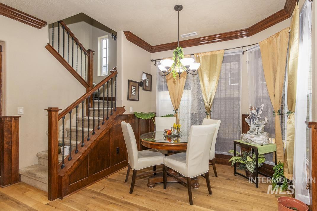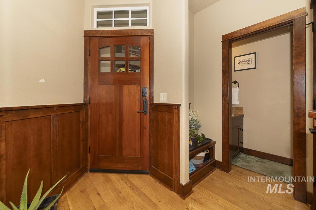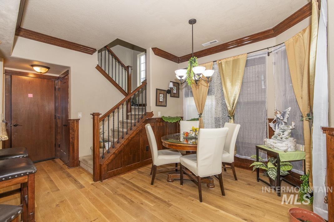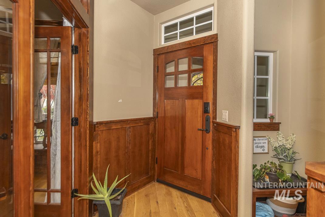 Set in the heart of Eagle, Idaho, this low-maintenance single-family home places you minutes from Downtown Eagle dining, the Boise River Greenbelt, parks, and local shops. Thoughtful 3 bed / 2.5 bath layout: each bedroom enjoys direct en-suite access—an airy primary suite plus a Jack-and-Jill for the secondaries—along with a convenient powder bath for guests. The primary is larger and features a walk-in shower and generous storage. High-end wood finishes—doors, trim, and custom cabinetry—warm the bright, open living areas, while an easy-flow kitchen/living/dining design makes everyday life and entertaining effortless. Enjoy true lock-and-leave living: the HOA maintains all yard care, freeing up your time for the things you love. Quick access to Downtown Eagle, the Greenbelt, and commuter routes keeps everything close at hand—dining, trails, and weekend markets just moments away. BATVA