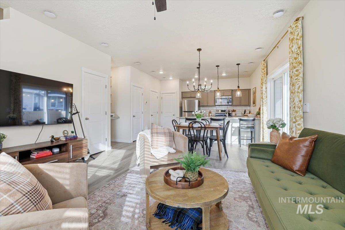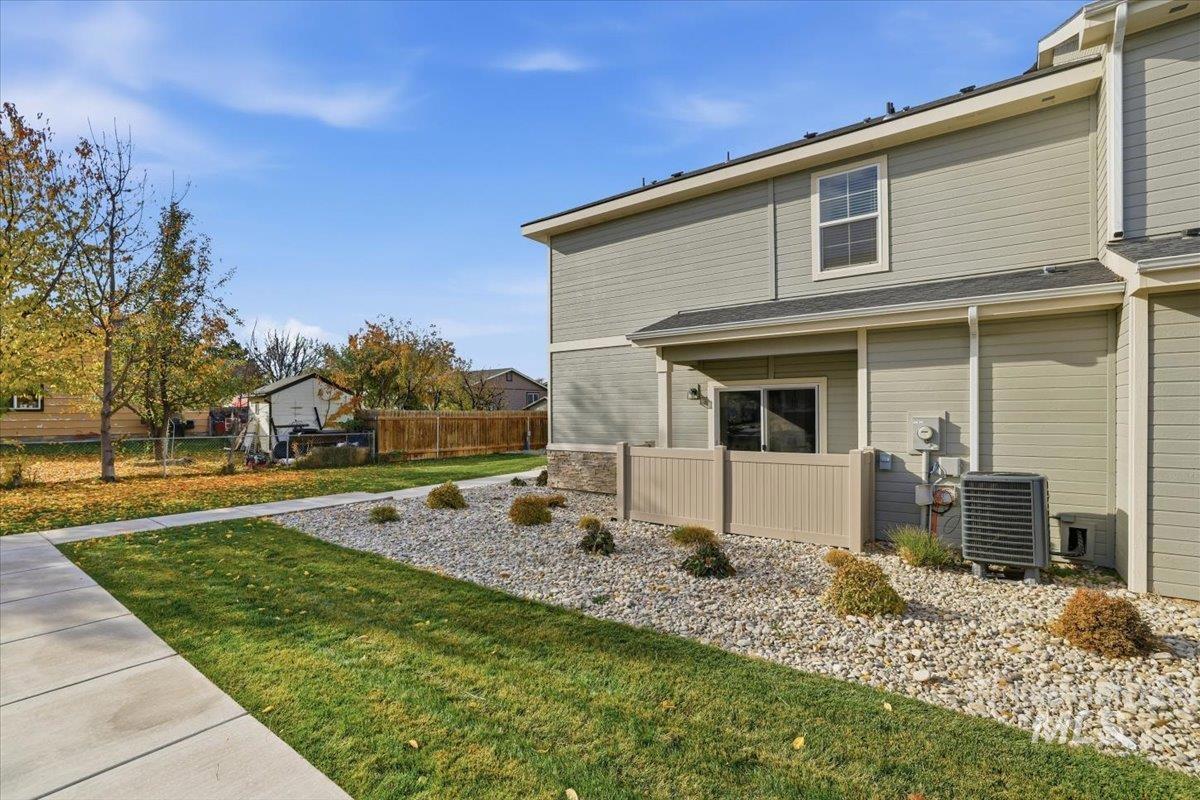 A beautiful new construction home in Nampa that is actually affordable! 5.75 interest rate available! Don`t miss out on this rare luxury townhouse with TWO master bedrooms and a community pool! This home features high end finishes such as granite countertops in the kitchen, LVP flooring, and upgraded lighting! The open concept living downstairs gives you plenty of room for entertaining and flexibility for an office space. Fall in love with your kitchen that has a HUGE island with lots of seating (up to 5 stools) and a large pantry for ample storage. Your private covered patio has a large outdoor storage closet for all of your seasonal items! 10 minutes to the Nampa Costco, 5 minutes to downtown Nampa, Lakeview park, and there amity dog park! You are even walking distance to the caldwell greenbelt path! Schedule a tour before it`s gone and be home for Christmas! The HOA covers ALL exterior maintenance and repair for standard wear and tear, including repair, replacement, and care for all fences, roofs, gutters, down spouts, exterior Dwelling Unit surfaces (siding, stucco, painting, etc.), trees, shrubs, grass, lawns! Low maintenance and less for you to worry about! Landscaping and snow removal included!