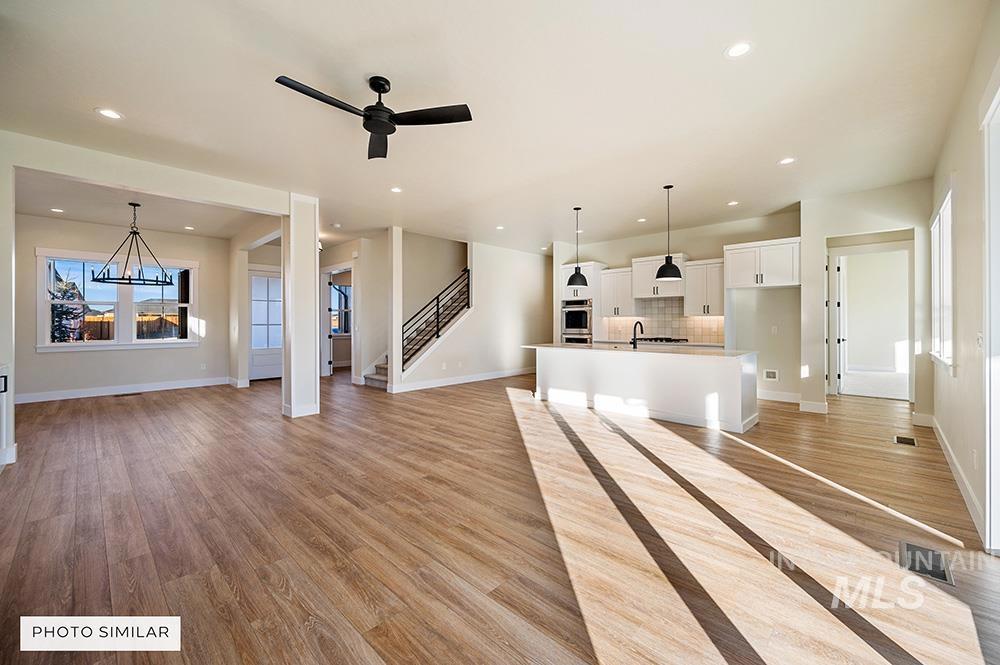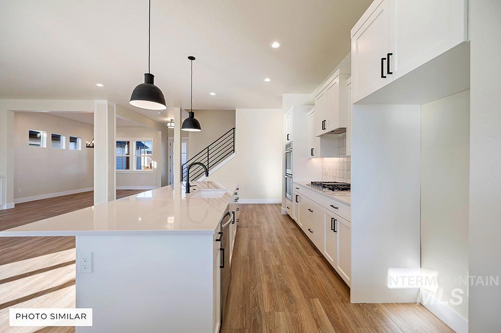 Under Construction - The Ponderosa by Sterling Homes emphasizes space and functionality with gorgeous appeal. The spacious open concept creates an effortless flow for everyday living and entertaining led by beautiful and durable luxury vinyl plank flooring. Beautifully finished and equipped gourmet kitchen features built-in stainless steel appliances (including dual wall ovens), soft-close cabinets with stylish hardware, and brilliant quartz countertops. This exquisite two-story design offers a luxurious main-level primary suite and office, with additional bedrooms and loft/bonus upstairs. Smart home upgrades include: CAT-6 wiring, mesh whole house wifi system, 5.1 audio system, built-in speakers on back patio, smart thermostat, and energy-efficient furnace and A/C. Photos are for representation only. Stunning large lot with spacious back and side yards. This homes garage differs from the photos and includes an RV garage bay (& plenty of room to store toys). Indian Creek Ranch is Kuna`s first resort-style waterfront community in the land of open skies. Nestled along Indian Creek, the community features a waterfront park, walking paths, playground, pickleball courts, and pool.