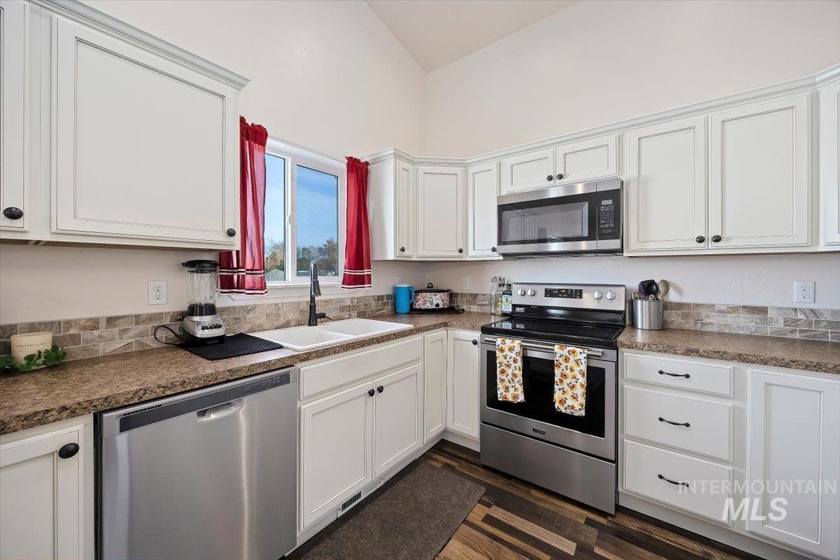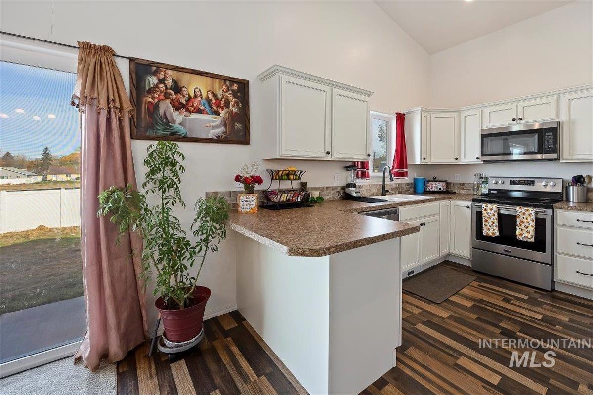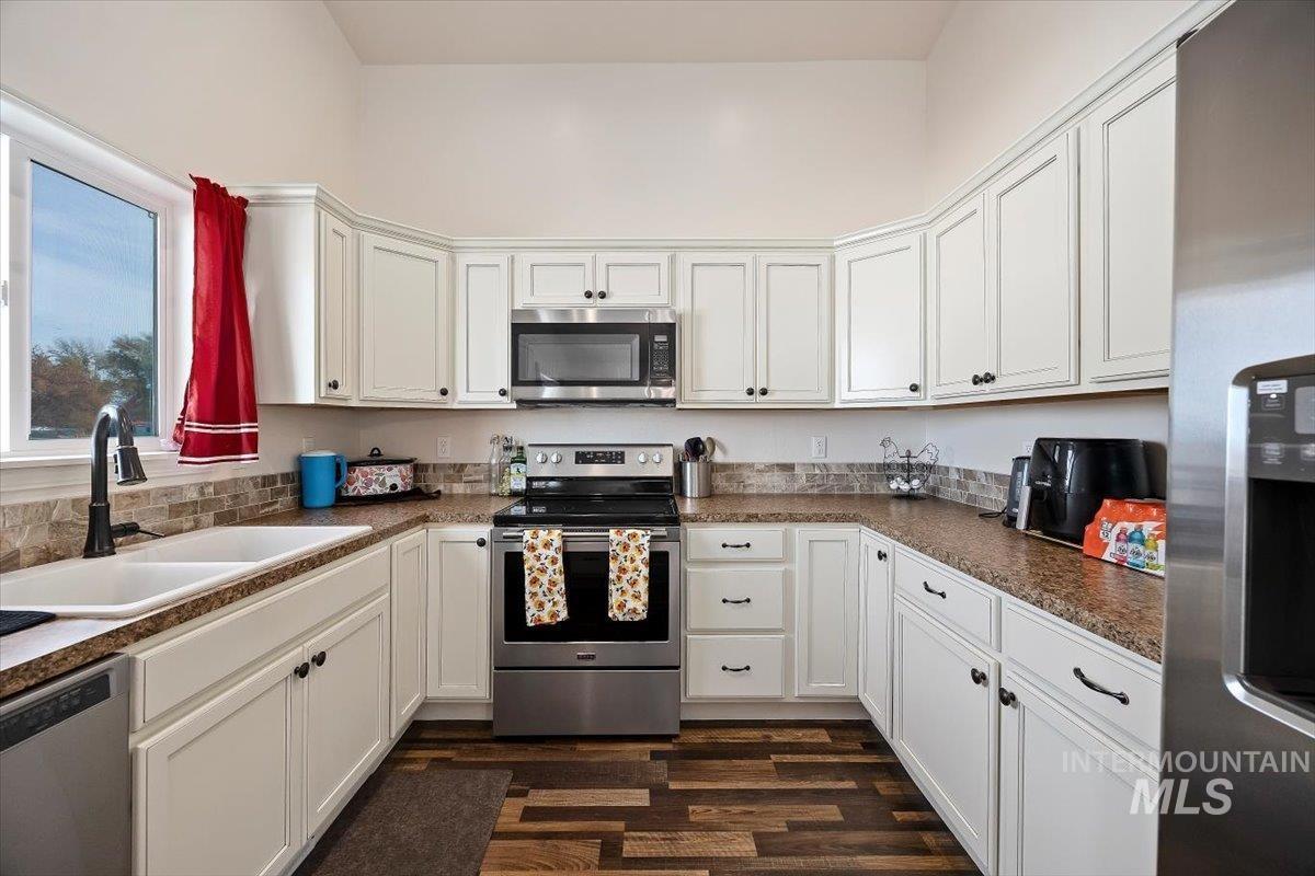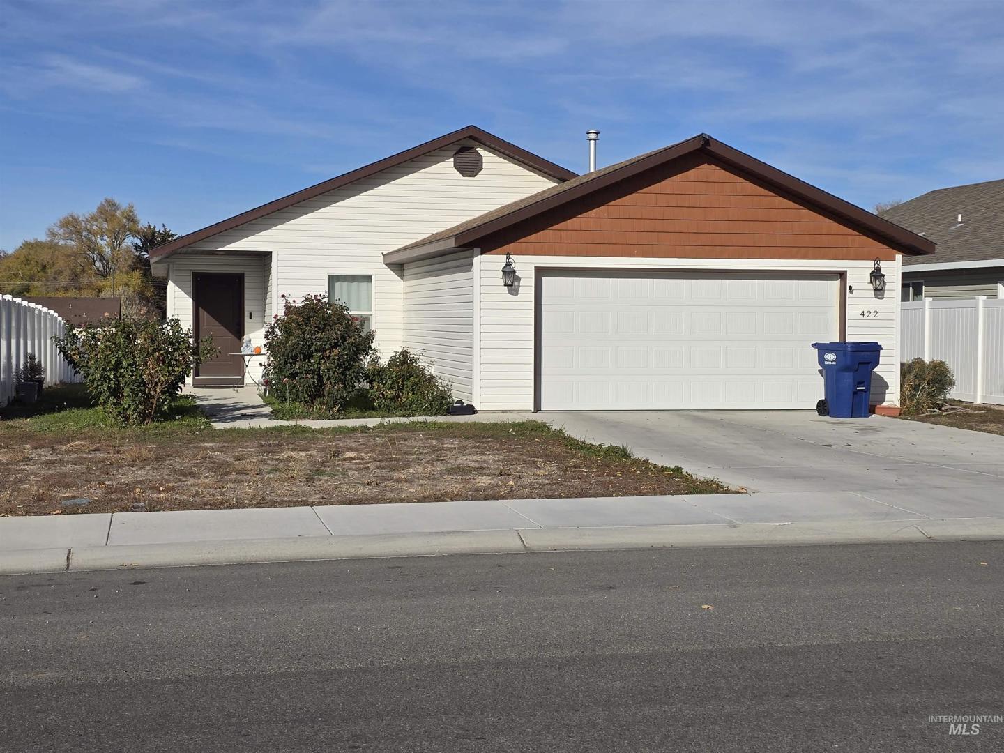 Welcome to this 1,392 square foot home designed for open concept living, vinyl plank flooring, spacious living and eating area. Patio off kitchen to the fenced backyard. Kitchen has white country style cabinets with space-saver microwave and oven/range included. Roomy vanity area in main bathroom with tub shower combo. Master bedroom bathroom has glass walk-in shower and generious walk-in closet. Gas heat, gas water heater and A/C. Double garage with auto opener. Home is located near convenient amenities. Take a look today!