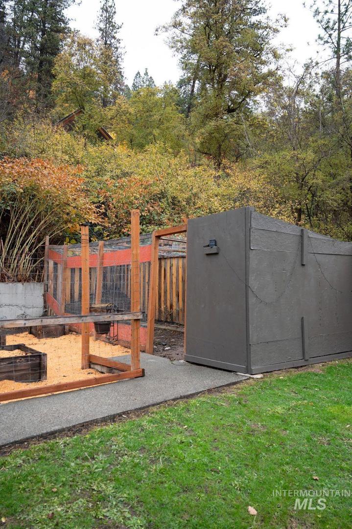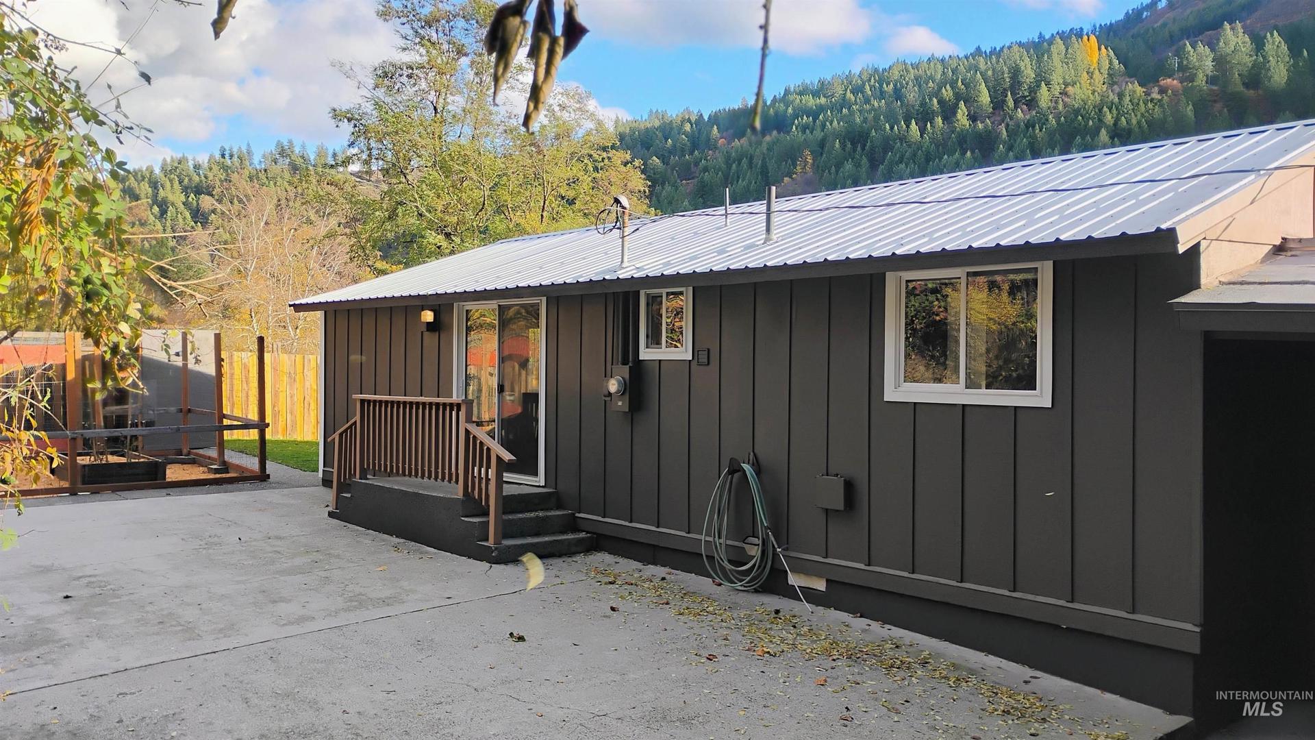 Tucked against the hillside on a quiet dead-end street, this single-level Orofino home offers privacy and charm. Fresh exterior paint and a metal roof give it great curb appeal, while the enclosed garden with attached chicken coop, covered porch and patio invite you to enjoy the wooded surroundings. Inside, the flexible floor plan features two traditional bedrooms plus a third room currently used as a pass-through office — perfect for remote work, hobbies, or easily enclosed as a small third bedroom. Spacious living area, bright kitchen and dining nook, and a separate mudroom with laundry hook-ups add to the home’s functionality. Gravel driveway, carport, and fenced yard area provide plenty of space for parking, gardening, or pets. A solid, move-in ready home at an approachable price point.