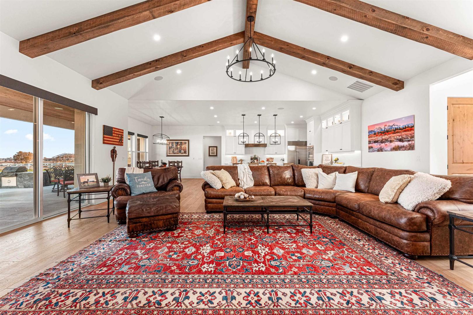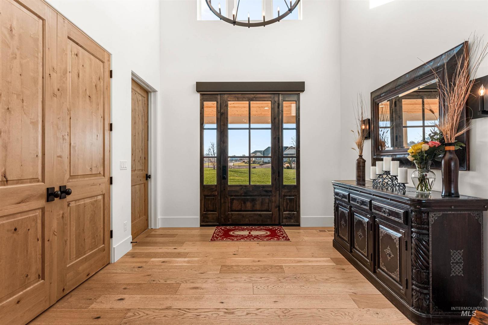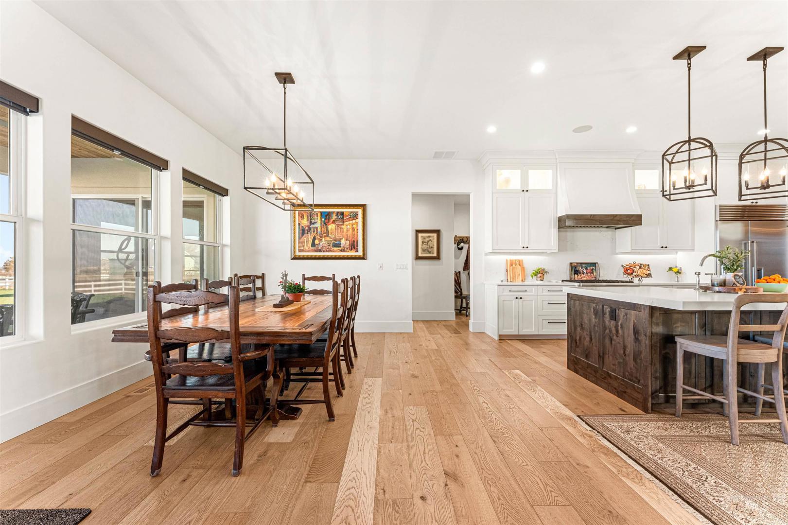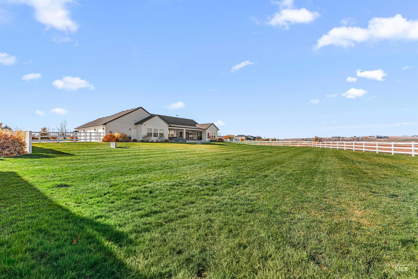 Experience luxury country living in this near-new rambler on 2.18 acres with no backyard neighbors. Set on a quiet dead-end street, this home was built with exceptional attention to detail, featuring 2x6 fully insulated walls inside and out for superior comfort and efficiency. The chef’s kitchen is outfitted with Thermador brand and Sub-Zero brand appliances, tall ceilings, 8-foot knotty alder doors, and expansive windows create a bright, open feel. Enjoy thoughtful upgrades throughout, including surround sound, tank-less water heater, dog shower, security system, and abundant natural light. A home office and bonus room offer flexibility for work and play, while the extra-deep garage easily fits three full-size trucks plus a car. With livestock allowed, this property offers space, freedom, and quiet living rarely found this close to town.