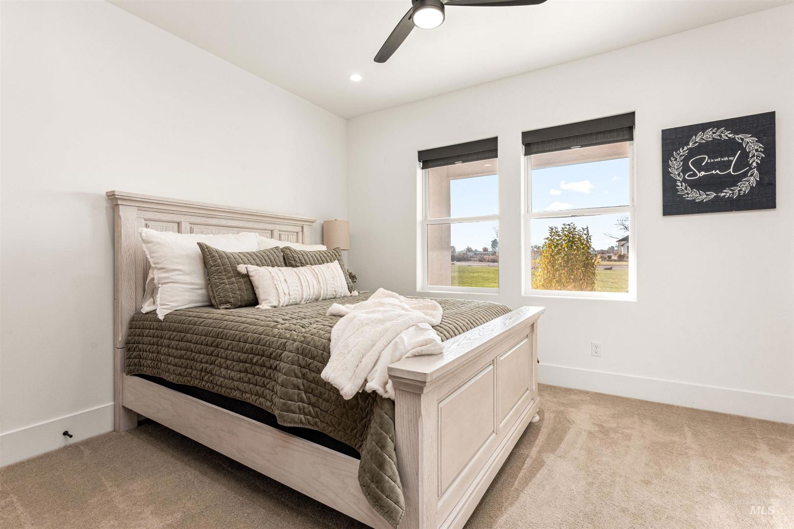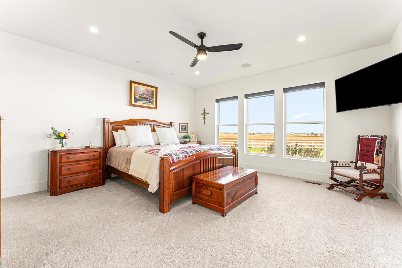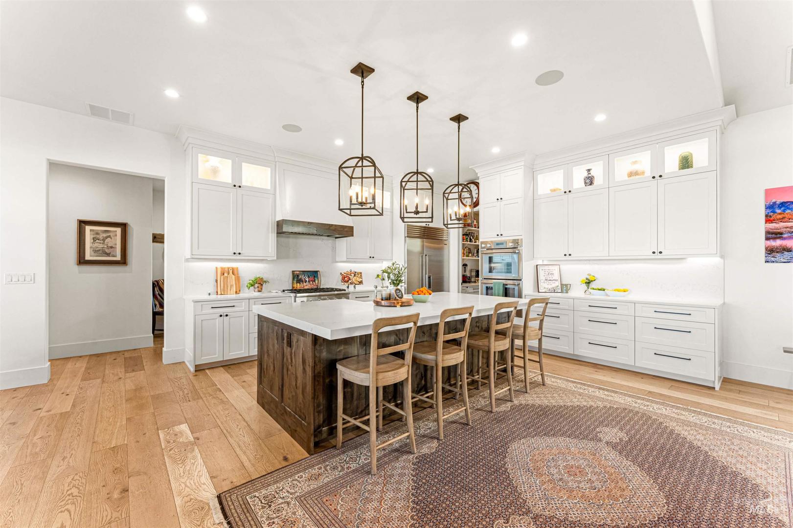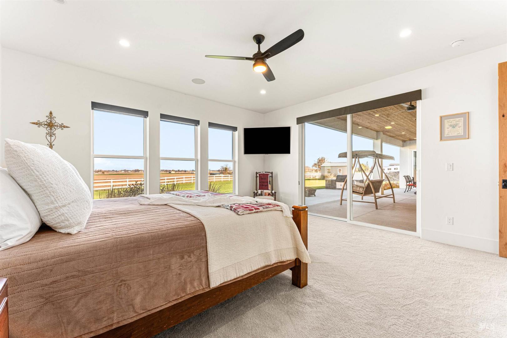 Experience luxury country living in this near-new rambler on 2.18 acres with no backyard neighbors. Set on a quiet dead-end street, this home was built with exceptional attention to detail, featuring 2x6 fully insulated walls inside and out for superior comfort and efficiency. The chef’s kitchen is outfitted with Thermador brand and Sub-Zero brand appliances, tall ceilings, 8-foot knotty alder doors, and expansive windows create a bright, open feel. Enjoy thoughtful upgrades throughout, including surround sound, tank-less water heater, dog shower, security system, and abundant natural light. A home office and bonus room offer flexibility for work and play, while the extra-deep garage easily fits three full-size trucks plus a car. With livestock allowed, this property offers space, freedom, and quiet living rarely found this close to town.