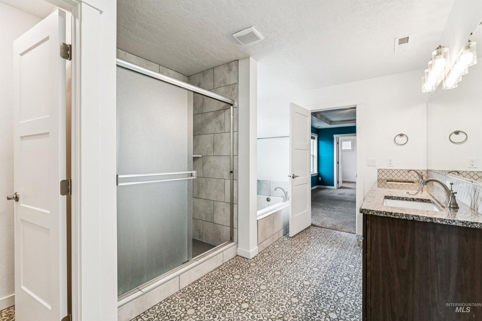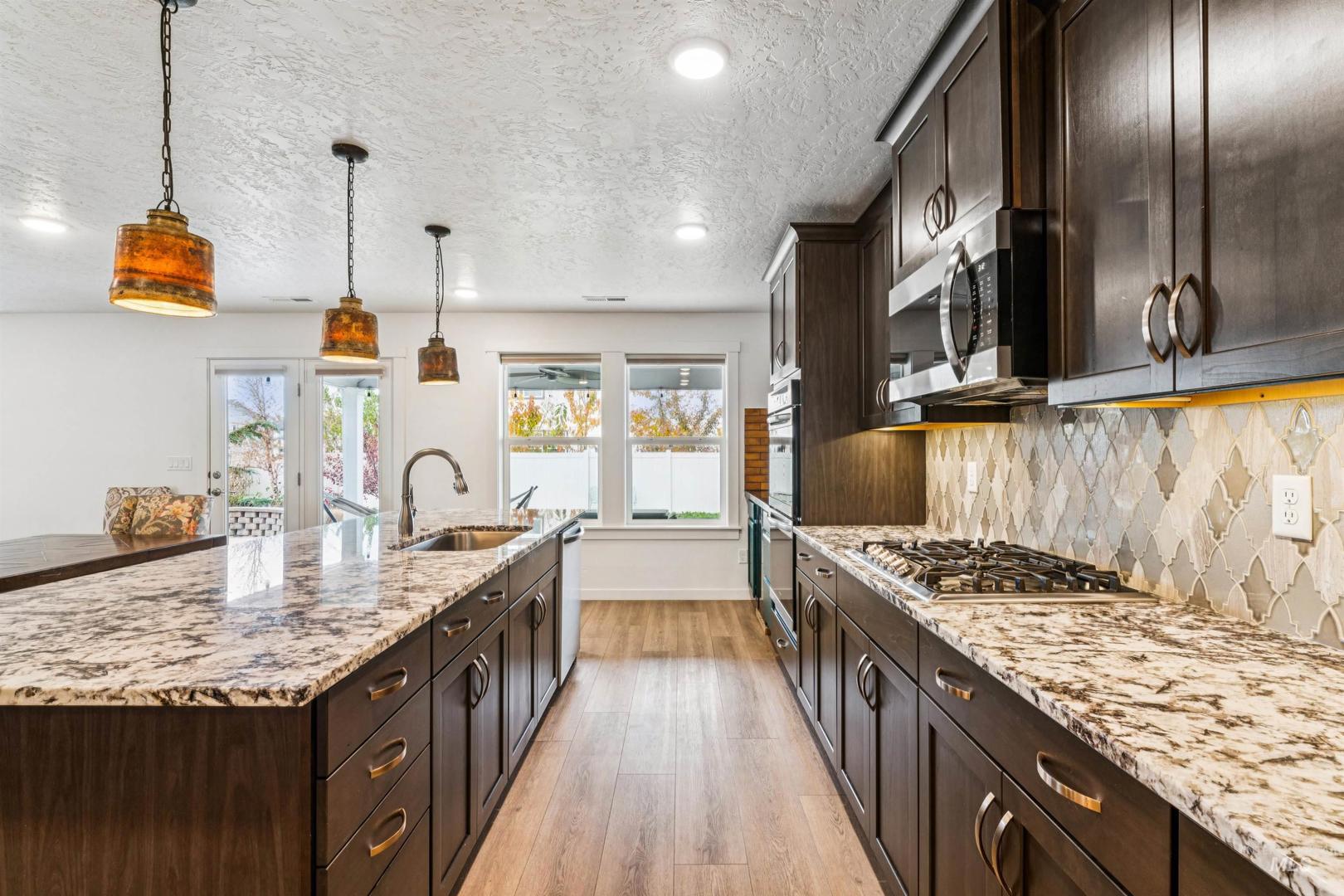 Welcome to this beautifully designed South Nampa gem on a spacious corner lot in a highly sought-after neighborhood. Crafted for everyday comfort and effortless entertaining, the home features generous living spaces, upgraded finishes, and energy-saving solar panels. A standout advantage is the assumable 2.5% loan for qualified buyers, offering exceptional long-term savings. The open-concept great room centers around a bright kitchen with granite surfaces, a large island, and a dining area ideal for gatherings. Upstairs, a flexible layout includes a roomy primary suite, additional bedrooms, and a versatile rec room suited for work, play, or relaxation. Outside, enjoy a private backyard oasis with professional landscaping, a full wrap-around concrete patio, a storage shed, and hot-tub-ready wiring. Spend quiet evenings under the covered patio or host weekend get-togethers in the finished outdoor space. Close to parks, schools, and shopping, this move-in-ready home offers comfort, efficiency, and room to grow—now paired with an outstanding financing opportunity.