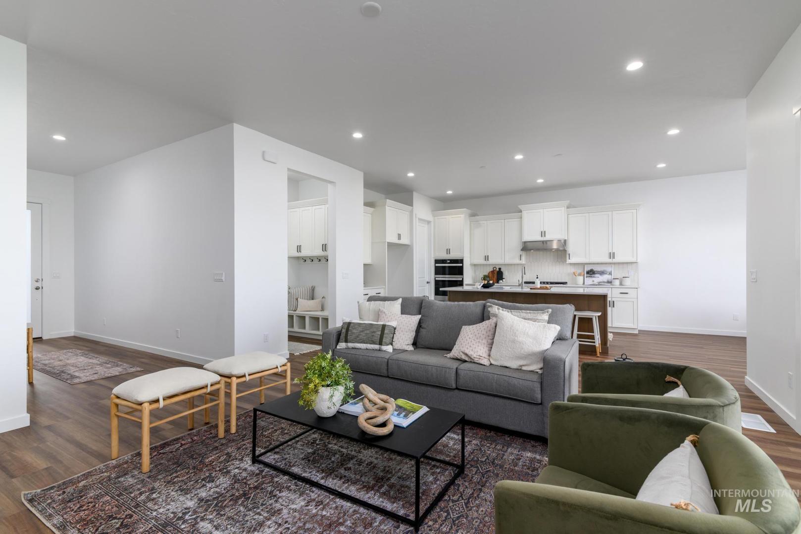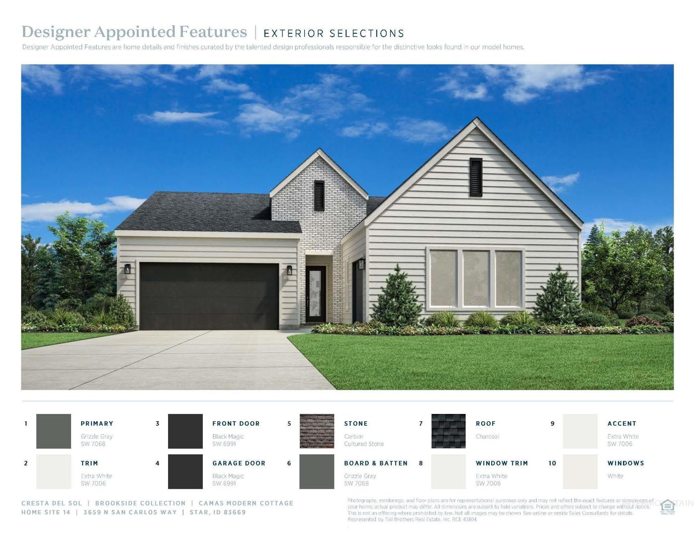 In the Camas, contemporary design meets functional elegance in a beautiful single-story home design. Upon entering, a grand foyer guides you toward the expansive great room which seamlessly merges with the kitchen, casual dining area, and large covered patio through multi-panel glass doors. Two secondary bedrooms share a bathroom at the front of the home, along with a powder room conveniently located off the great room. Tucked away at the back of the home, the primary bedroom suite features two walk-in closets, separate vanities, and a luxe shower. From its inviting foyer to its spacious living areas and practical amenities, the Camas embodies the essence of modern living, offering comfort, style, and functionality for every lifestyle. Split 3 car garage. Front and rear landscape included. Home is under construction. Photos are similar. BTVAI