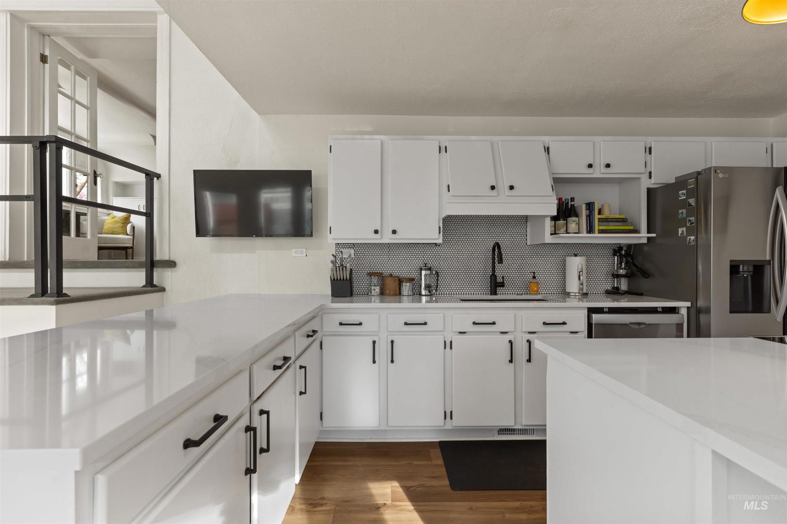 Beautifully Updated Home Just Steps from Boise’s Foothill Trails! This rare property offers true multi-generational potential with three spacious living areas, two primary suites, two full kitchens, two laundry rooms, and separate parking and outdoor entertaining spaces. Ideal for extended family, short-term rental, or a private guest/in-law suite. Recent updates include new flooring, quartz countertops, fresh interior paint, modern lighting, new toilets and sinks, stainless steel appliances, and a newly remodeled walk-in shower. The upstairs bonus room offers great flexibility and could be used as a 4th bedroom, home office, media room, or game room. Enjoy ample parking in front and an additional dedicated space in back. Property also includes an insulated shop/storage shed with power. Downstairs level can function as a separate living unit, offering excellent potential for rental income, Airbnb, guests, or extended family. This is an unbeatable location. It is just blocks from the Boise Co-op, VA Medical Center, St. Luke’s Hospital, Downtown Boise, Hyde Park, Military Reserve, and Camel’s Back Park. A truly versatile home in the heart of Boise’s most coveted amenities!