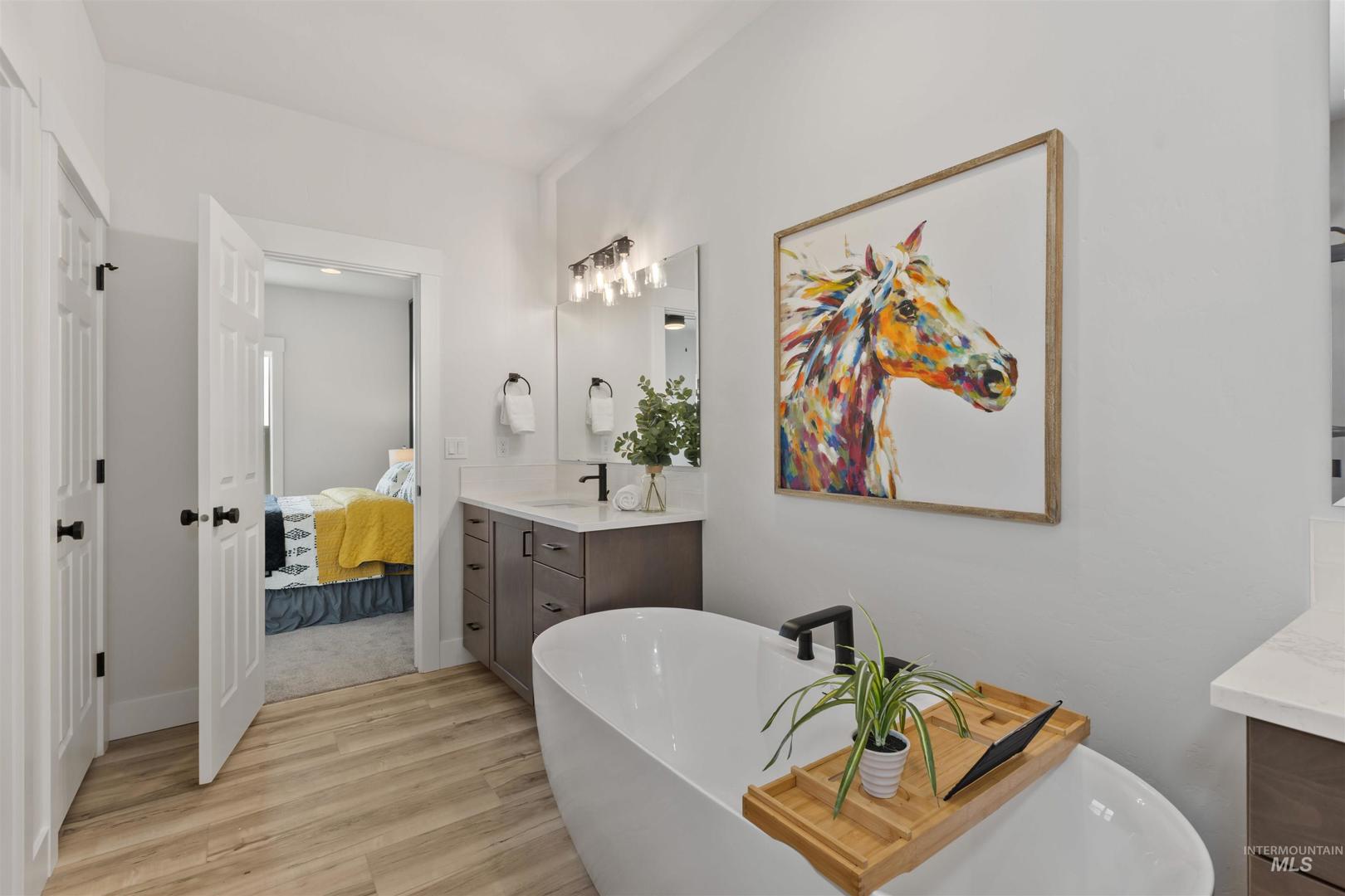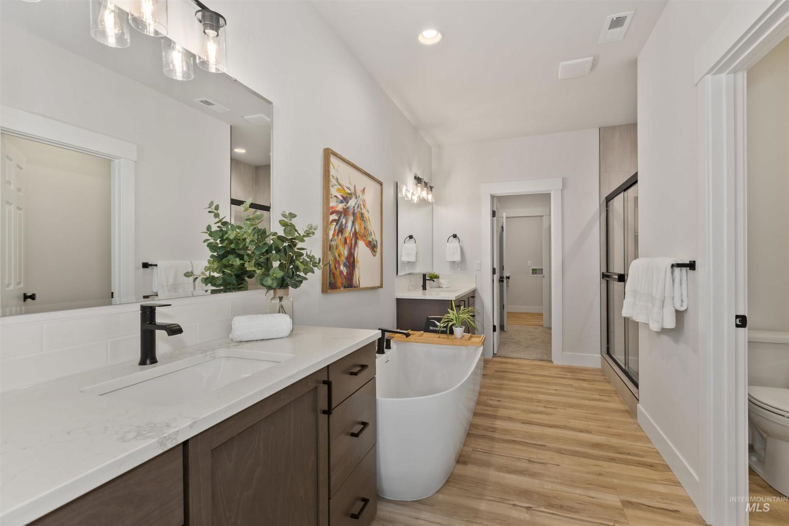 Welcome to this exceptional brand-new custom home set on 5 fully irrigated acres in one of Emmett’s most desirable areas. Designed to capture the stunning views of Squaw Butte, this property immediately impresses with a 24` x 40` shop, an RV bay with dedicated RV plug, and a smooth paved driveway—providing the ideal setup for equipment, trailers, toys, and all your hobbies. Inside, the thoughtfully crafted floorplan features 3 bedrooms, 2 bathrooms, a dedicated office, and a welcoming entryway. Quality finishes throughout blend comfort, function, and modern style, creating a space that feels both elevated and inviting. With wide-open land surrounding the home, this acreage provides a blank slate to bring your vision to life—perfect for animals, additional outbuildings, gardens, pastures, or customized outdoor living. Enjoy true Idaho living with a covered patio ideal for relaxing or entertaining, all while being just minutes from town amenities yet surrounded by the tranquility of country living.