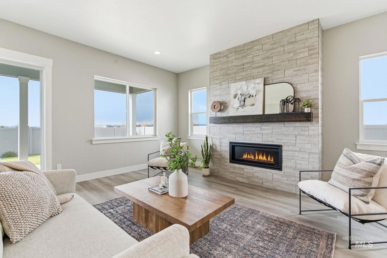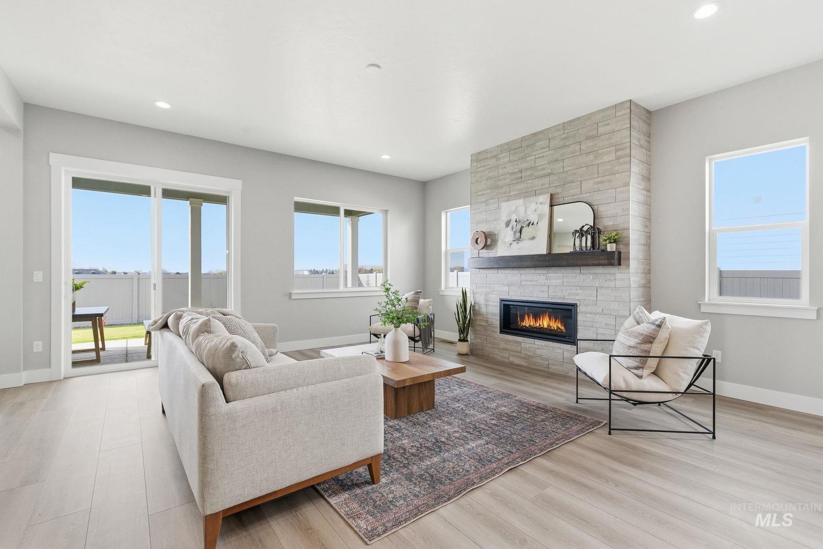 Up to $35,000 in Flex Funds on this home! This home is turnkey with refrigerator, washer, dryer, and window blinds included! "The Powell / Dual Primary Suites" by Richmond American Homes, available now. This home is open daily from 10 AM to 5 PM with no appointment needed. You can stop by the Information Center at 2375 N. Mountain Vista Ave., Star, ID 83669 to receive our full inventory of completed and upcoming homes. Please feel free to ask about current builder special offers and financing options. This beautiful new community is located atop a vista overlooking Star, with convenient access to anywhere in the Treasure Valley via Hwy 44 and 16. The Portfolio Collection homes feature elegant luxury finishes such as 10-foot ceilings, gourmet kitchens, quartz countertops, gas fireplaces, covered patios, upgraded wood soft-close cabinets, and deluxe primary baths. Additionally, all homes come with tankless water heaters, HERS ratings for superior efficiency and low utility bills, as well as front and back landscaping, sprinklers, and fencing. Restrictions apply.