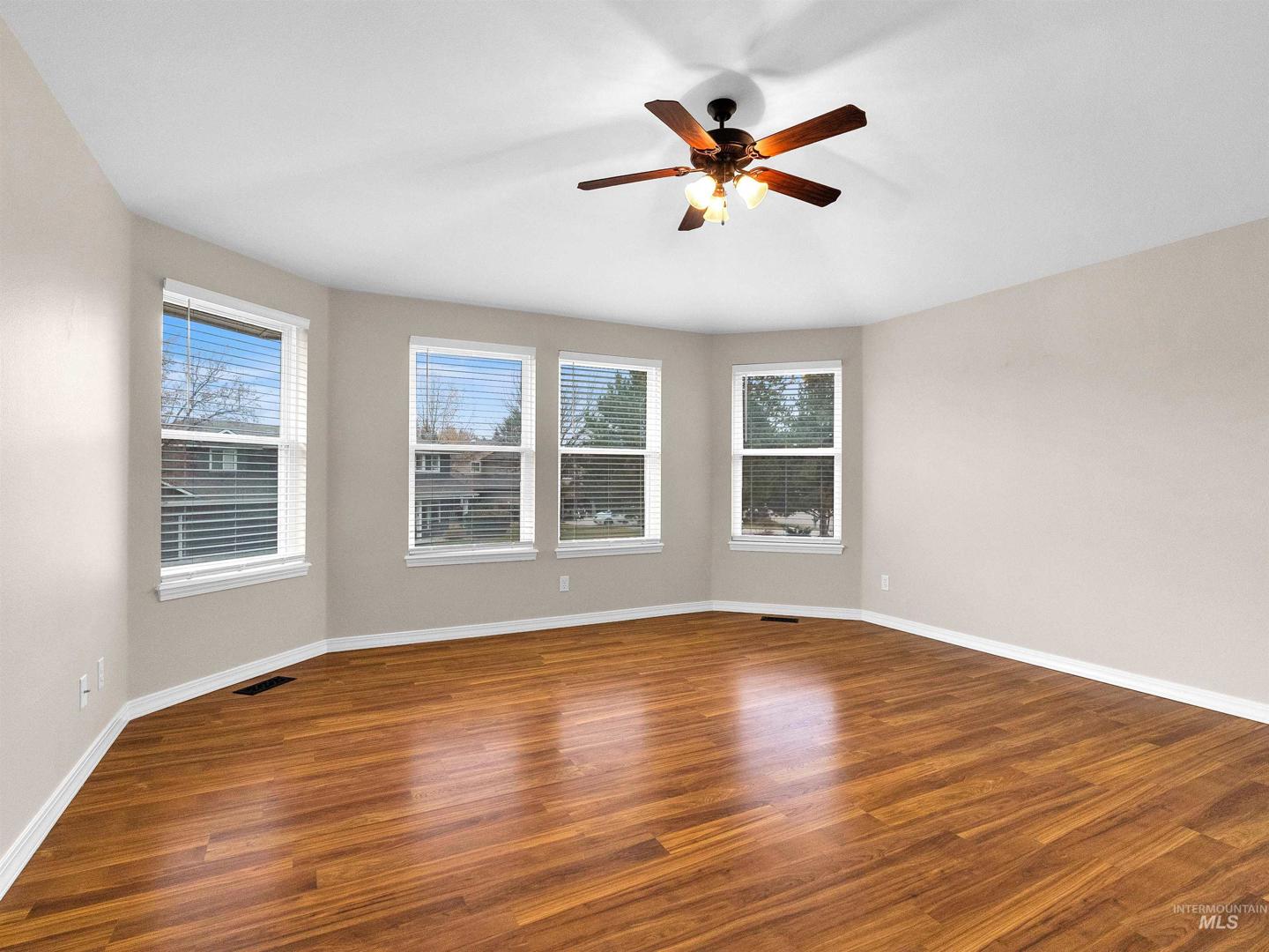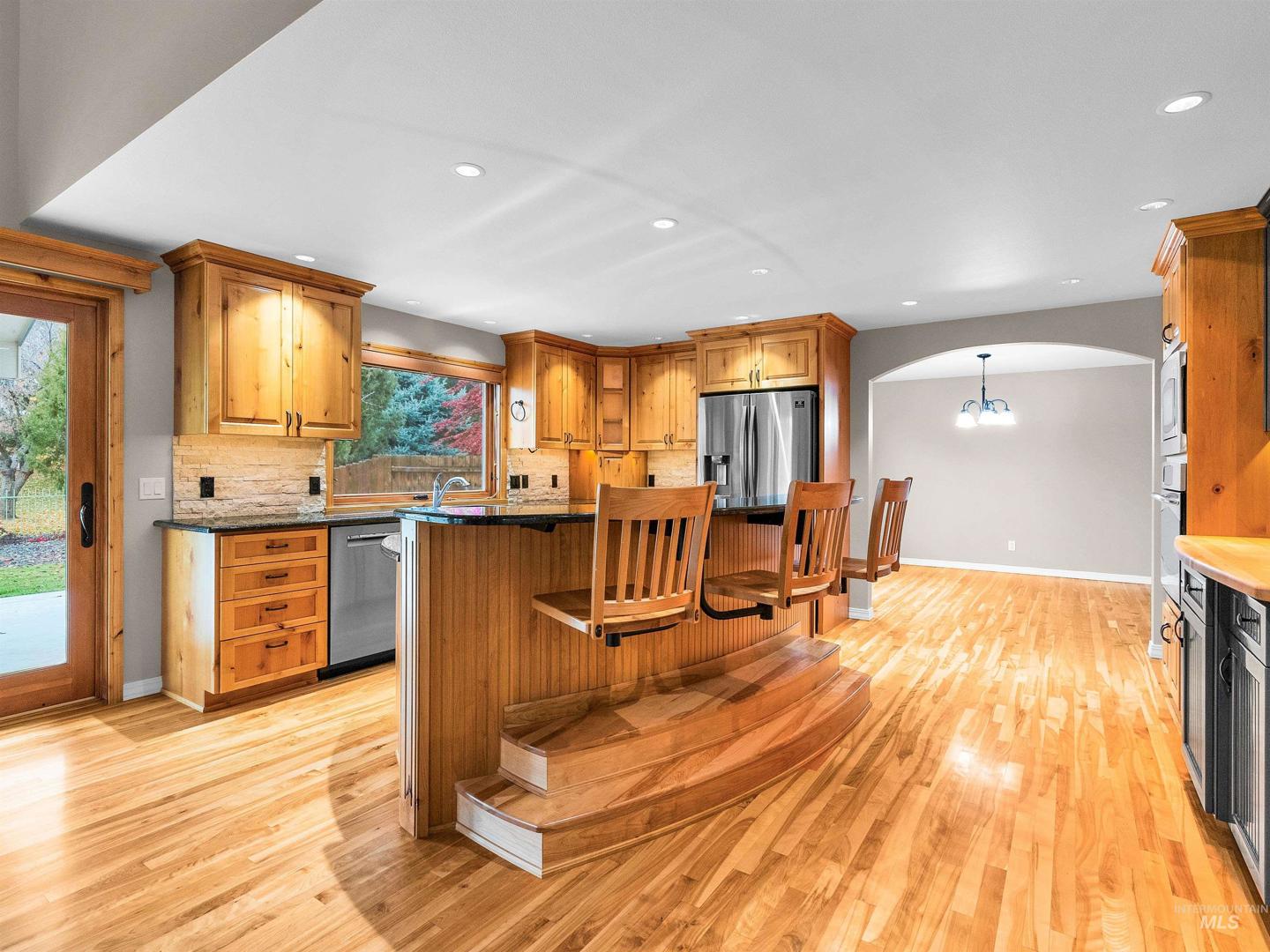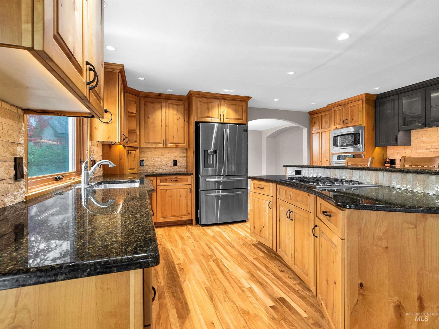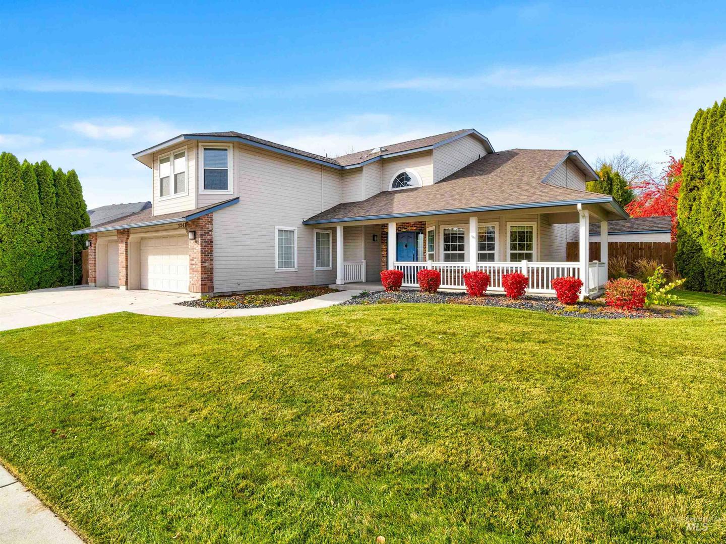 Tucked within the prestigious Legends subdivision—one of Boise’s most established and picturesque neighborhoods—this classic two-story home offers an inviting lifestyle surrounded by mature trees, parks, and walking paths. The bright, open kitchen is the heart of the home, featuring a large island with built-in seating, granite countertops, gas range, and a charming window overlooking the peaceful backyard. A main-level bedroom with full bath provides ideal flexibility for guests or family needs. Upstairs you`ll find a primary retreat with walk-in closet, full tile shower, and dual vanities. Bonus room is the perfect space for a home office, gym, or family flex room. Step outside to a private stamped-concrete patio, perfect for entertaining, morning coffee, or relaxing under the shade. With open fencing backing to community green space, the already generous lot feels even more expansive and connected to nature. A three-car garage with built-in storage offers space for hobbies, gear, and tools. A wrap-around front porch adds to the curb appeal and gives another spot for enjoying the peaceful outdoors. Roof is just 5 years old, offering peace of mind for years ahead. Ideally located near top-rated schools, shopping, dining, and downtown Boise, this home blends timeless comfort with the charm, convenience, and established feel only The Legends can offer.