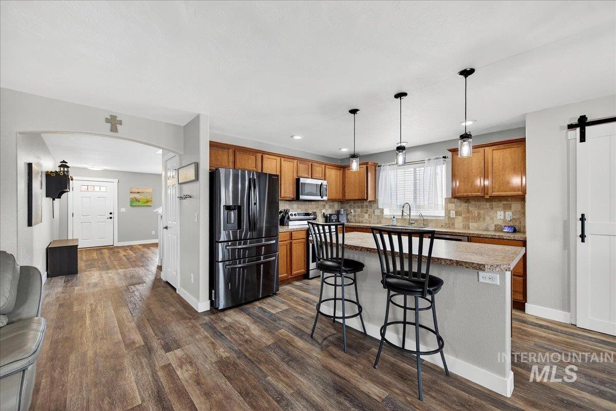 MOVE IN READY — Mature landscaping, Large Yard, full sprinkler system, fully fenced, a concrete back patio, fire pit area, window blinds and a extended 3rd garage bay with a rear overhead door for direct backyard access. Room for RV or trailer parking. Home was Pre-Inspected - Ask for Details. Also, we are offering a $500 HOME WARRANTY for added peace of mind!! Step inside this 5 bedroom, 2.5 bath home and enjoy brand-new luxury laminate flooring, fresh interior paint, and an open, inviting main level perfect for everyday living or entertaining. The spacious primary suite offers a walk-in closet, soaker tub, and separate shower and vanity area. While four additional bedrooms provide flexibility for family, guests, or office space. This oversized lot offers plenty of room for a future shop and ample space for RV/trailer parking beside the home. Included hot tub, chicken coop, and an owned water softener with reverse osmosis system add extra value. Homes with this much usable space and thoughtful upgrades are rare—don’t miss it!