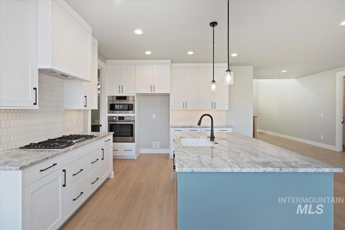 Introducing The Kameron by Whitepeak Homes, a new contemporary craftsman-style home with a light, open floorplan. The main level features an open-concept kitchen and great room with a gas fireplace, seamlessly connecting to a covered rear patio, plus a fantastic office near the vaulted entry. Enjoy a full bath and convenient mudroom downstairs. The kitchen boasts a large quartz island and walk-in pantry. Upstairs, relax in the oversized primary bedroom with a spacious walk-in closet, complemented by an open loft, laundry room, 3 generous bedrooms, and 2 additional bathrooms. Fencing included for a complete package! Don`t settle for just another house, discover your Idaho dream home.