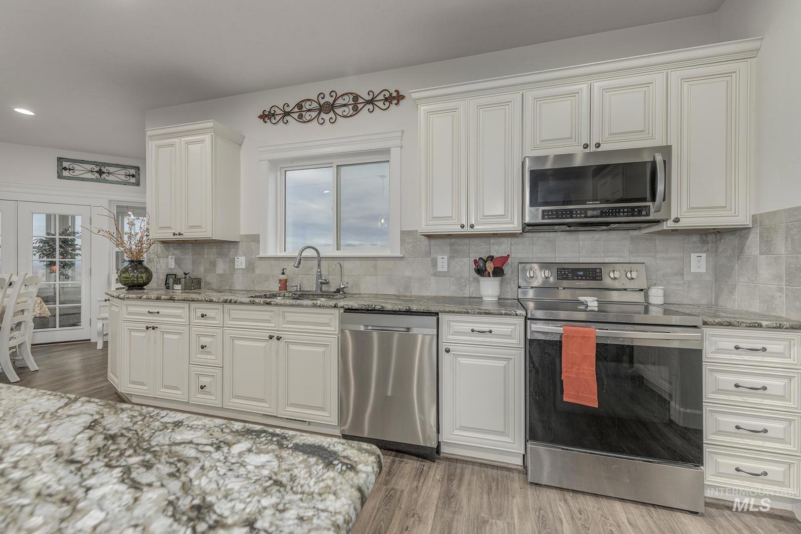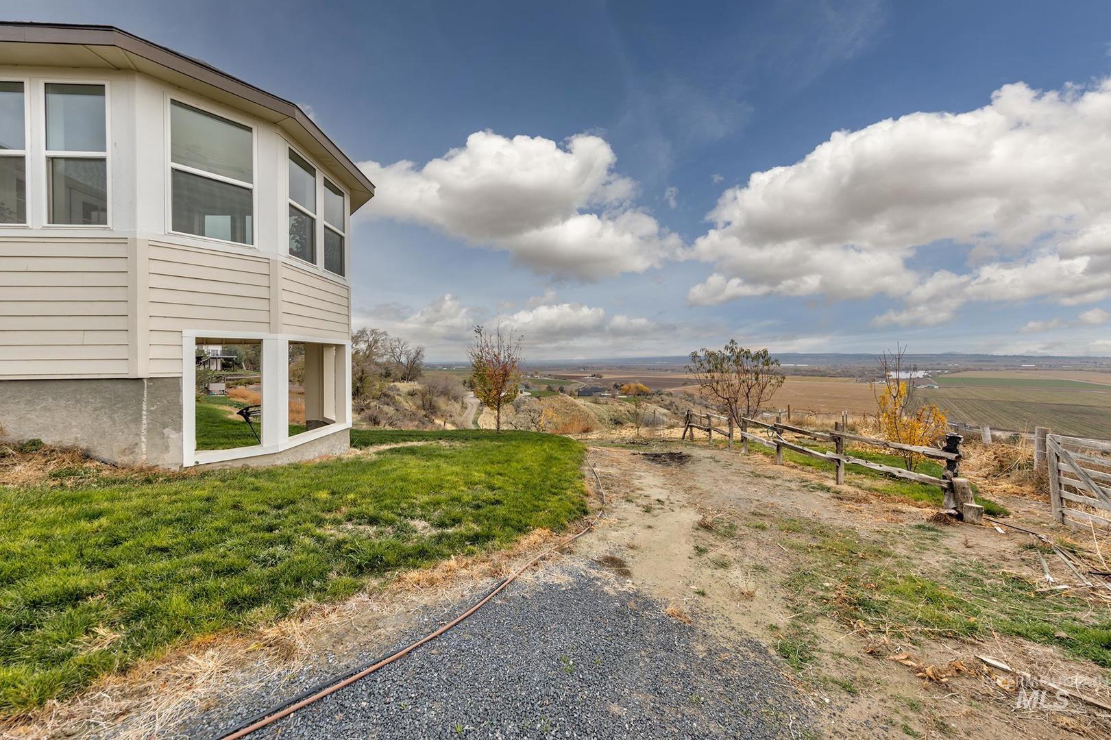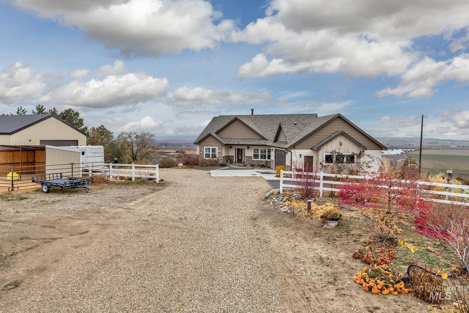 Breathtaking, one-of-a-kind views of the Snake River and surrounding valley define this stunning custom modern farmhouse. With 3,900 sq. ft. of beautifully designed living space, this 4-bedroom, 4-bath home offers an open, inviting floor plan perfect for both everyday living and entertaining. The gourmet kitchen features granite countertops, a large center island, and seamless flow into the great room. Enjoy year-round natural light in the spacious 3-season sunroom, or step out onto the deck to take in panoramic river and valley vistas. Situated on 3.03 irrigated acres, the property is fully fenced and cross-fenced—ideal for animals— and includes a 30` x 40` powered shop plus a 30` x 16` lean-to for additional storage or workspace. Conveniently located near I-84, schools, and shopping, this exceptional property perfectly blends privacy, modern comfort, and rural charm—all with unmatched views.