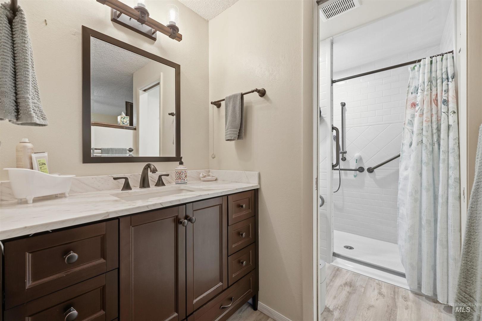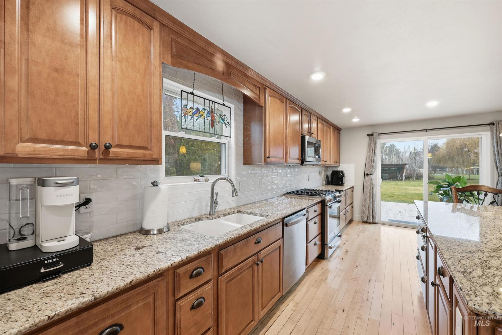 Discover peaceful living in this charming 1,790 sqft home on .88 acres in desirable SW Boise. A welcoming tiled front sunroom with heat & A/C adds year-round comfort & extra living space. Inside, enjoy 3 bedrooms & 2 baths, including a primary suite with a walk-in shower. The updated kitchen features granite counters, country-style drawers, GE Profile appliances, a large pantry, and fresh interior paint throughout. Outside, the fully fenced lot offers ample RV parking, a 12x8 storage shed, 24x12 loafing shed, full sprinklers, & fruit trees, with plenty of room left to build your dream shop. Tucked on a quiet dead-end street, the home delivers a private, rural feel while staying just minutes from shopping & essential services. A rare blend of space, comfort, & convenience in a prime Boise location.