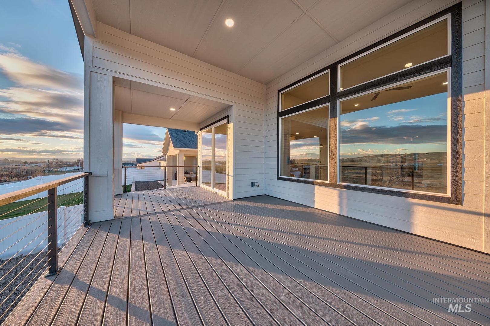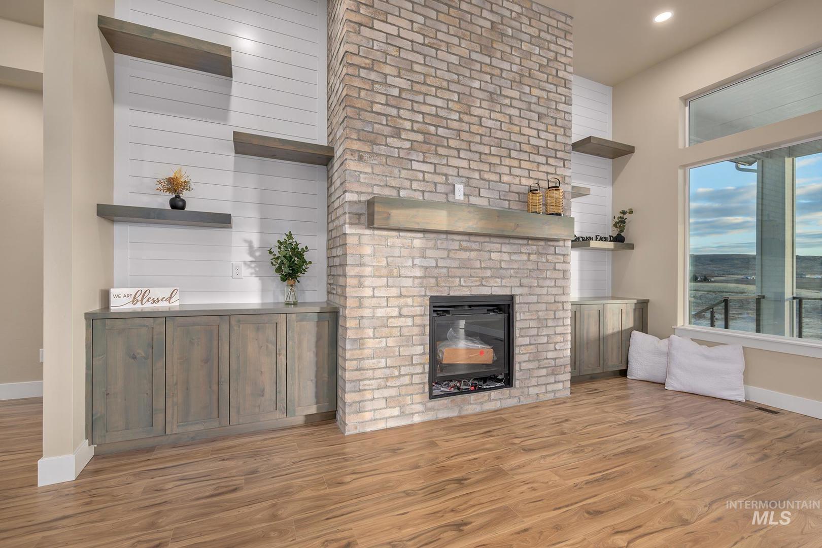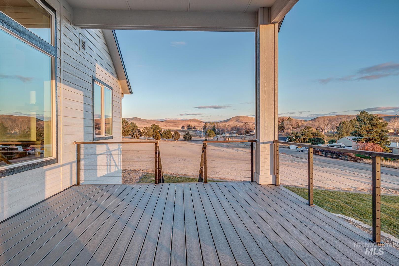 Gorgeous view and gorgeous home! The abundance of natural light showcases the flow of the home with attention given to detail. As you walk in your eyes will go to the extended view, but don`t miss the trey ceiling and wainscoted walls. Such a good feel. Then onto the waterfall quartz countertop, stained cabinets (with undercabinet lighting), LVP flooring, large tile backsplash, and a brick fireplace, shiplap wall, and floating shelves. Dining room with glass door opening to deck. All closets have built ins (doors cs) and primary bathroom has tiled walk in shower with glass doors. Utility with sink, bench, & extra storage. Fully landscaped and 2 - 6` gates for RV Parking.