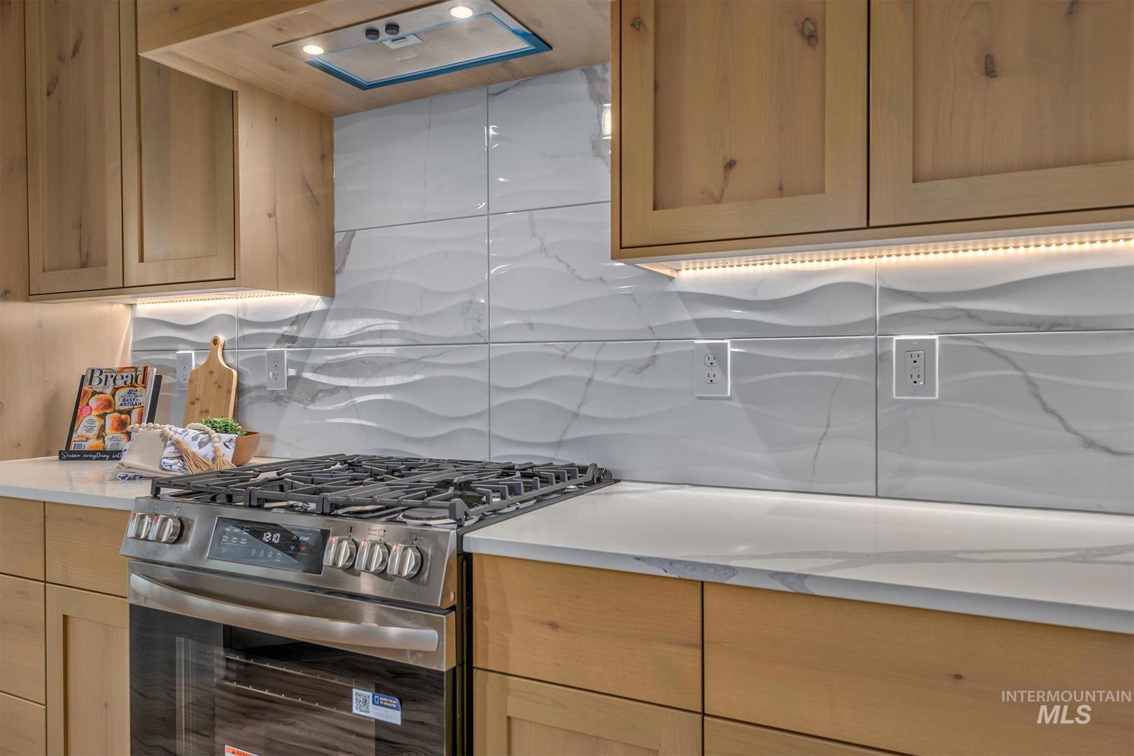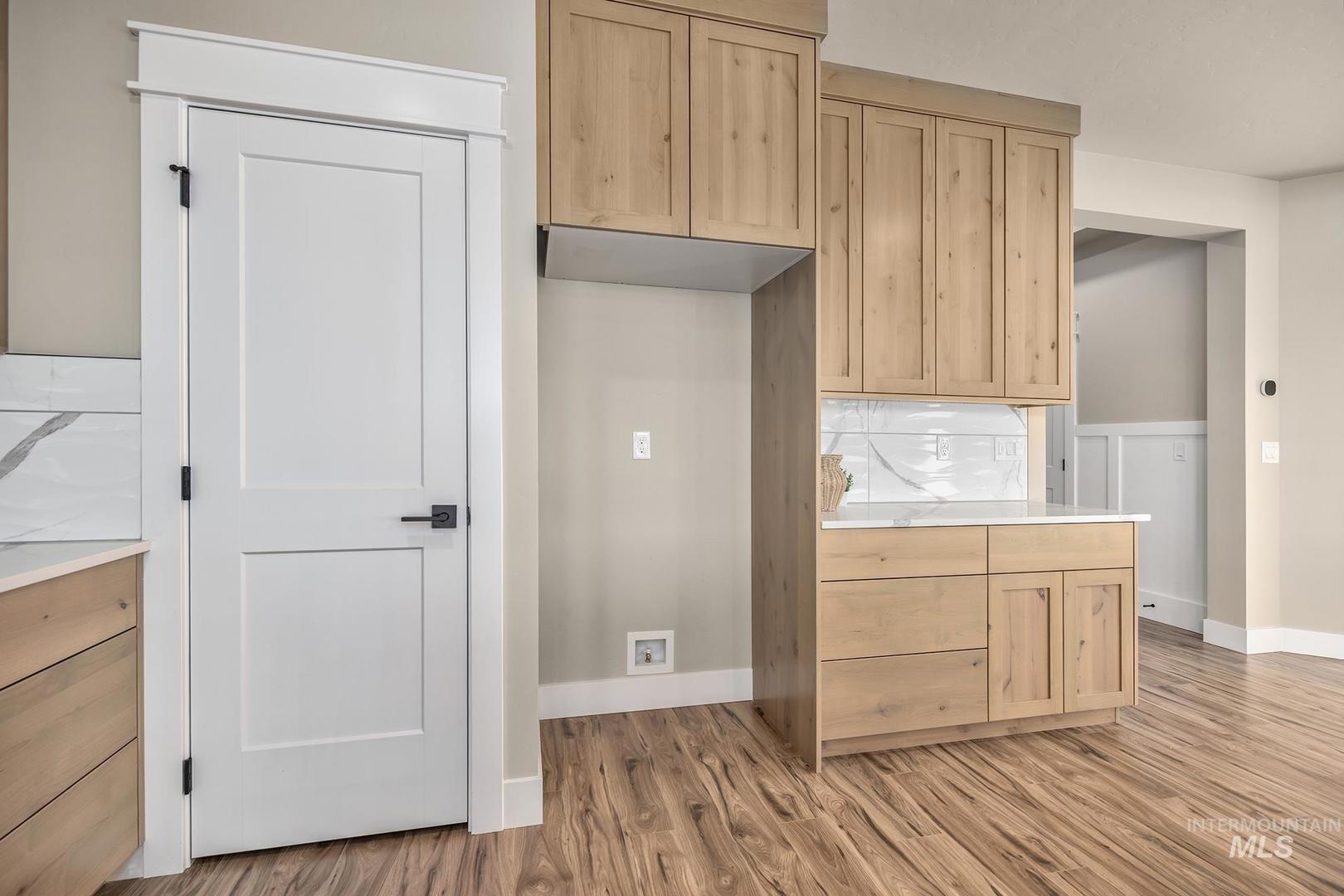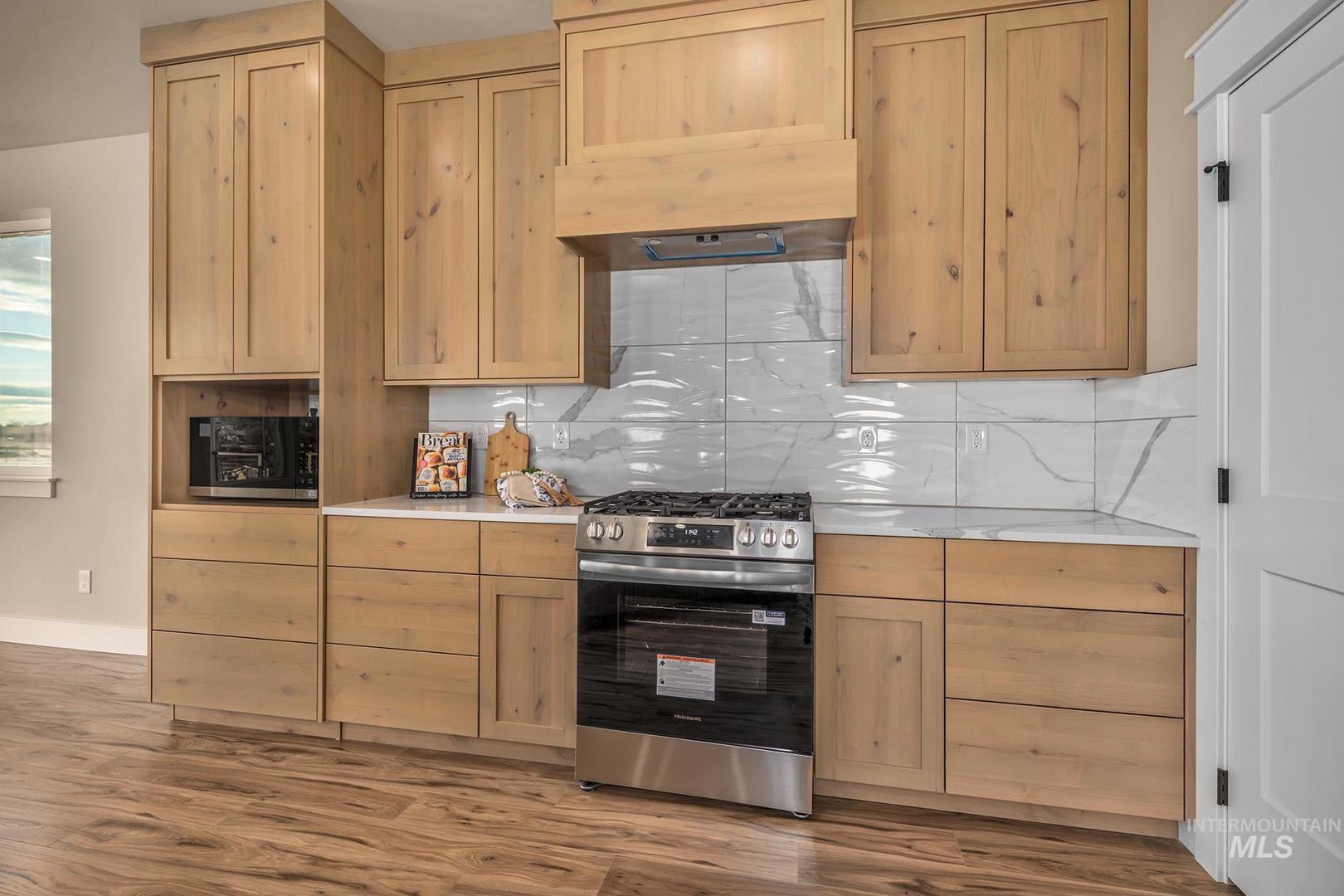 Gorgeous view and gorgeous home! The abundance of natural light showcases the flow of the home with attention given to detail. As you walk in your eyes will go to the extended view, but don`t miss the trey ceiling and wainscoted walls. Such a good feel. Then onto the waterfall quartz countertop, stained cabinets (with undercabinet lighting), LVP flooring, large tile backsplash, and a brick fireplace, shiplap wall, and floating shelves. Dining room with glass door opening to deck. All closets have built ins (doors cs) and primary bathroom has tiled walk in shower with glass doors. Utility with sink, bench, & extra storage. Fully landscaped and 2 - 6` gates for RV Parking.