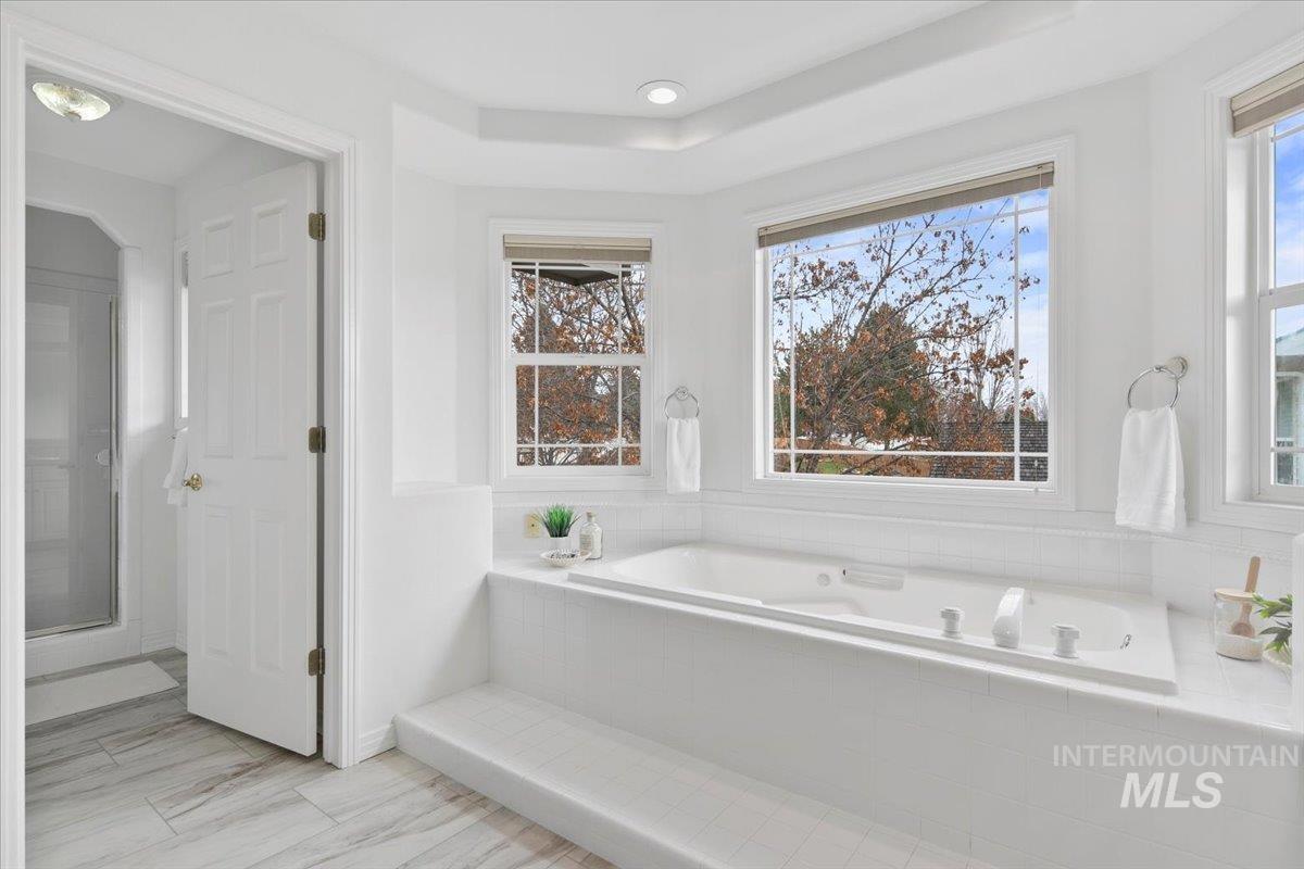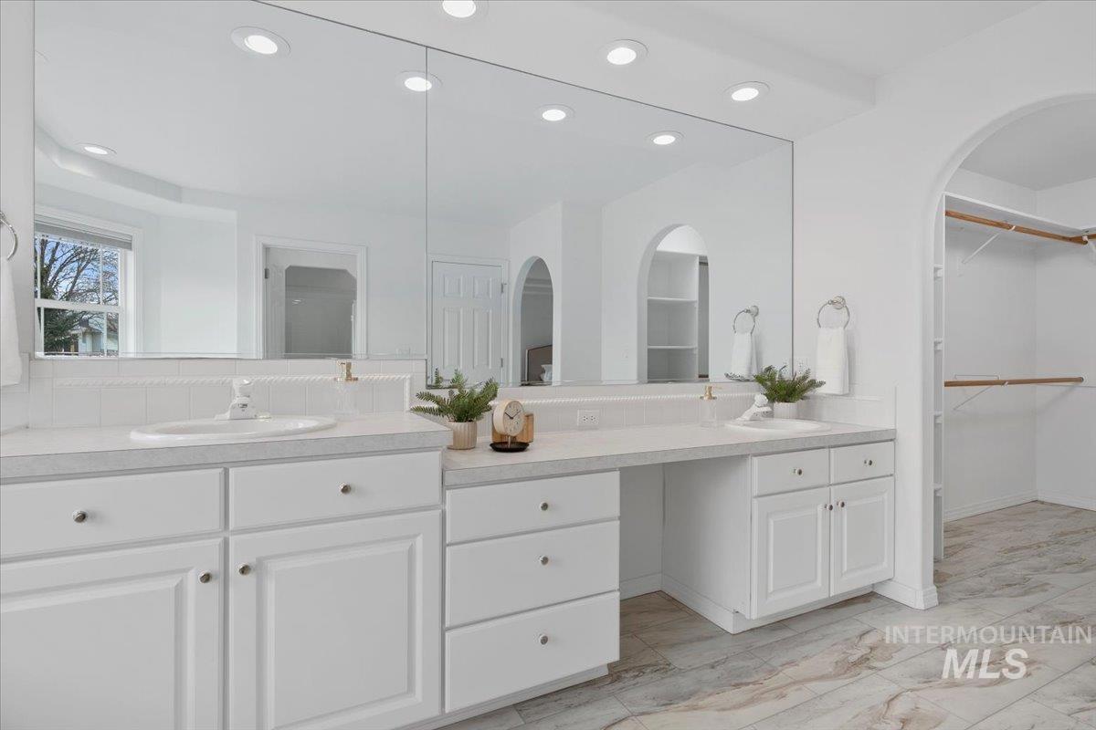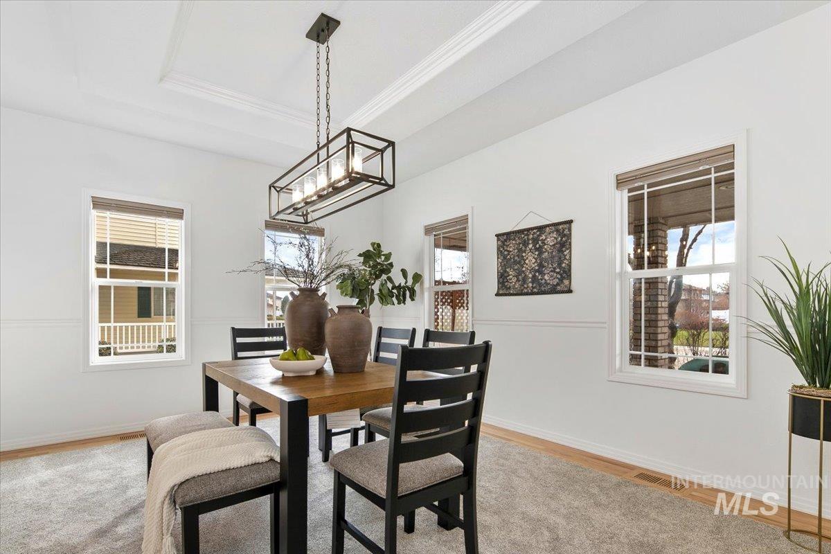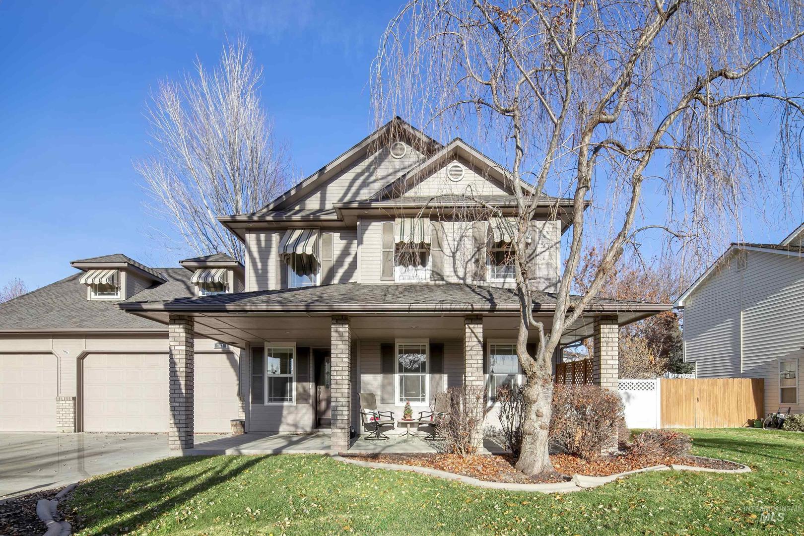 Located in prestigious Meridian Greens, this 3-4 bedroom, 2.5 bath sits on a spacious .33 acre lot. Bonus room could be a 4th bedroom. The dramatic entry with 18-foot ceilings and hardwood floors sets the tone for the rest of the home. The formal dining room is bright and elegant with coffered ceilings and lots of natural light, could easily serve as a home office. The well-appointed kitchen with extensive counter space, beautiful solid oak cabinets, newly refinished hardwood flooring, and built-in wall microwave/oven is a chef`s delight. The kitchen opens to the family room, informal dining nook, and back patio for easy entertaining. The primary ensuite features a soaking tub, walk-in shower, cozy gas fireplace, dual vanities, and a generous walk-in closet. The spacious secondary bedrooms share a convenient Jack-and-Jill bath. An oversized bonus room provides excellent flex space. This home features new carpet, new paint, and new LVT flooring. Kinetico water conditioner. The roof, exterior paint, hot water heater, HVAC have been updated! This home has been professionally cleaned and is move-in ready.