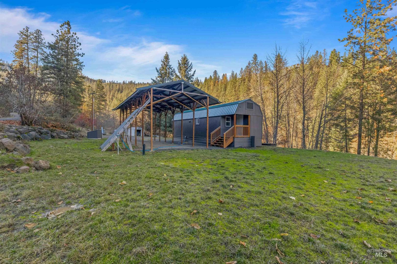 Your ideal North Idaho recreational getaway awaits on 8.2 wooded acres in Peck, Idaho, bordering Bear Creek. This property is fully developed with power, septic and a private well already in place—ready for year-round use. A 12x40 portable cabin offers a comfortable place to stay while you fish, hunt, or build your future home. Additional improvements include a 24x26 shop, 14x40 RV carport and full RV hookups—perfect for storing boats, ATVs, and all your outdoor gear. Easy access and low elevation make it a great basecamp for all seasons. A private hiking trail takes you straight to Bear Creek, with abundant wildlife and endless exploring. The perfect spot for outdoor enthusiasts, fishermen and anyone seeking a peaceful Idaho retreat.