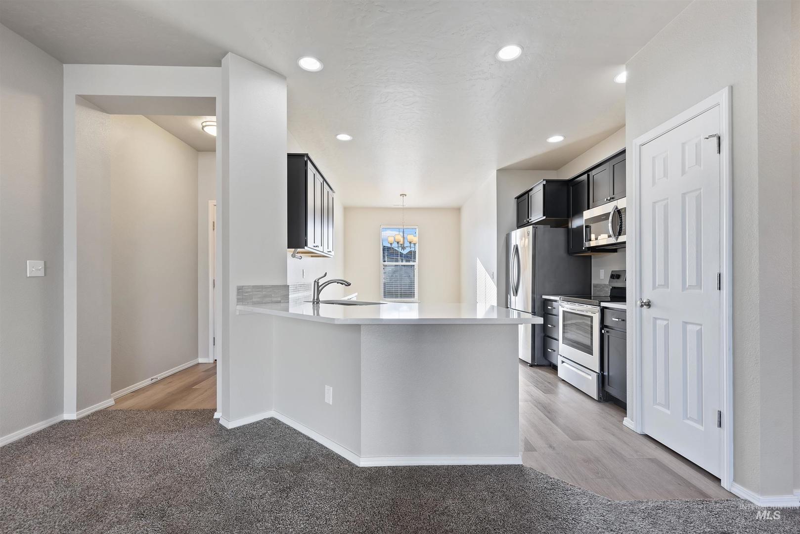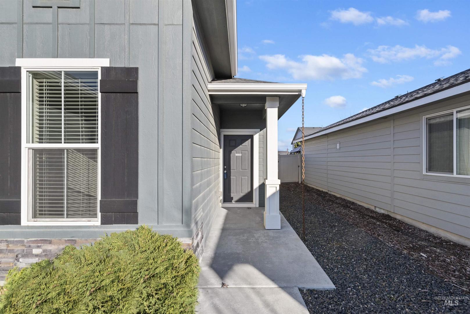 Experience modern single-level living in coveted Crimson Point, minutes from Downtown Kuna, Indian Creek, Kuna Greenbelt, local wineries, BMX track/skate park, & easy access to I-84. Move-in-ready, this sparkling home features a smart split bedroom floor plan that maximizes privacy and functionality. Soaring vaulted ceilings highlight the open concept living space, where the kitchen shines with quartz countertops, stainless steel appliances and pantry. Brand new, fresh interior paint throughout creates a crisp, welcoming atmosphere perfect for making your own. The thoughtful split design places the primary suite separate from the secondary bedrooms—ideal for family living or guests. Relish in the spacious primary suite with walk-in closet and en suite bathroom. Outside, enjoy spacious side yard with potential rv/boat parking, complete landscaping with sprinkler system, full fencing, and window coverings included. Located in highly desirable Crimson Point with easy access to downtown Kuna`s amenities, this home offers the perfect blend of convenience and comfort. Don`t miss this opportunity!
