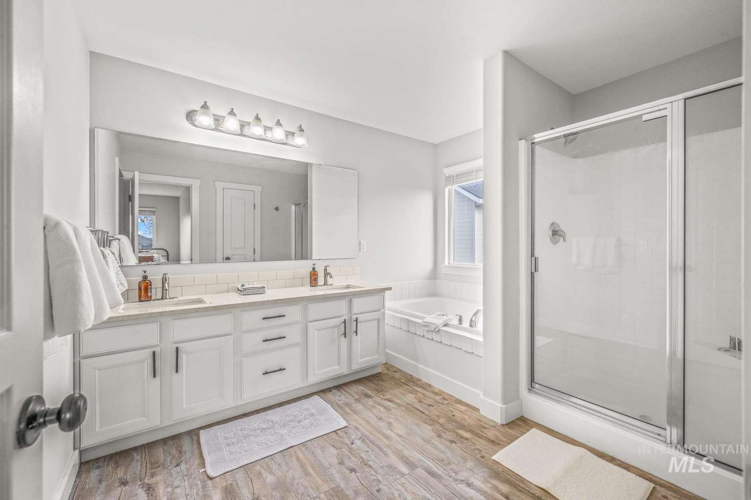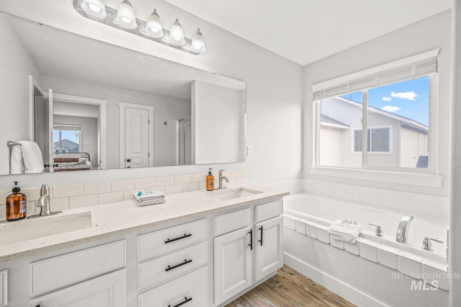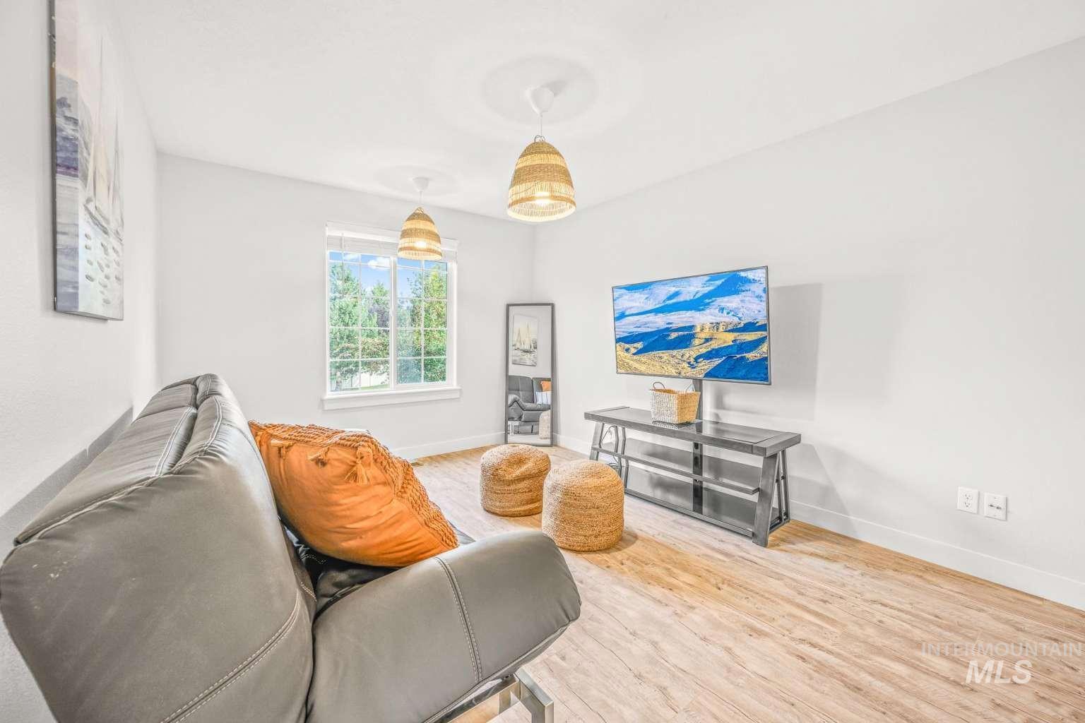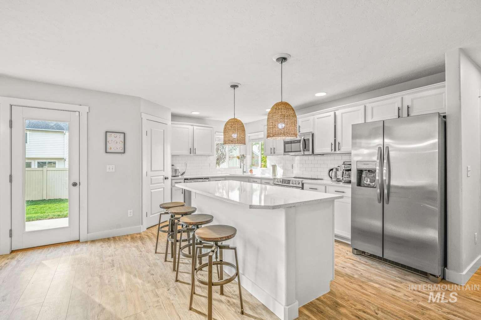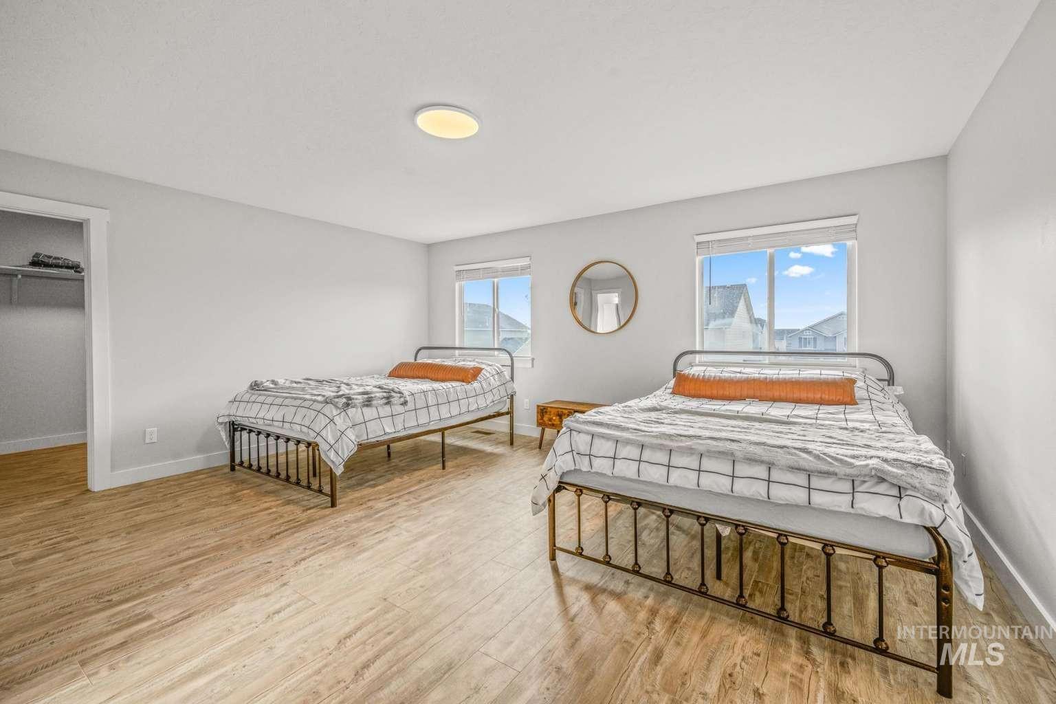 Seller offering $8,000 towards buyers closing costs and or pre-paids! Recently renovated farm style home with 6 bedrooms, 2.5 bath! Bedroom and half bath on mail floor. Fresh interior and exterior paint, quartz countertops, newer appliances. Brand new vinyl flooring on both floors, updated plumbing and lighting! Gas fire place, huge walk-in closet in master bedroom, soak tub and shower. Walk in closets in other rooms. Huge 3 car garage, large fully fenced yard with private hot tun and fire pit! Outdoor shed in back yard. Spacious for a large group, cozy, & located within 20 minutes from downtown Boise & airport! Home was previously used as short term rental and has 6 bedrooms w/ 10beds, sleeper & 2 sofas. Has 2 baby cribs. LED tv`s throughout home! Game room includes a pool & hockey table, tennis table, foosball table! Kitchen is fully stocked with pots & pans. Community pool . Washer/dryer in laundry room. Owner willing to sell home with entire furniture and appliances. This home is a must see!