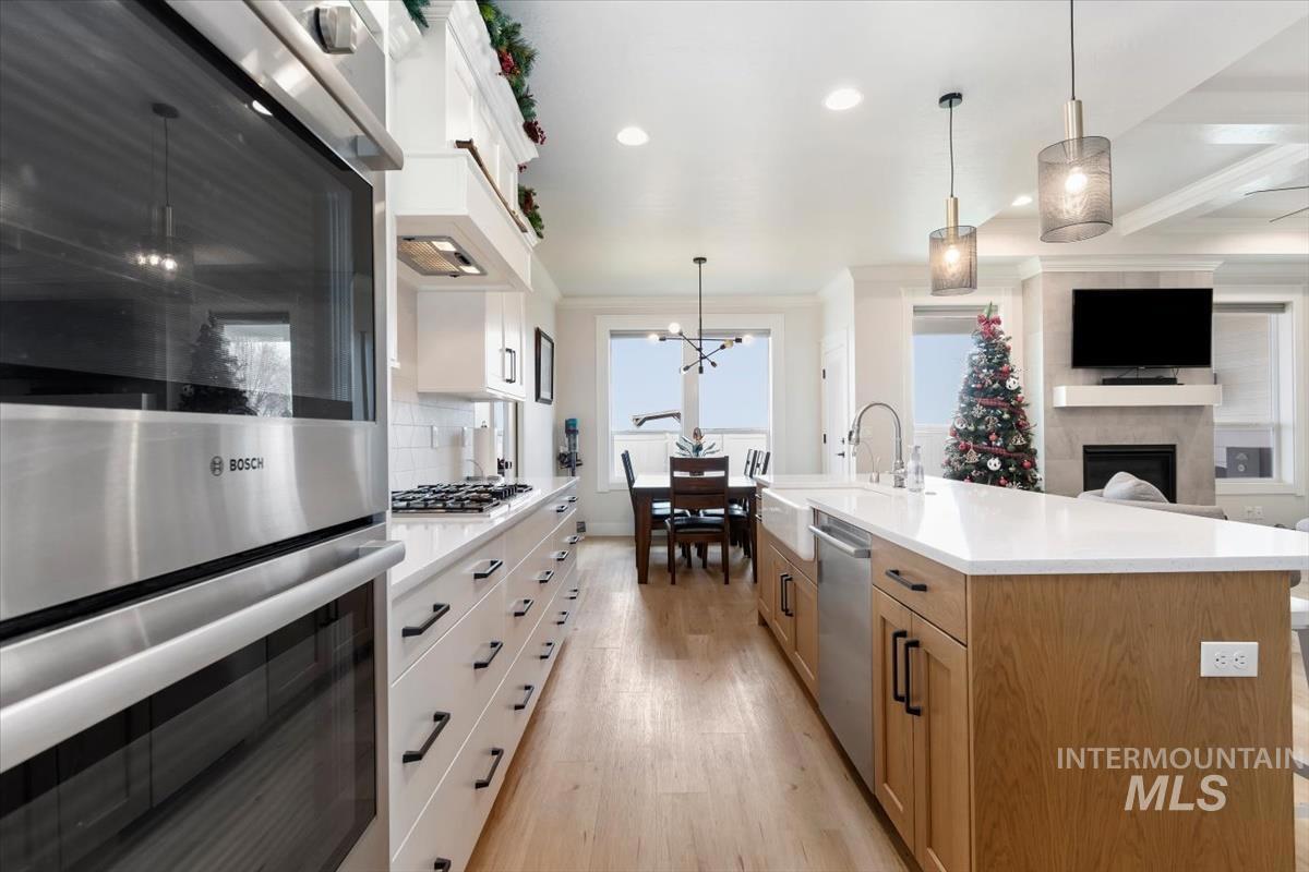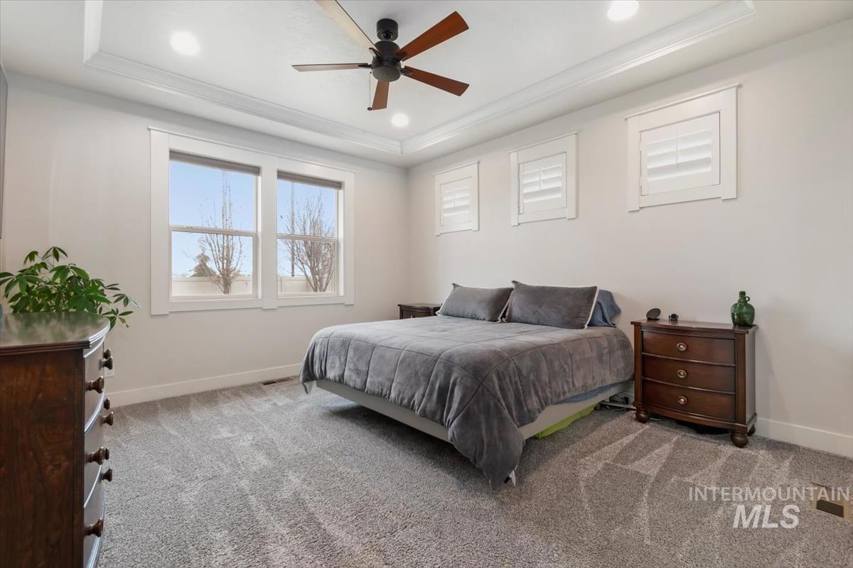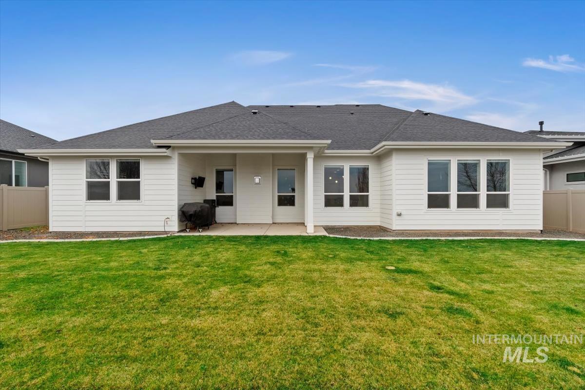 Less than five years old and built by Todd Campbell Custom Homes, this single-level home stands out as one of the last fully customized TCCH builds in the community. It sits on a private lot with no rear neighbors and includes a 38-ft, well-insulated RV garage with a 14-ft door, perfect for RVs, boats, or extra storage. Inside, the floor plan feels open, bright, and upgraded throughout. The den was extended to create a spacious, comfortable bonus space with a pocket door for separation. The primary bathroom was also expanded to feature a beautiful stand-alone soaking tub, giving the suite a spa-like feel. The kitchen is both stylish and functional with a large island, breakfast bar, double ovens, pantry, and a roomy dining area. Quartz counters run through the kitchen and bathrooms for a clean, modern finish. Enjoy peaceful mornings on the east-facing covered patio with views of the mountains. The home is located in the prestigious Lugarno Terra community, offering access to a pool, clubhouse, and well-maintained common areas. Notable upgrades include premium carpet with thick pad, automatic hot water dispenser, indoor Christmas light switch, dual-control rain-head and spray/slider in the primary shower, custom curbing, built-in garage shelving, and more.