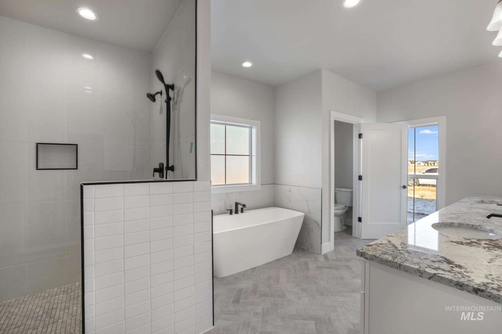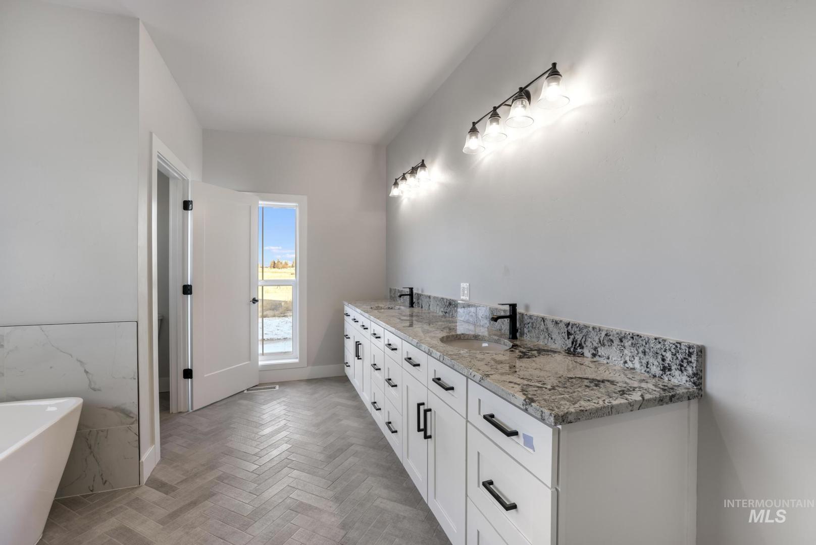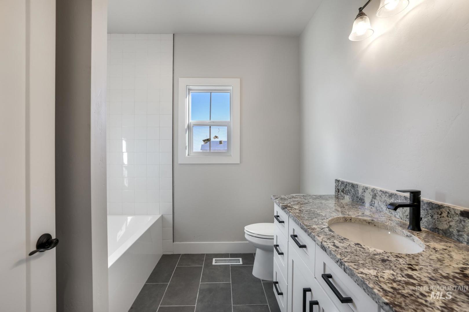 This stunning new construction offers the perfect blend of comfort and style, set on just over an acre east of Burley with beautiful views of Mt. Harrison. With 4 bedrooms and 3.5 bathrooms across 2,614 sq ft, the thoughtful layout includes a main-level primary suite with soaking tub, walk-in shower, and dual vanities. The kitchen features granite countertops, a full backsplash, and plenty of space for cooking and entertaining, while the cozy living room fireplace creates a welcoming centerpiece. Upstairs, one bedroom includes its own private bath - ideal for guests or family. An oversized laundry room and covered back patio add convenience and charm, making outdoor dining or relaxing easy. Located just minutes from the river yet close to town, this home combines peaceful living with everyday practicality.