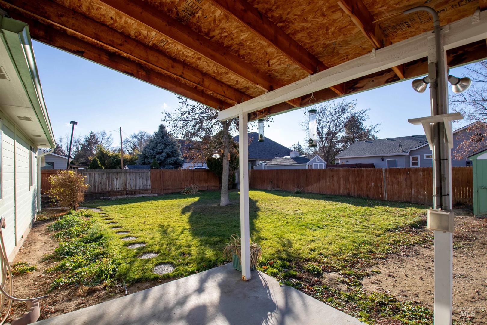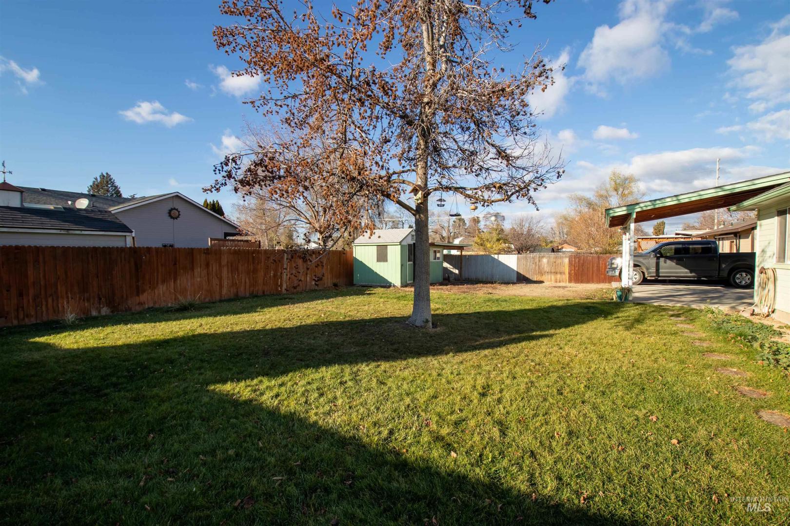 Welcome to this charming single-level home on the Boise Bench! Featuring 3 bedrooms, 2 bathrooms, and over 1,300 sq ft of living space, this property offers a bright open floor plan with hardwood floors, a cozy gas fireplace, and a spacious kitchen with breakfast bar. The primary suite includes a private bath. Situated on a large 0.21-acre lot, the backyard provides ample room for entertaining, gardening, or play, and includes a nice workshop for projects or extra storage. An attached 2-car garage adds convenience. Located in the Cleveland Park Subdivision, this home is minutes from downtown Boise, Boise State University, the airport, and shopping on Vista Avenue. A perfect blend of comfort, location, and value!