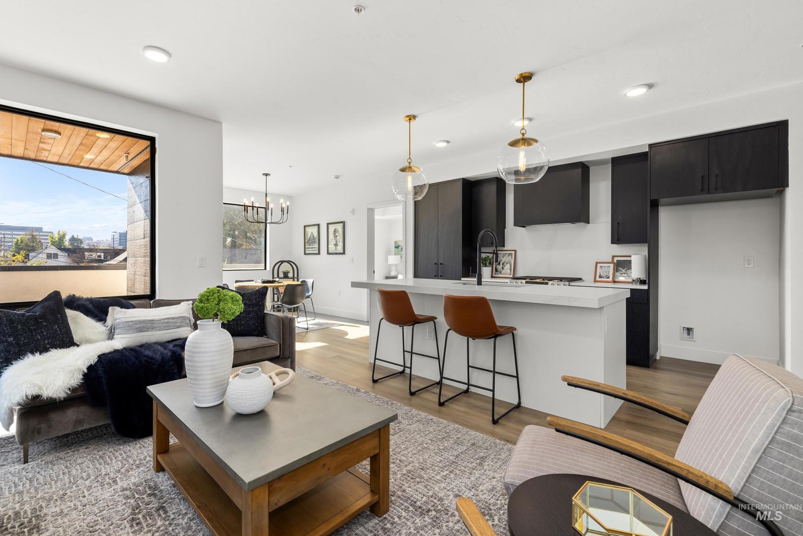 Unit 206 at The Travis Condominiums features the best floorplan in the building, complete with an extended east-facing patio and the LAST remaining indoor parking spot. This luxury condo is part of a boutique mid-rise development of just 19 architecturally distinctive residences on the edge of downtown Boise, showcasing sweeping views of the Treasure Valley skyline. Designed with lifestyle in mind, The Travis blends modern design, premium finishes, and urban convenience. Unit 206 stands out with a large covered porch, direct patio access, and spacious interiors—don’t miss your chance to own one of the most desirable condos in the building.