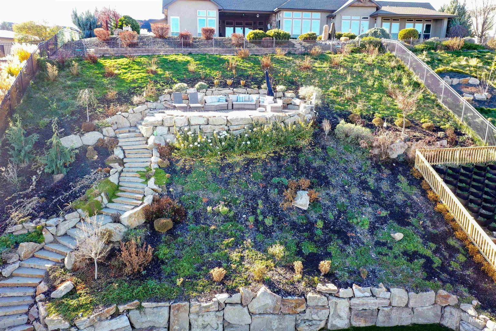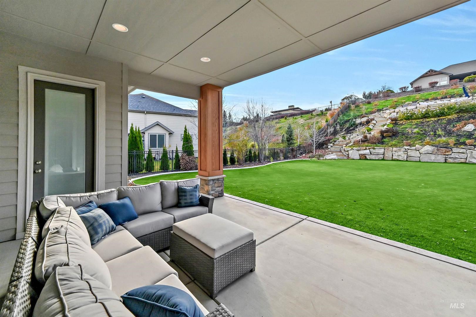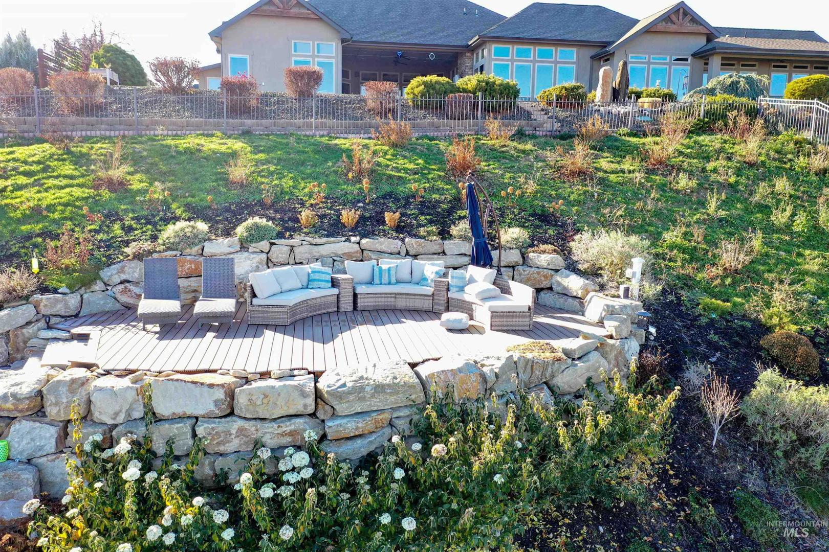 An amazing opportunity to live in sought after Sky Mesa. This home has over 3000 sq ft on a single level with bonus room, oversized three plus car garage, and a half acre lot with room for soccer, gardening, and patio living overlooking the Boise foothills. The home and grounds are special and unique to the neighborhood, something to see. Landscaped to take advantage of the views, walk the beautiful stone stairs to a resort-like patio setting overlooking the valley and Boise front. The patio is plumbed with electric and water for evenings by the fire and enjoying the beautiful valley. Interior offers a great room concept, amazing kitchen and pantry, soaring ceilings, built-in TV cabinets and fireplace, office/den, separate laundry and mud rooms, and split living bedroom plan. This home has it all and then some. Minutes to Discovery Park and walking distance to schools, restaurants, and shopping.
