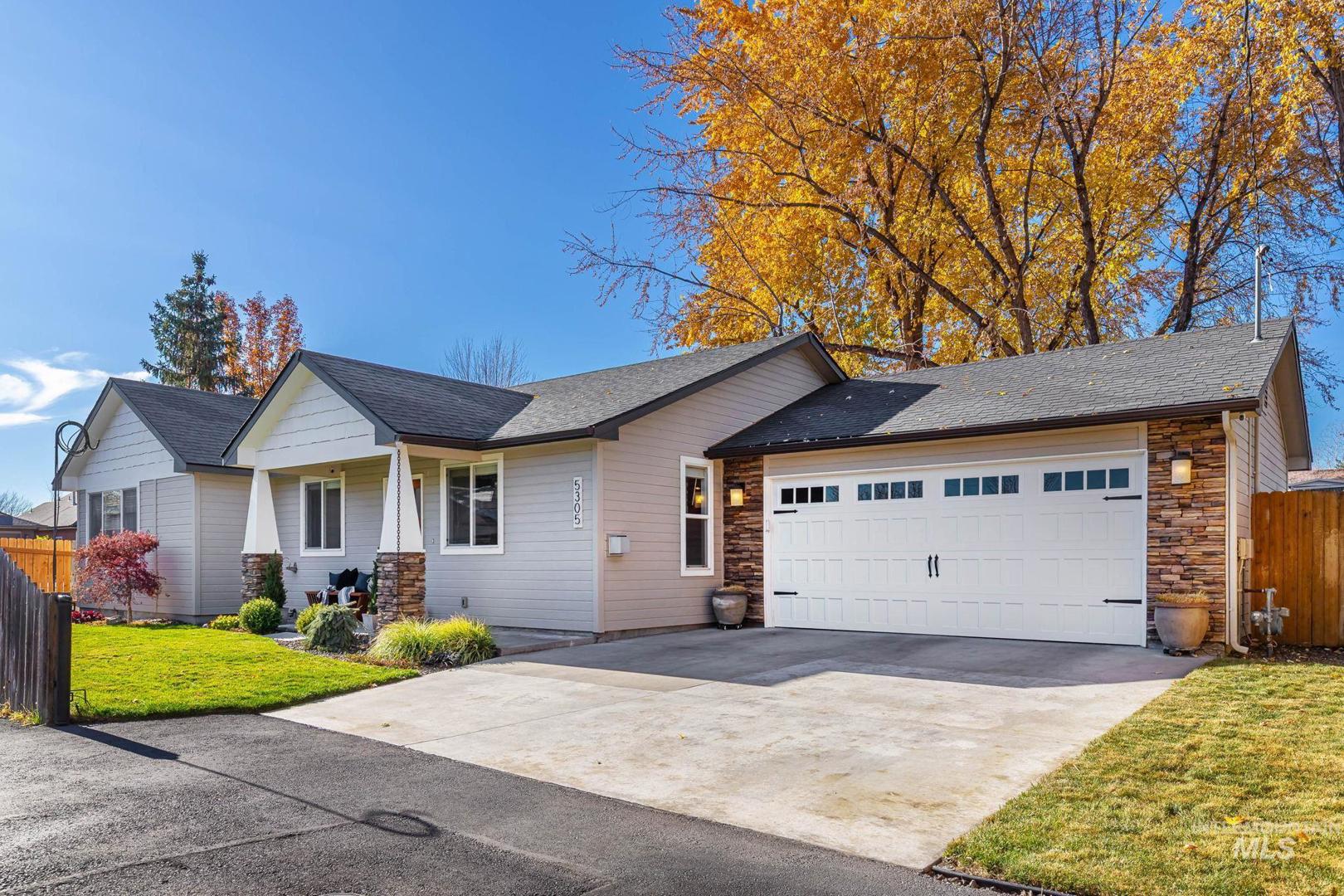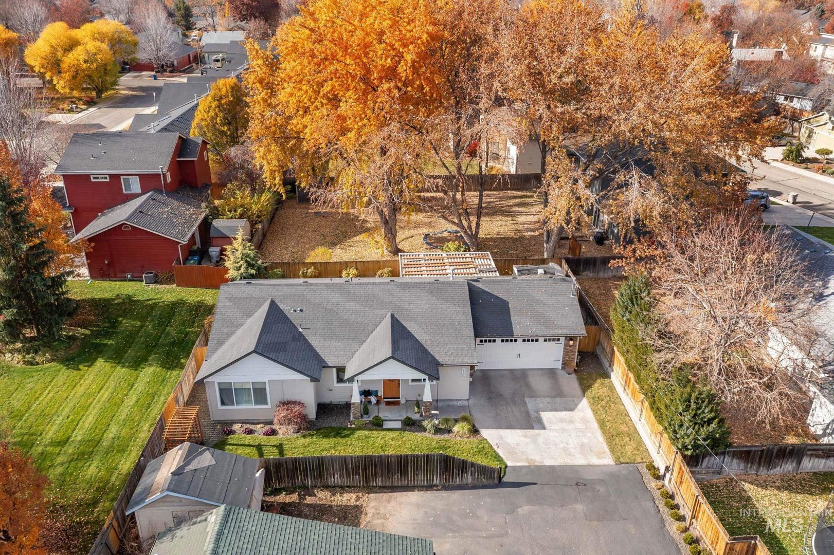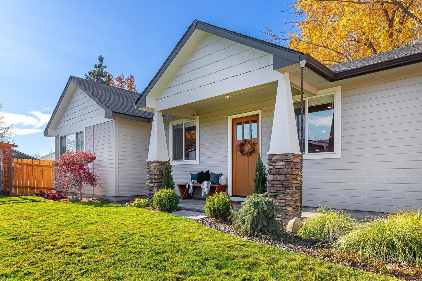 Meticulously maintained and filled with natural light, this inviting single-level home, updated in 2018, sits peacefully at the back of a quiet flag lot. Enjoy warm hickory wood floors, a cozy gas fireplace, and a kitchen elevated with large quartz countertops. Each of the three bedrooms features a walk-in closet. The primary suite offers a true luxury experience with heated tile floors, a floor-to-ceiling tiled shower, and a soothing rain shower. Upgrades include new HVAC (2023), newer carpet/pad, and new exterior paint (2018). The yard features a covered patio and over $20k+ in professional landscaping. Centrally located in the sought-after Pierce Park NW Boise neighborhood. Enjoy walking to the Pierce Park Golf Course, a short .25 mi walk to Castle Hills Park (new playground and dog park), and just 0.75 mi to Ridge to Rivers trailhead for hiking and biking, and a quick 1.5 mile bike ride to the beautiful Boise River Greenbelt. Just minutes from the new 50-acre park at Expo Idaho (opens late summer 2026). Only 6 miles from Downtown Boise, walking distance to restaurants, shopping, and schools.