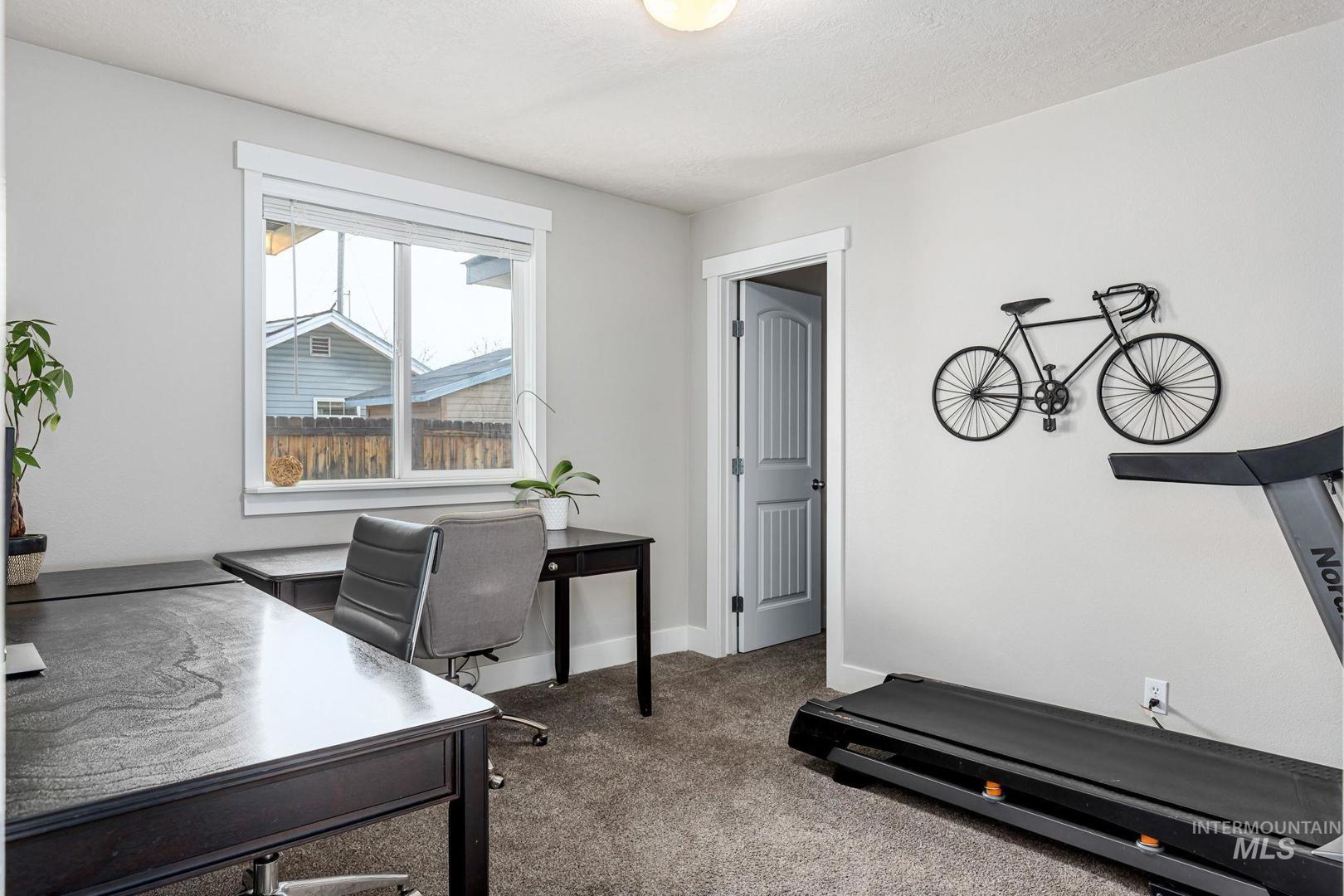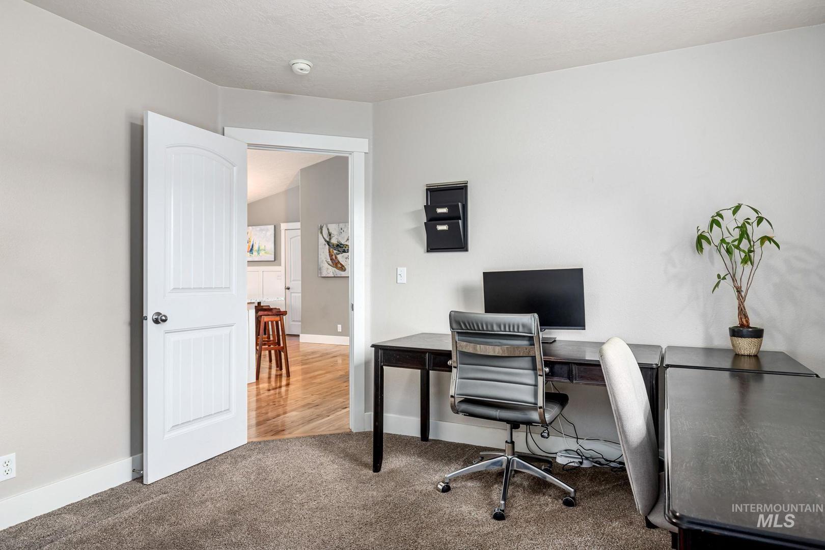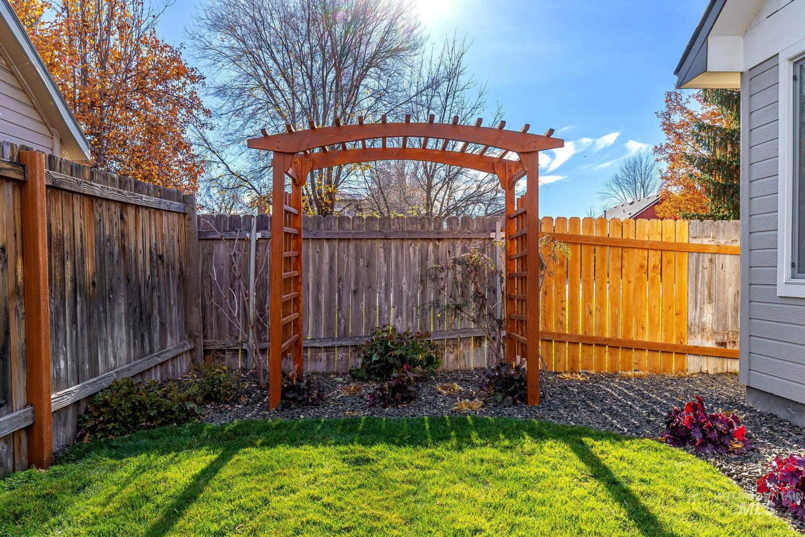 Meticulously maintained and filled with natural light, this inviting single-level home, updated in 2018, sits peacefully at the back of a quiet flag lot. Enjoy warm hickory wood floors, a cozy gas fireplace, and a kitchen elevated with large quartz countertops. Each of the three bedrooms features a walk-in closet. The primary suite offers a true luxury experience with heated tile floors, a floor-to-ceiling tiled shower, and a soothing rain shower. Upgrades include new HVAC (2023), newer carpet/pad, and new exterior paint (2018). The yard features a covered patio and over $20k+ in professional landscaping. Centrally located in the sought-after Pierce Park NW Boise neighborhood. Enjoy walking to the Pierce Park Golf Course, a short .25 mi walk to Castle Hills Park (new playground and dog park), and just 0.75 mi to Ridge to Rivers trailhead for hiking and biking, and a quick 1.5 mile bike ride to the beautiful Boise River Greenbelt. Just minutes from the new 50-acre park at Expo Idaho (opens late summer 2026). Only 6 miles from Downtown Boise, walking distance to restaurants, shopping, and schools.