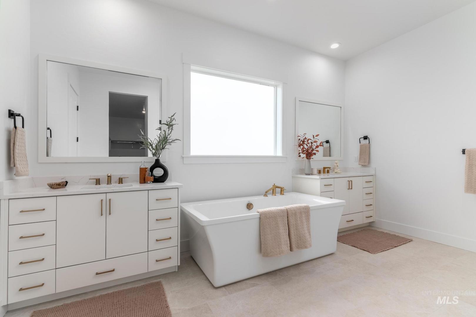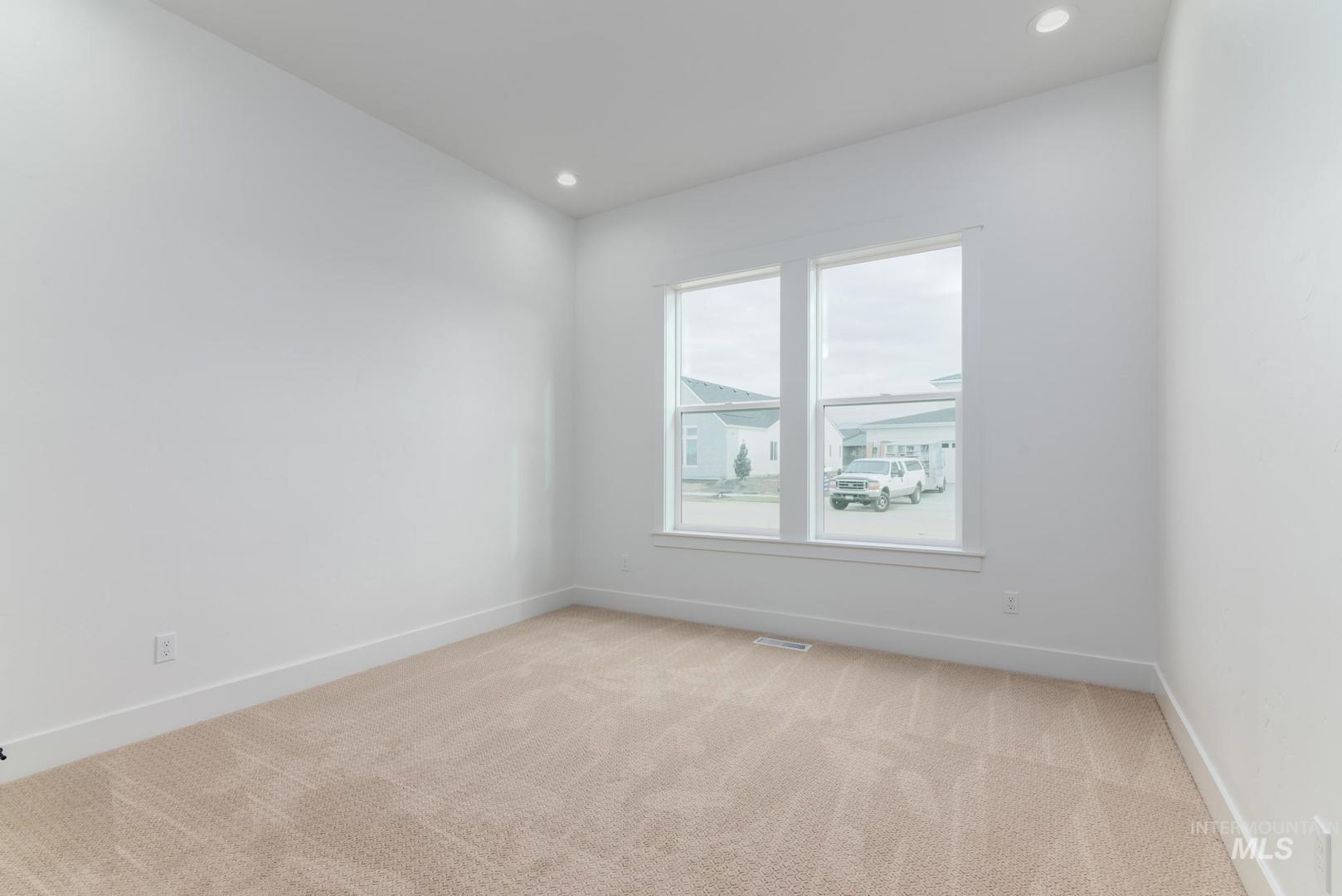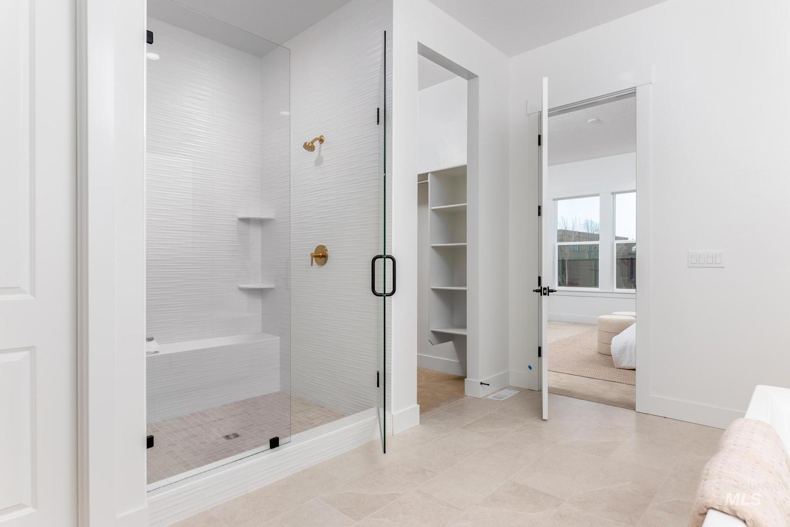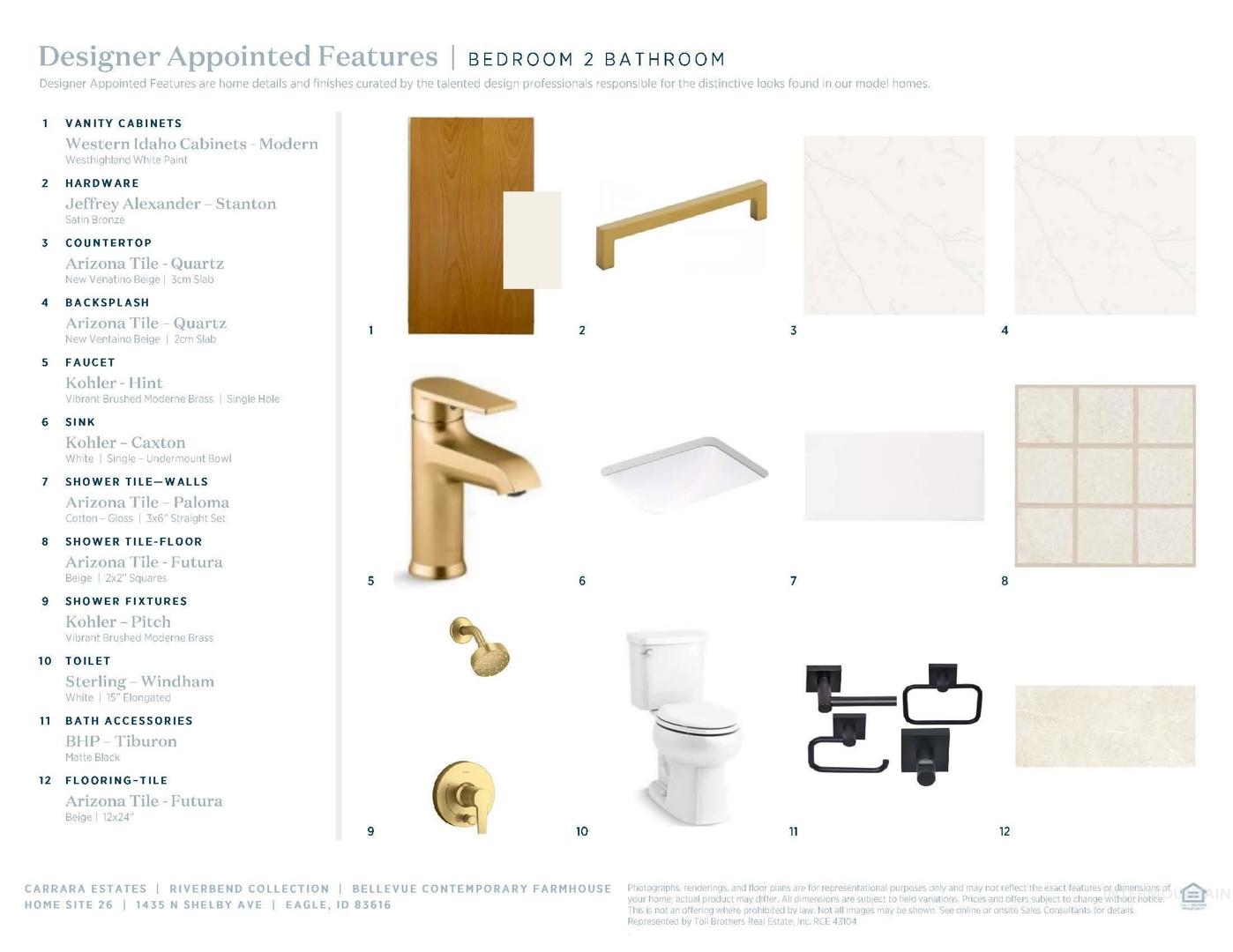 The Bellevue Contemporary Farmhouse blends comfort with elegant design in a spacious single-level floor plan. From the foyer, an open-floor layout connects the great room with cozy fireplace, casual dining area, and kitchen with a center island and walk-in pantry. Just beyond through a multi panel glass door, a generous covered patio offers effortless outdoor living. The primary bedroom suite features a spacious walk-in closet and a spa-inspired bath with dual vanities, a large soaking tub, a shower with seat, and a private water closet. Three secondary bedrooms—one with a private bath and two with a shared hall bath—offer comfort and privacy for family or guests. A flex room and rear workspace add versatility, while the laundry area, powder room, everyday entry, and smart storage enhance daily convenience. Toll Brothers homesite #26. BTVAI