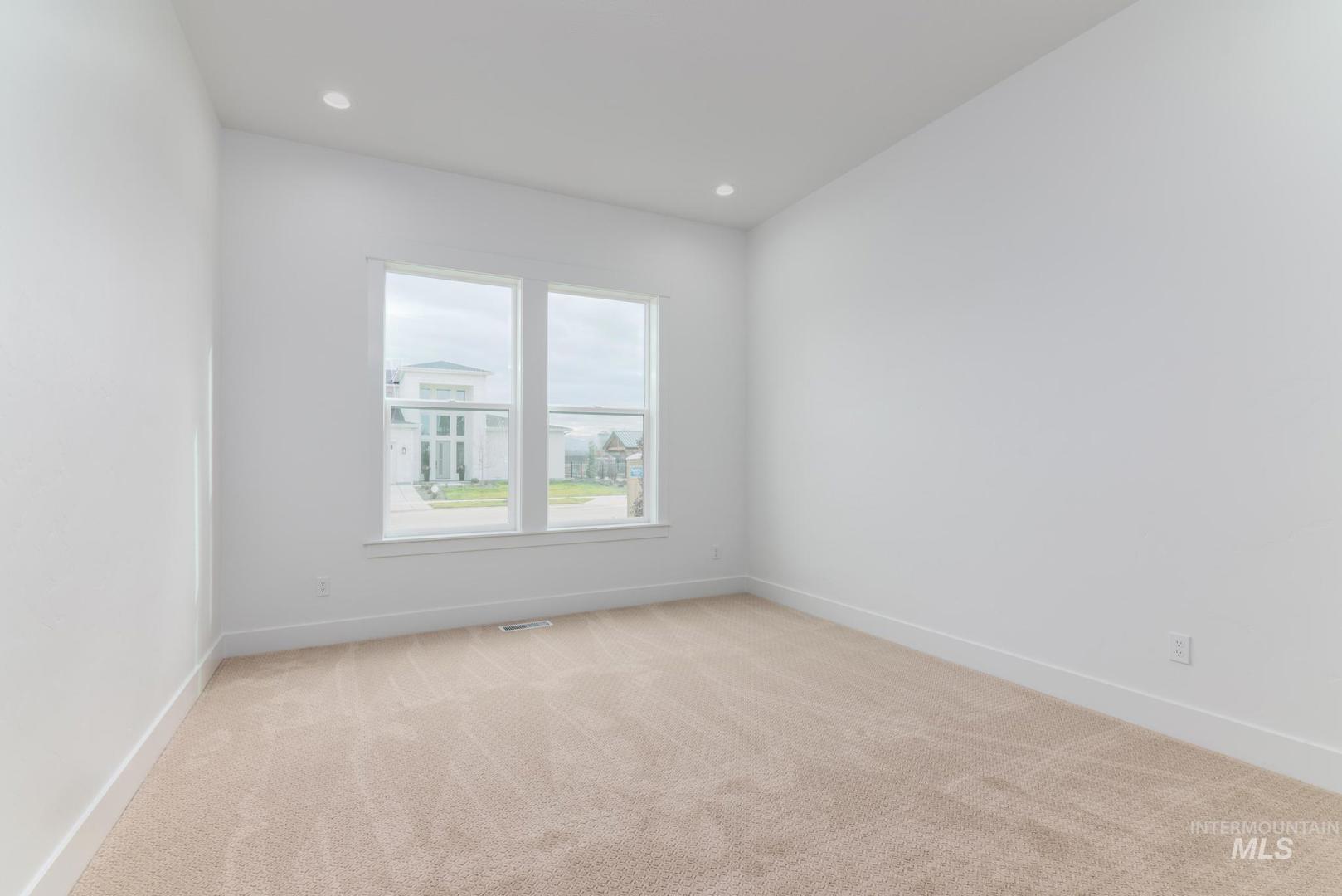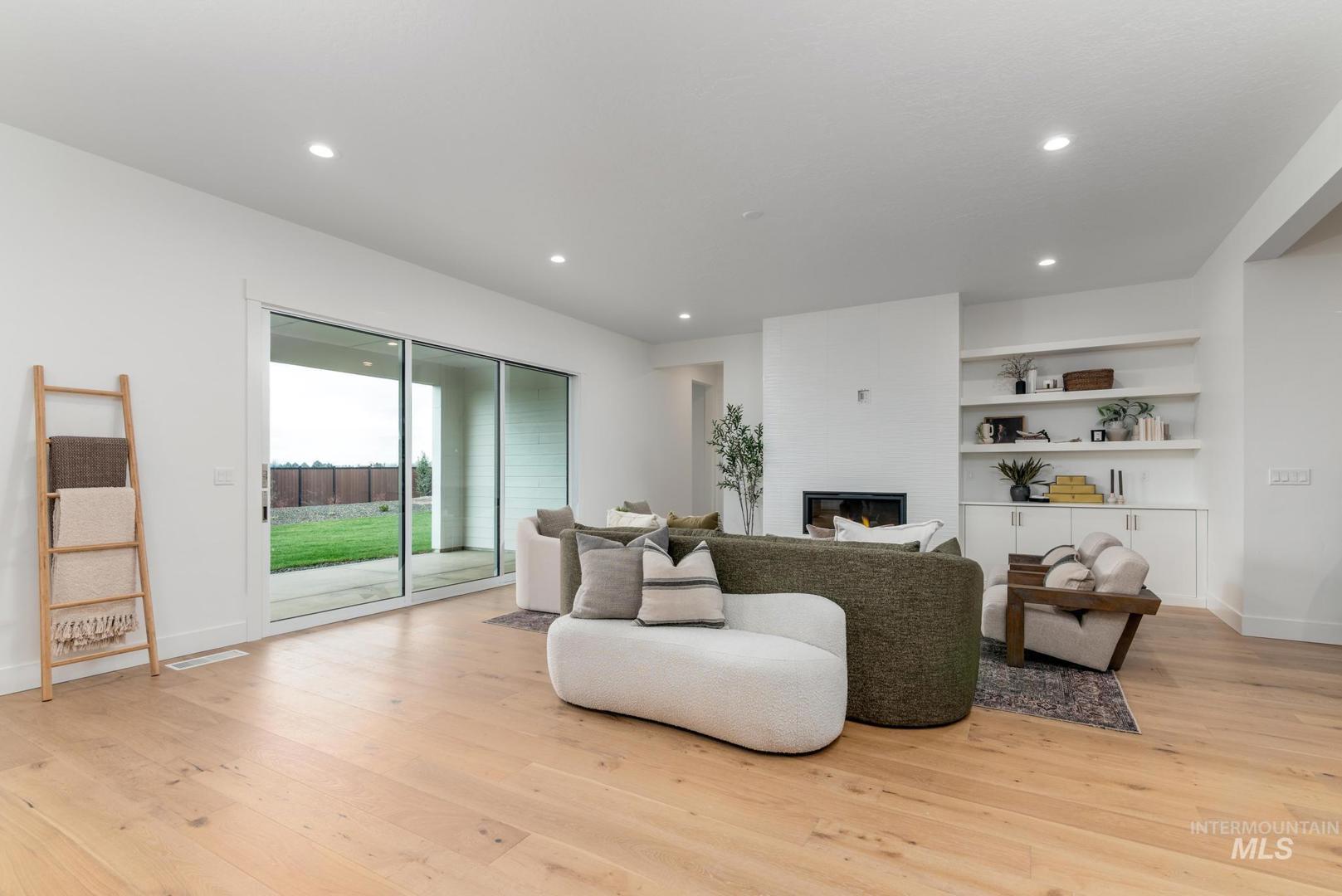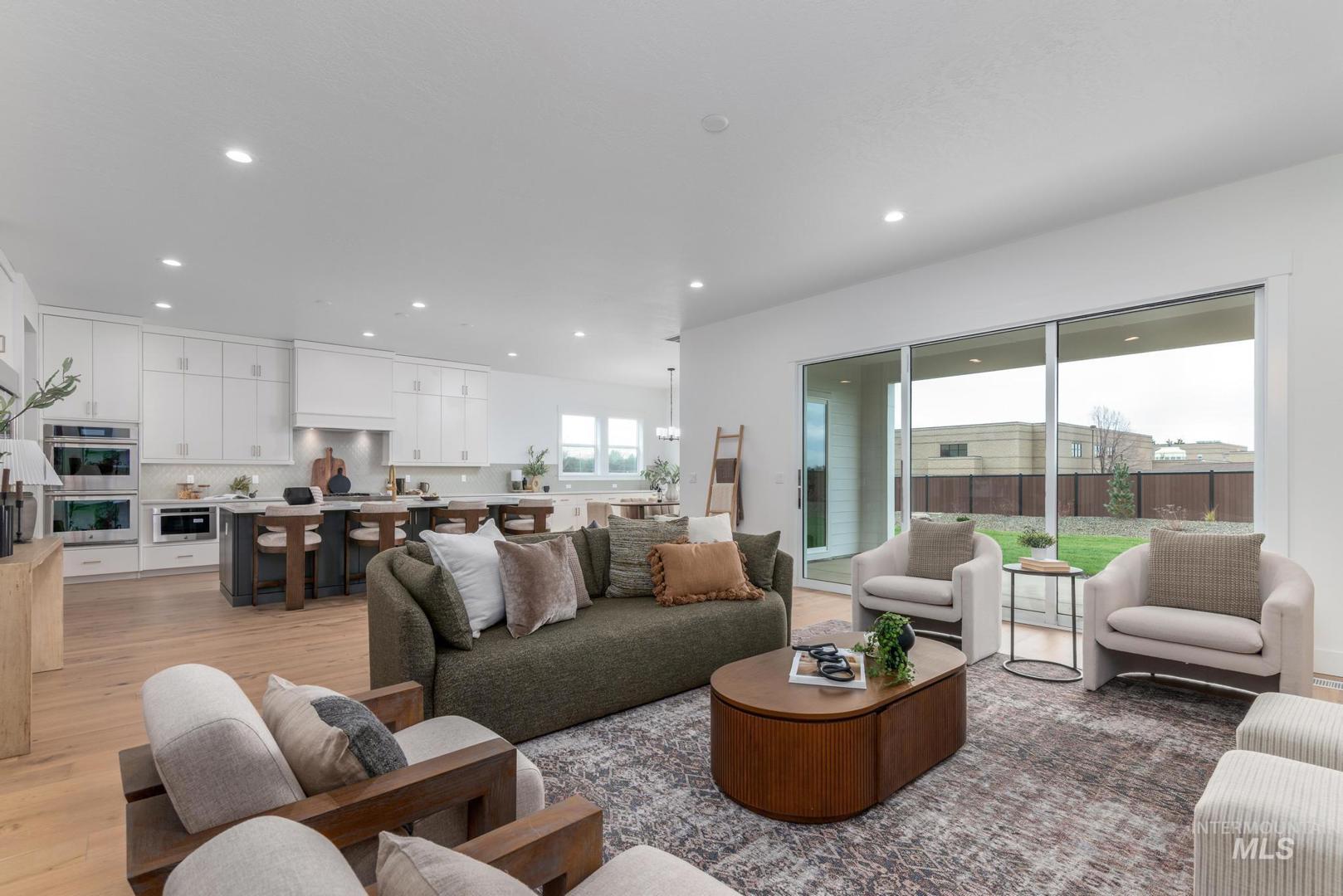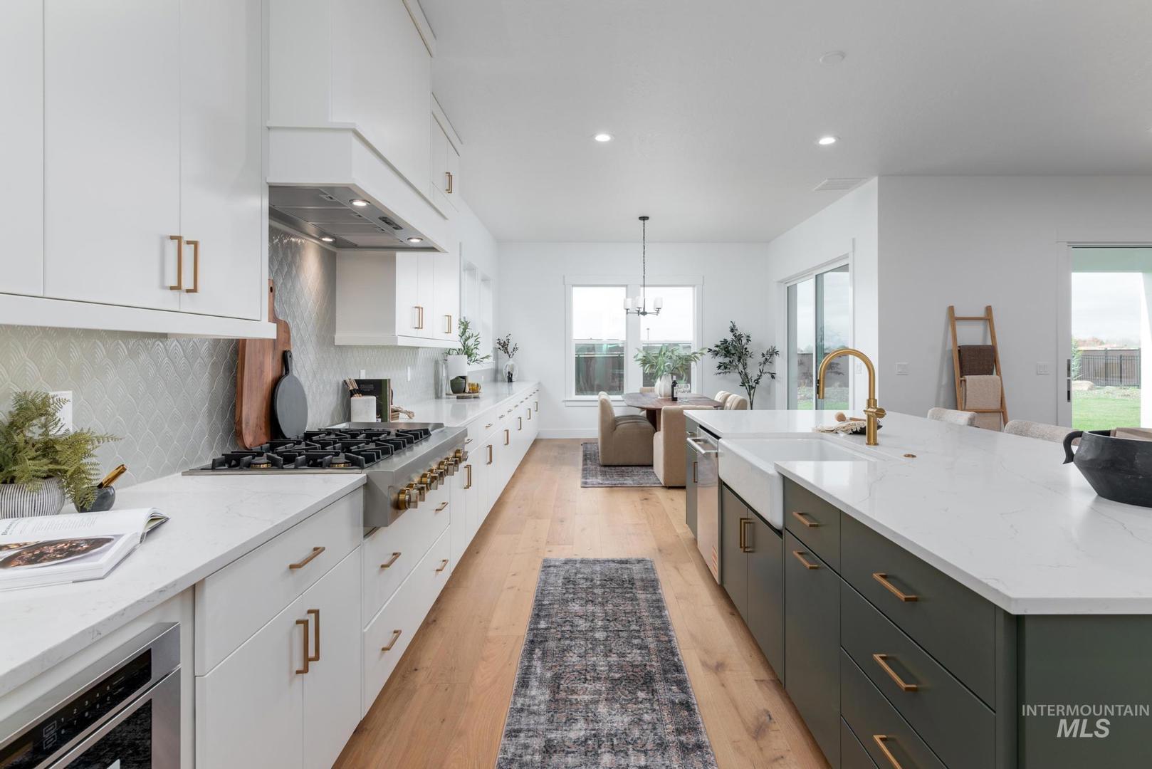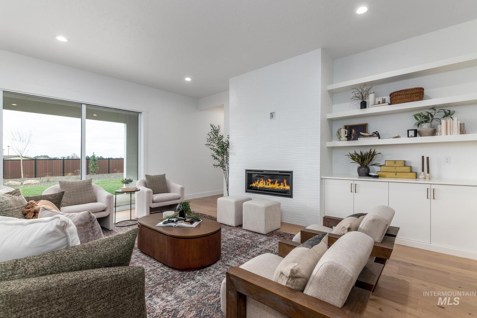 The Bellevue Contemporary Farmhouse blends comfort with elegant design in a spacious single-level floor plan. From the foyer, an open-floor layout connects the great room with cozy fireplace, casual dining area, and kitchen with a center island and walk-in pantry. Just beyond through a multi panel glass door, a generous covered patio offers effortless outdoor living. The primary bedroom suite features a spacious walk-in closet and a spa-inspired bath with dual vanities, a large soaking tub, a shower with seat, and a private water closet. Three secondary bedrooms—one with a private bath and two with a shared hall bath—offer comfort and privacy for family or guests. A flex room and rear workspace add versatility, while the laundry area, powder room, everyday entry, and smart storage enhance daily convenience. Toll Brothers homesite #26. BTVAI