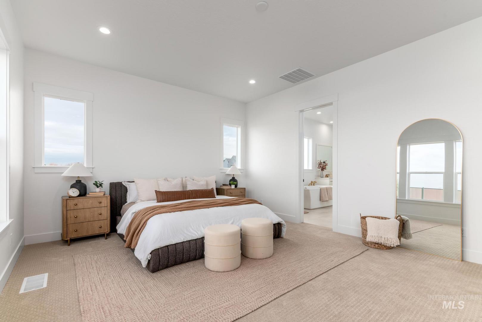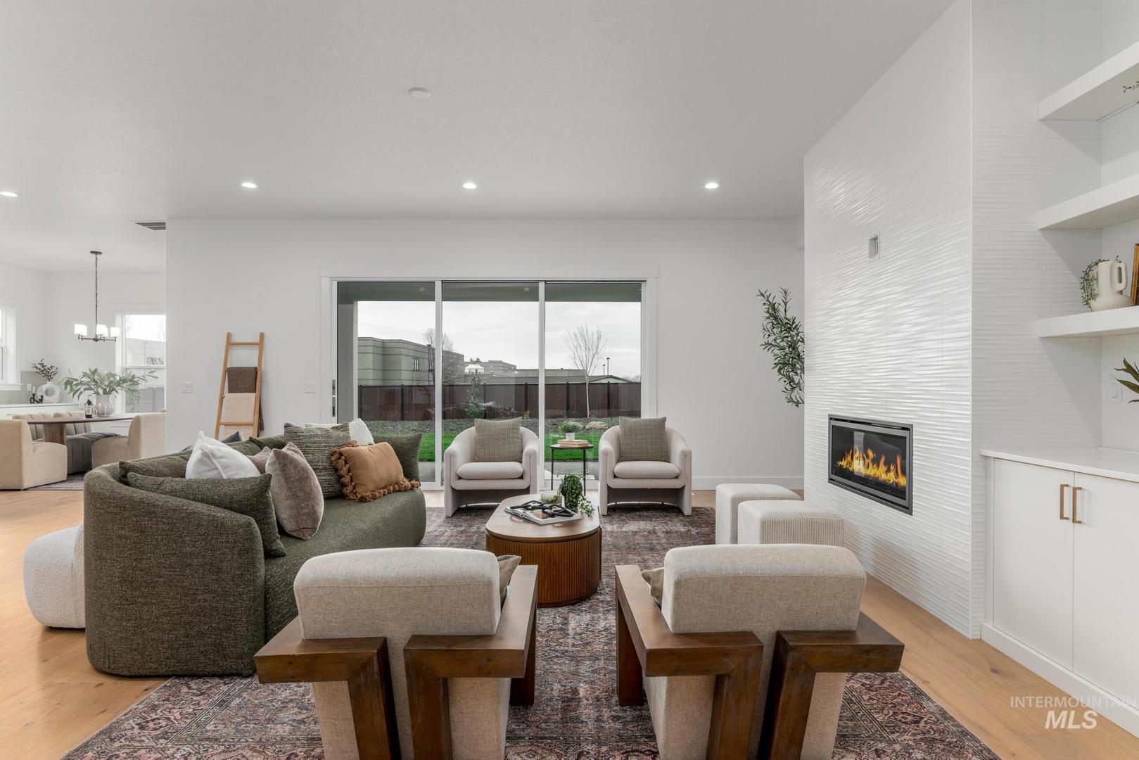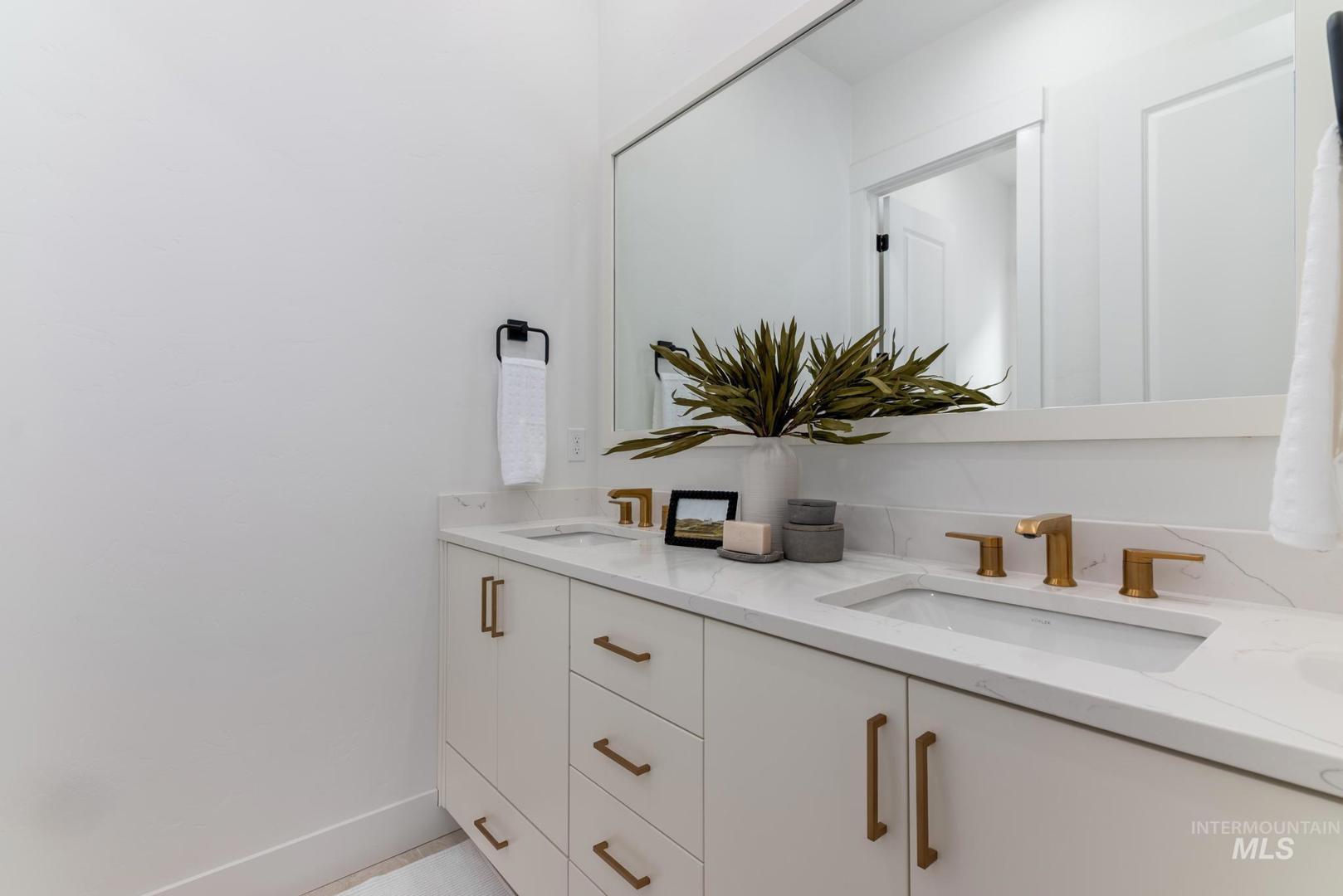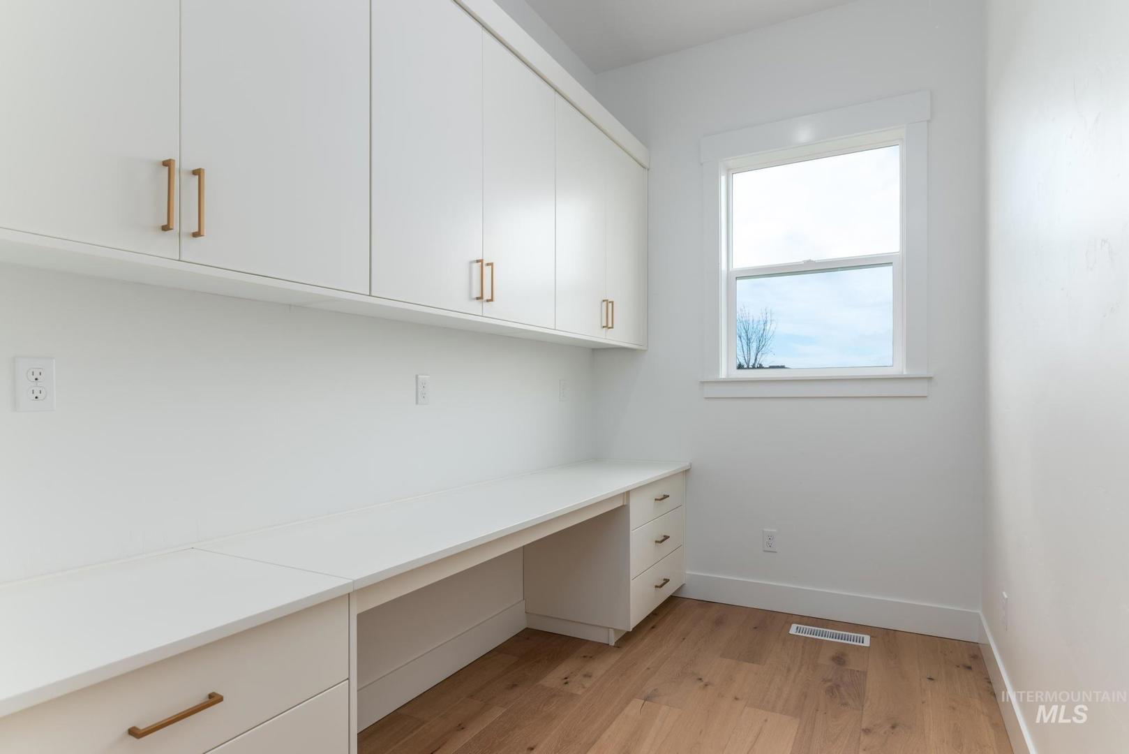 The Bellevue Contemporary Farmhouse blends comfort with elegant design in a spacious single-level floor plan. From the foyer, an open-floor layout connects the great room with cozy fireplace, casual dining area, and kitchen with a center island and walk-in pantry. Just beyond through a multi panel glass door, a generous covered patio offers effortless outdoor living. The primary bedroom suite features a spacious walk-in closet and a spa-inspired bath with dual vanities, a large soaking tub, a shower with seat, and a private water closet. Three secondary bedrooms—one with a private bath and two with a shared hall bath—offer comfort and privacy for family or guests. A flex room and rear workspace add versatility, while the laundry area, powder room, everyday entry, and smart storage enhance daily convenience. Toll Brothers homesite #26. BTVAI