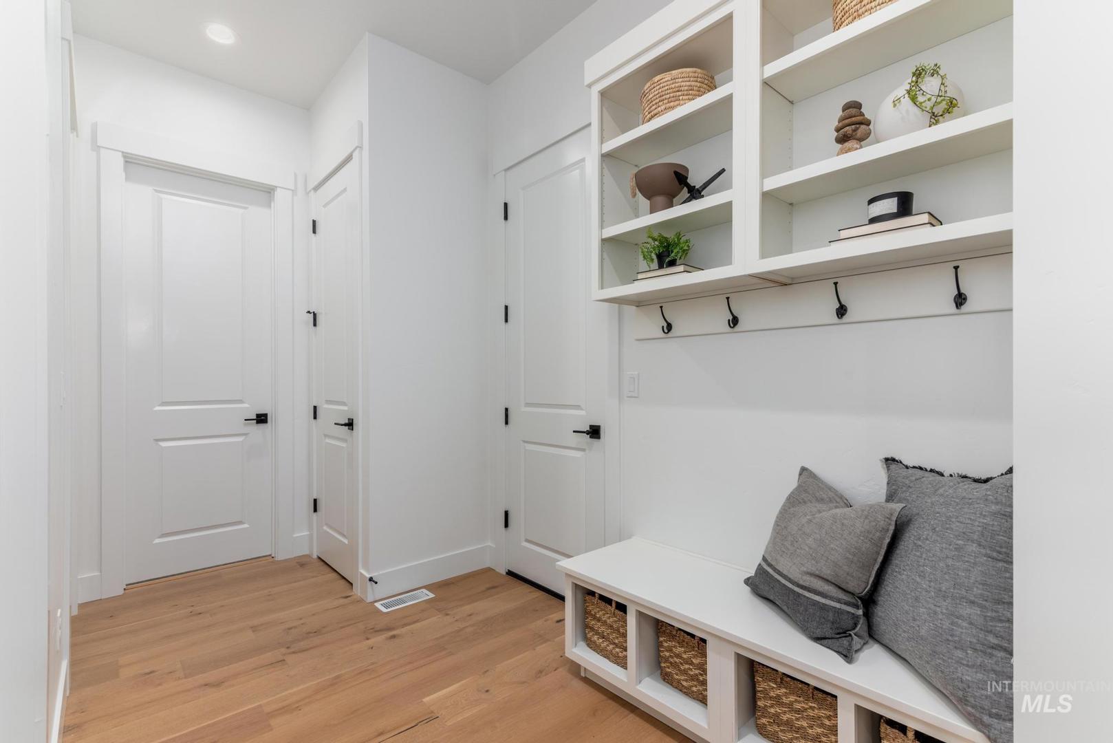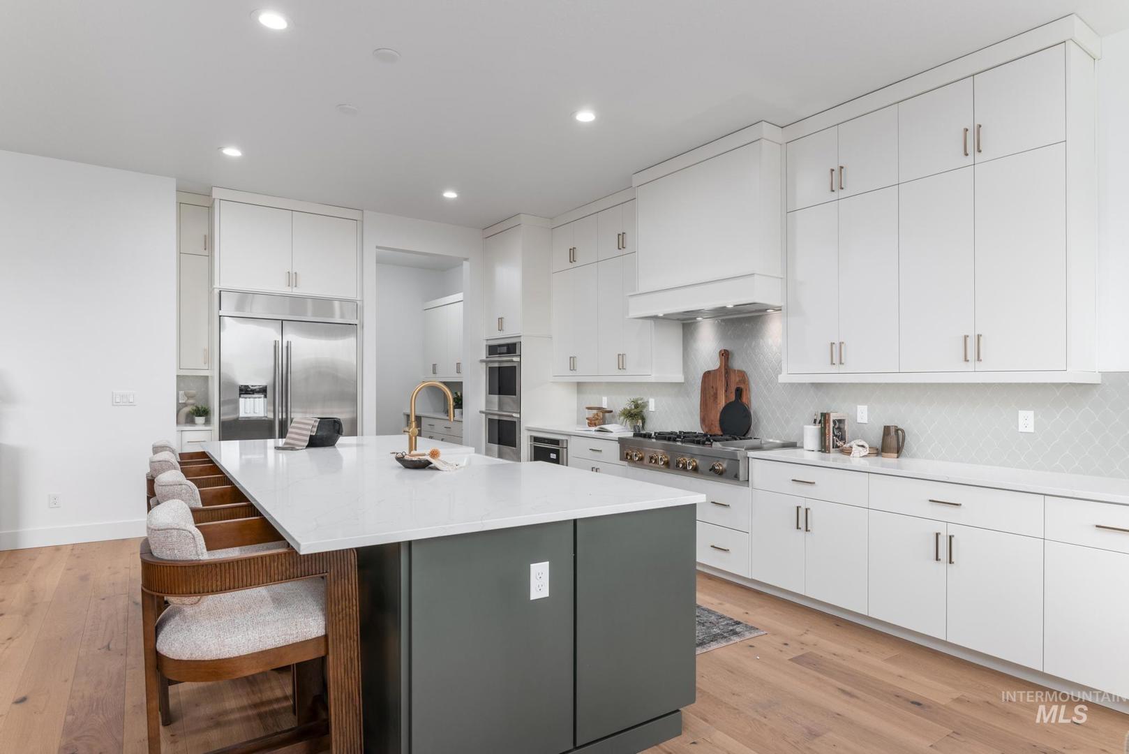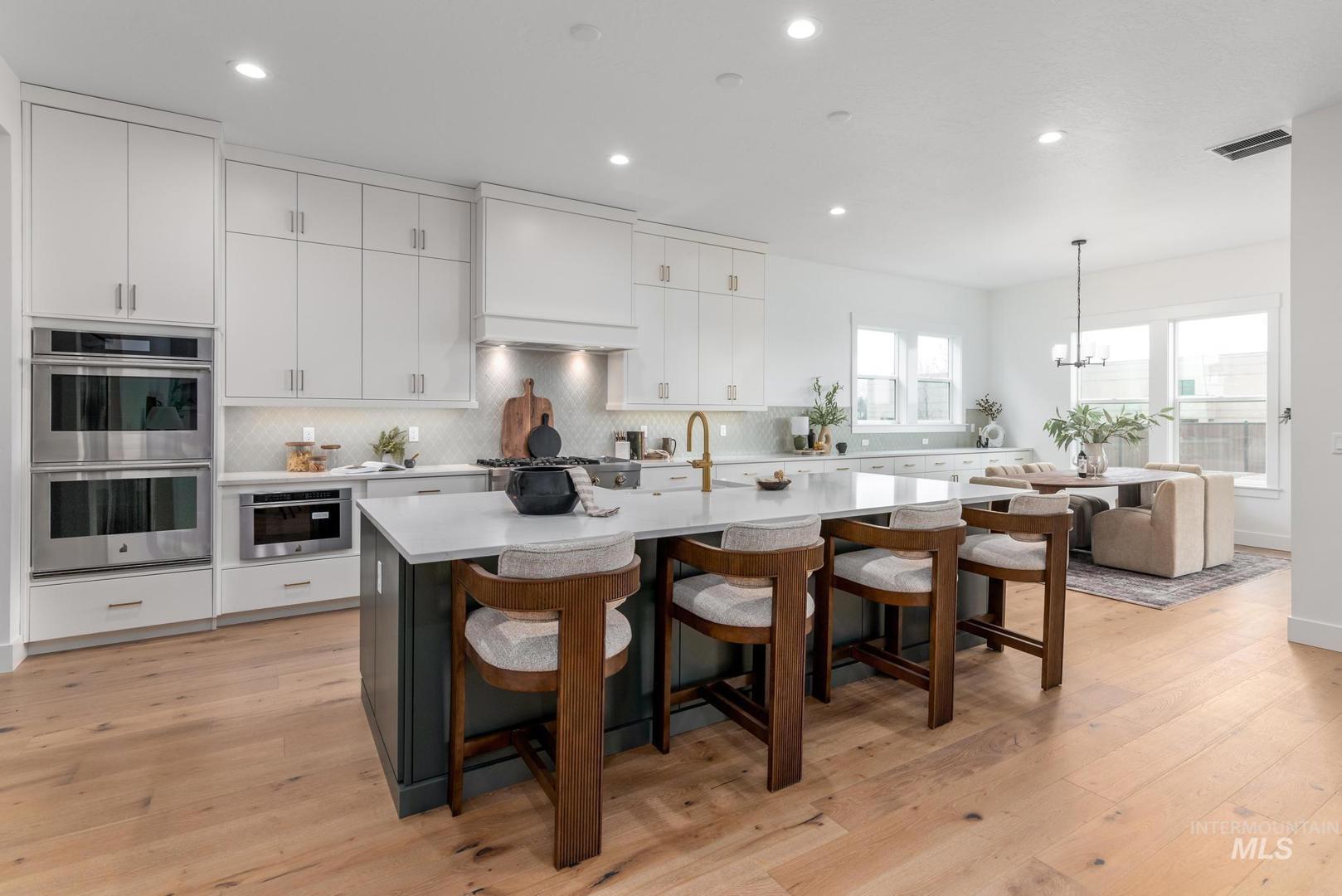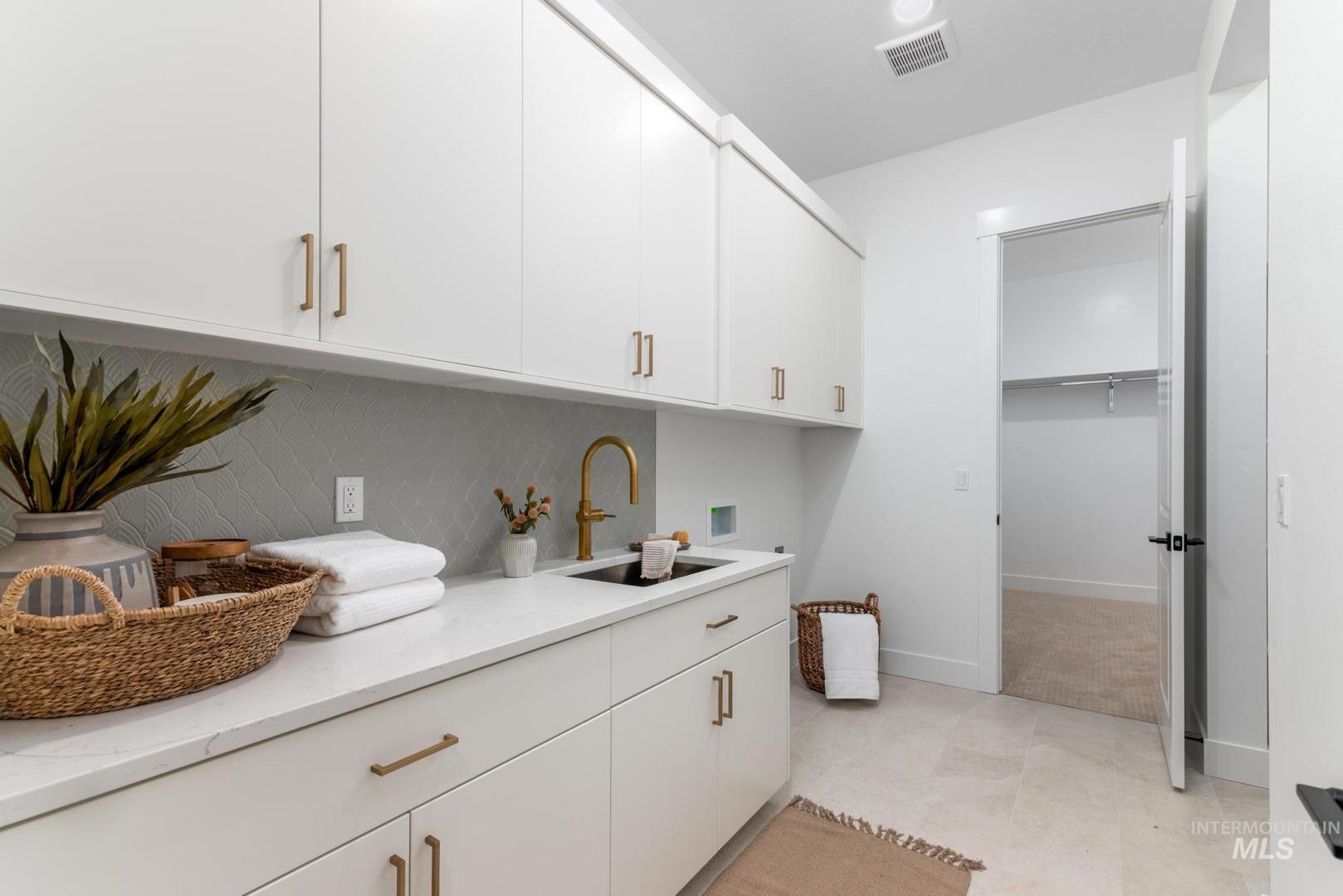 The Bellevue Contemporary Farmhouse blends comfort with elegant design in a spacious single-level floor plan. From the foyer, an open-floor layout connects the great room with cozy fireplace, casual dining area, and kitchen with a center island and walk-in pantry. Just beyond through a multi panel glass door, a generous covered patio offers effortless outdoor living. The primary bedroom suite features a spacious walk-in closet and a spa-inspired bath with dual vanities, a large soaking tub, a shower with seat, and a private water closet. Three secondary bedrooms—one with a private bath and two with a shared hall bath—offer comfort and privacy for family or guests. A flex room and rear workspace add versatility, while the laundry area, powder room, everyday entry, and smart storage enhance daily convenience. Toll Brothers homesite #26. BTVAI