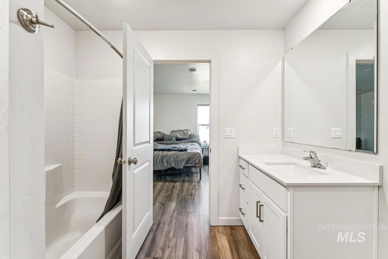 Split layout design with 4 bedrooms, 2 bath, one level living with an open great room, and attached 2 car garage. Charming exterior, homesite with fully fenced rear yard with front yard landscaping. Kitchen showcases white shaker-style cabinetry with upgraded quartz countertops and backsplashes. Stainless steel appliances including gas oven/range, dishwasher, and microwave. Upgraded water-resistant Luxury Vinyl plank flooring throughout the home. Laundry room comes equipped with stackable washer and dryer. Owner’s suite has generous walk-in closet. Plus, only minutes away from local dining and entertainment.