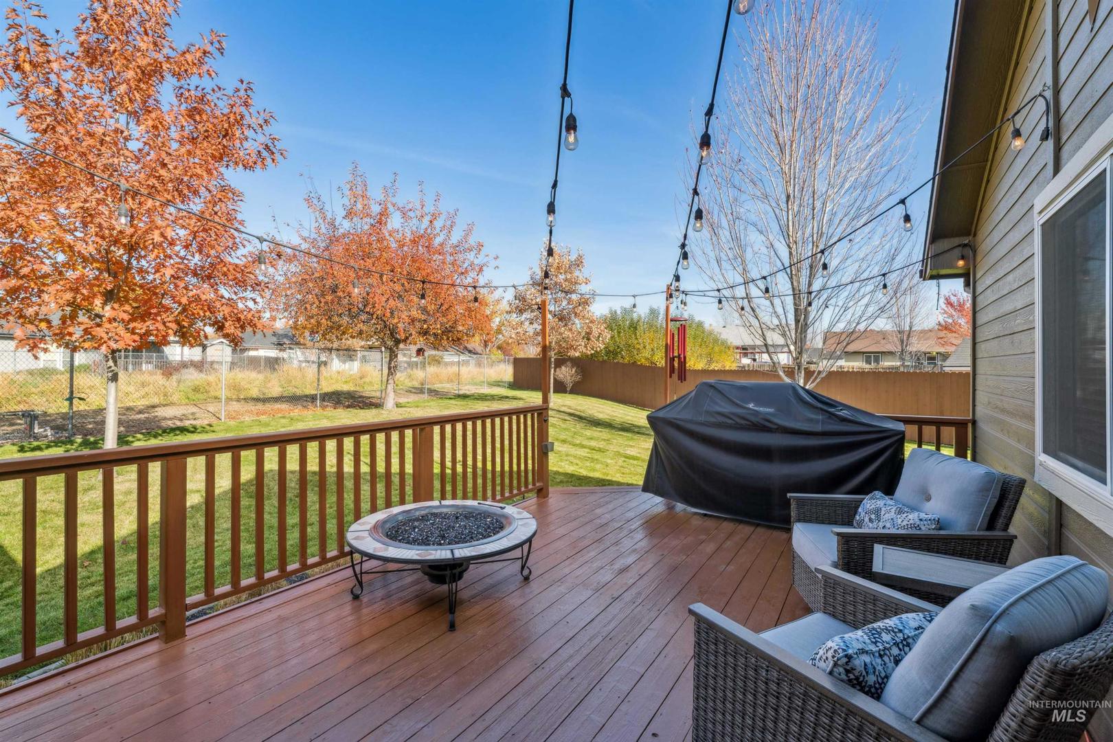 Rare opportunity in the heart of Meridian—no HOA! This meticulously cared-for home sits on a spacious 0.39-acre cul-de-sac lot with no direct back neighbors, offering privacy and plenty of outdoor space. Inside, enjoy a striking stone fireplace with a hand-hewn wood mantel, while the three-car garage and two separate living areas provide versatility for work, hobbies, or family life. The beautifully landscaped yard includes a back deck and natural-gas fire pit, perfect for relaxing or entertaining outdoors. Recent updates include new Champion windows (2020), fresh exterior paint (2022), a new roof (2019), and an energy-efficient Quiet Cool Tri Pro-2.5 whole-house fan (2015). Move-in ready and truly one of a kind!