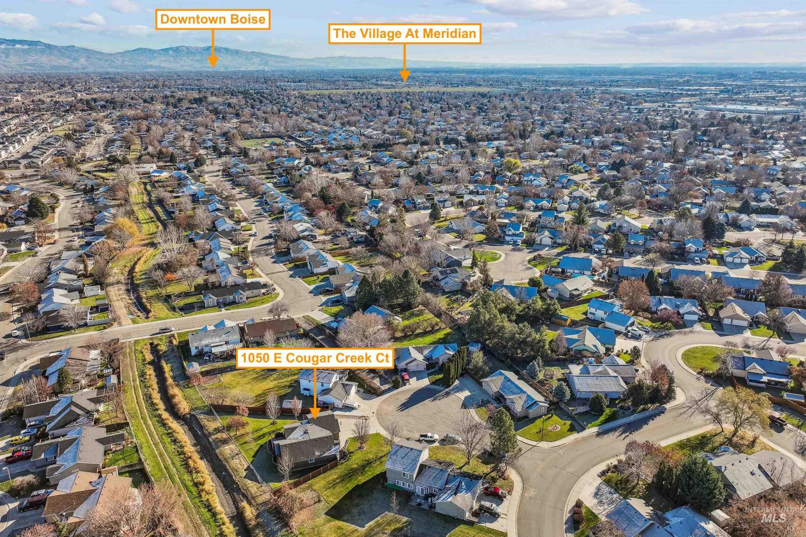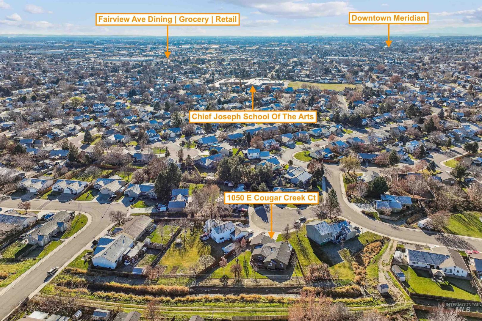 Fairview N, Locust Grove, W Meadowgrass, N Caribou, N Mule Deer, E into cul-de-sac @ Cougar Creek.