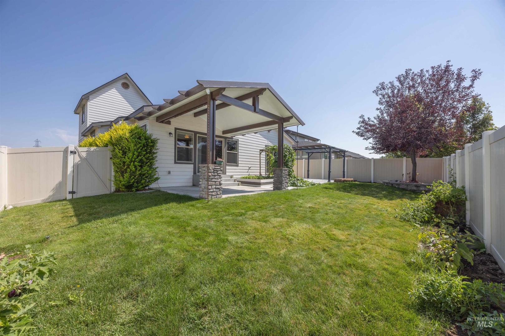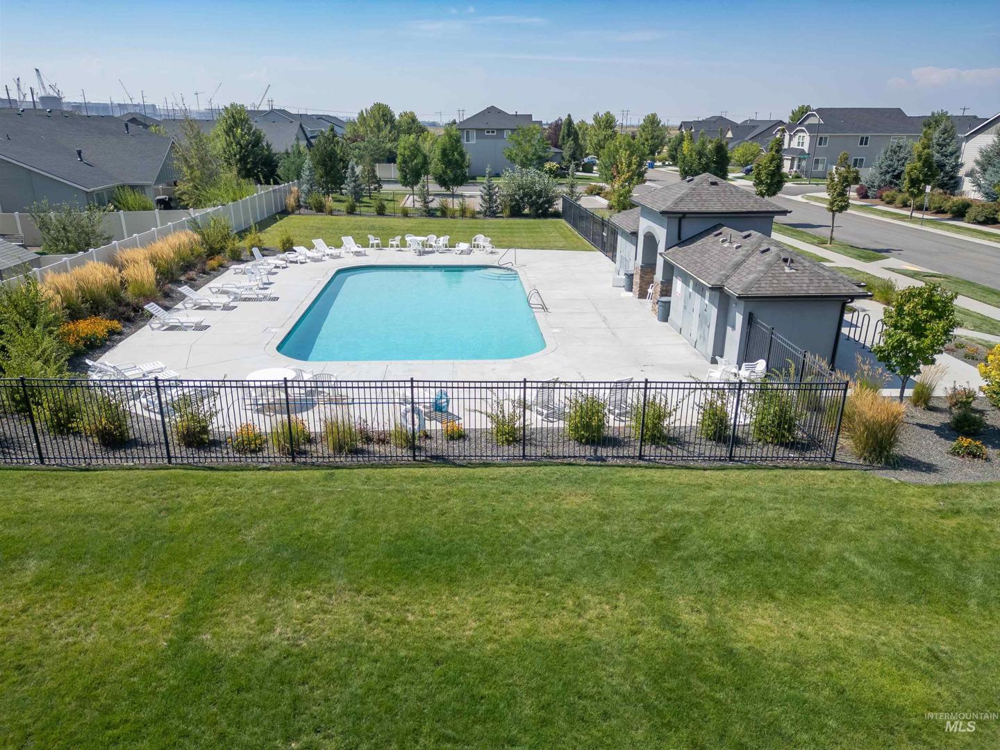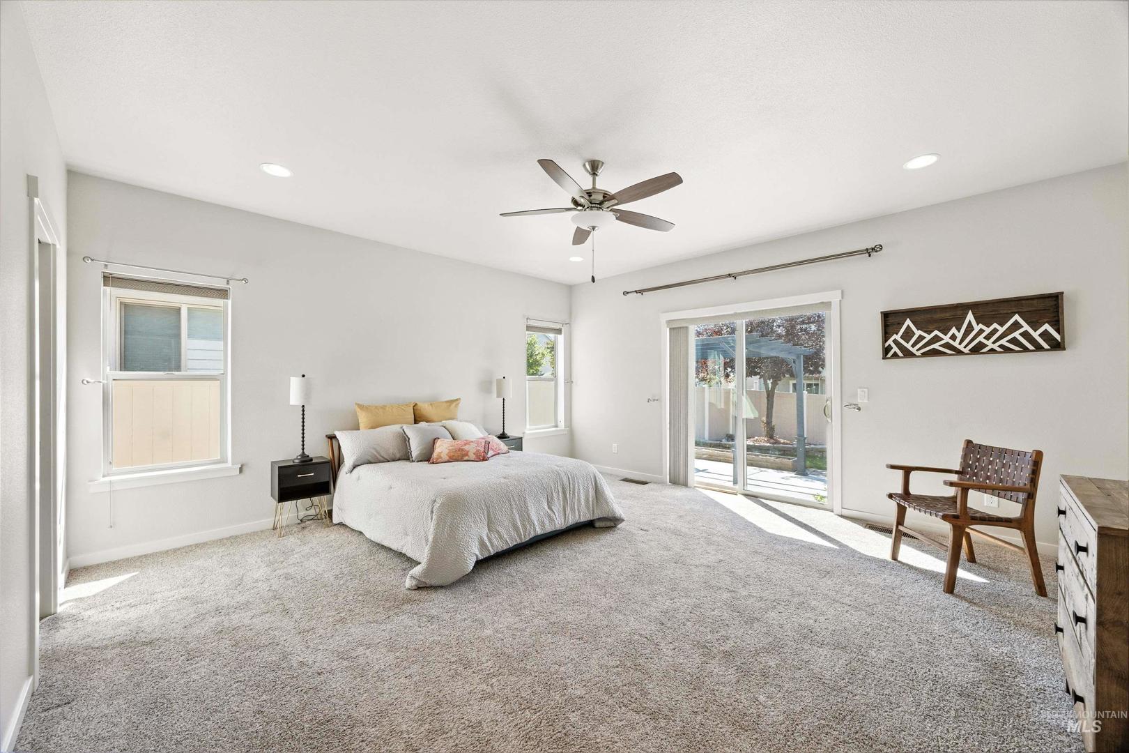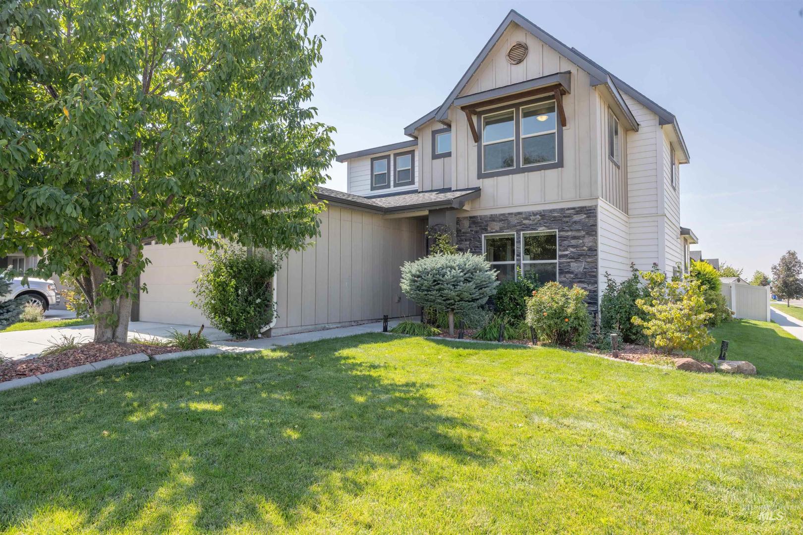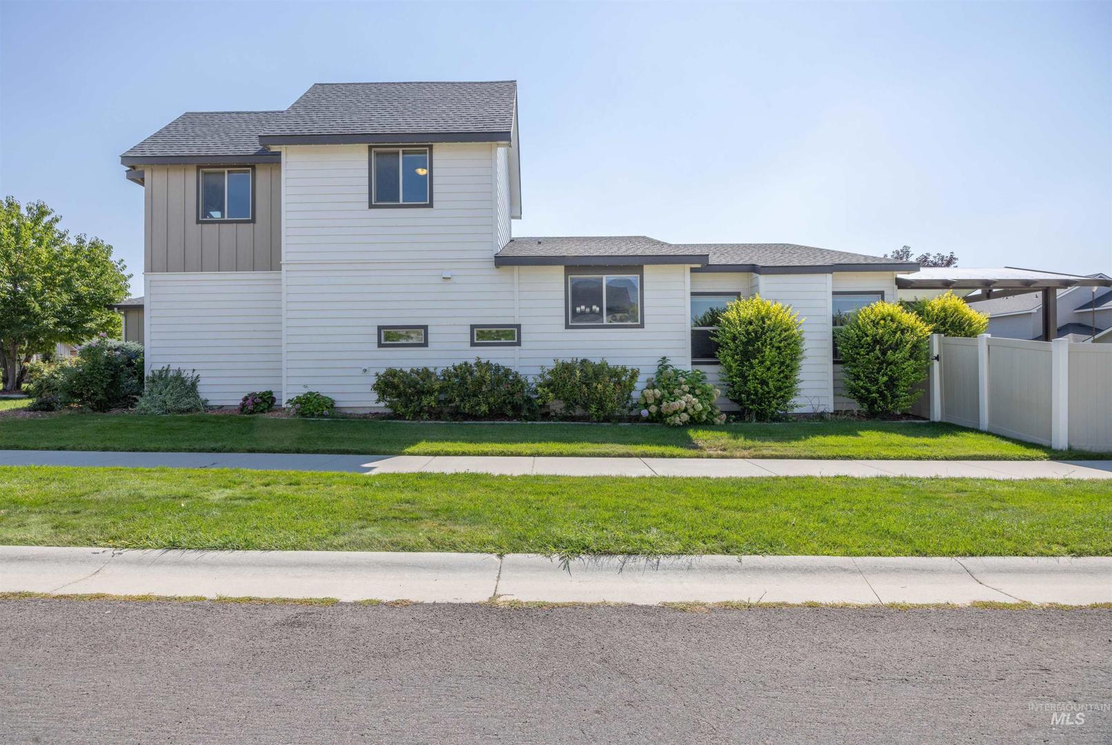 Welcome to this beautiful home, boasting an open floor plan w/ seamless living spaces & high-end finishes. The inviting living room features a cozy gas fireplace. The heart of the home, the kitchen, is a chef’s dream, with a spacious island, breakfast bar, quartz countertops, SS appliances, gas range, and pantry. The main level is home to the luxurious primary suite, offering privacy and comfort with a private patio walk-out, spa-like tile shower, and a generous walk-in closet. A guest suite is also on the main floor, complete with its own full bathroom—ideal for visitors or multi-generational living. A tech room/office provides the perfect space for working from home or organizing your life. Upstairs, you`ll find two more spacious bedrooms and a full bathroom. A corner lot provides both privacy and space with full vinyl fencing, covered patio and permanent holiday lights. The garage is equipped with epoxy flooring, EV charger & water softener. There is also a RO System. Access to a community pool and park!
